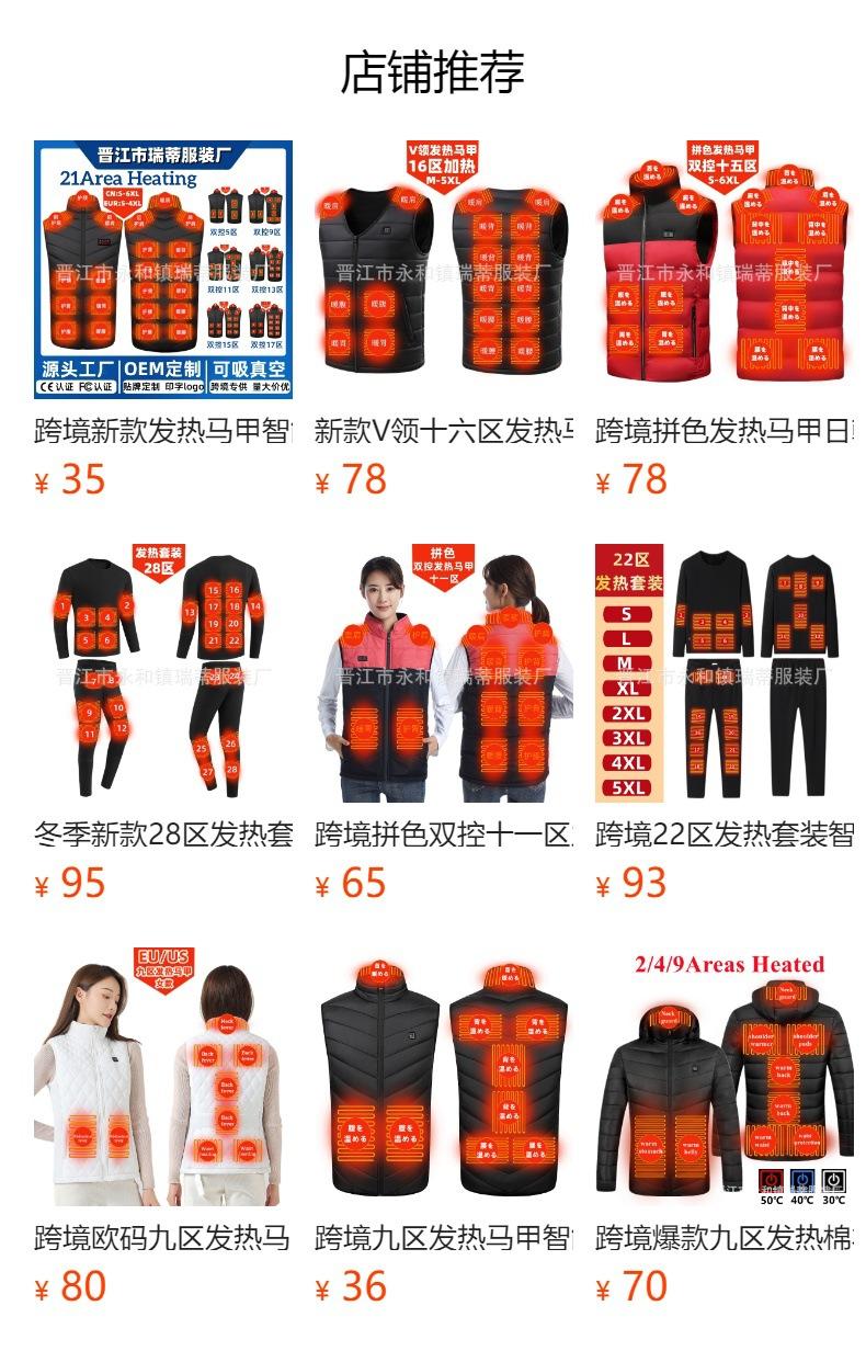 Ropa acolchada de algodón con calefacción de cuatro zonas de control 21 transfronterizas, ropa acolchada de algodón con calefacción inteligente de temperatura constante de zona 2 4 9, venta directa de fábrica