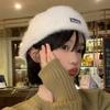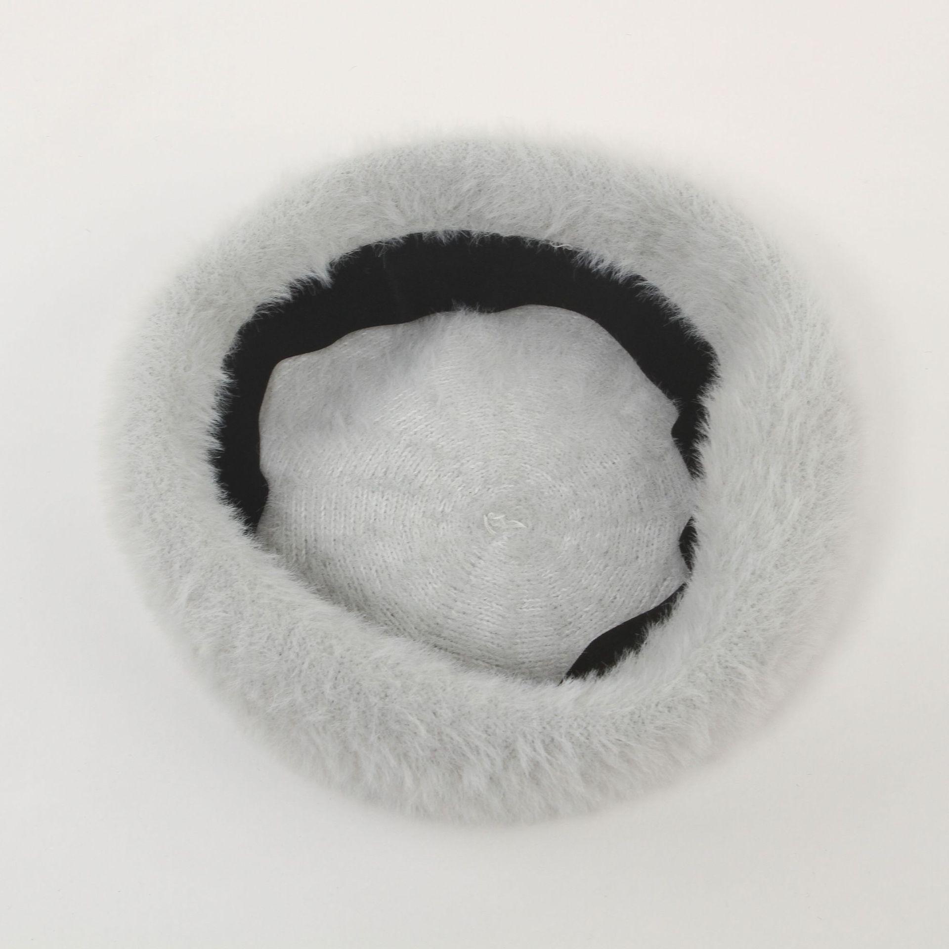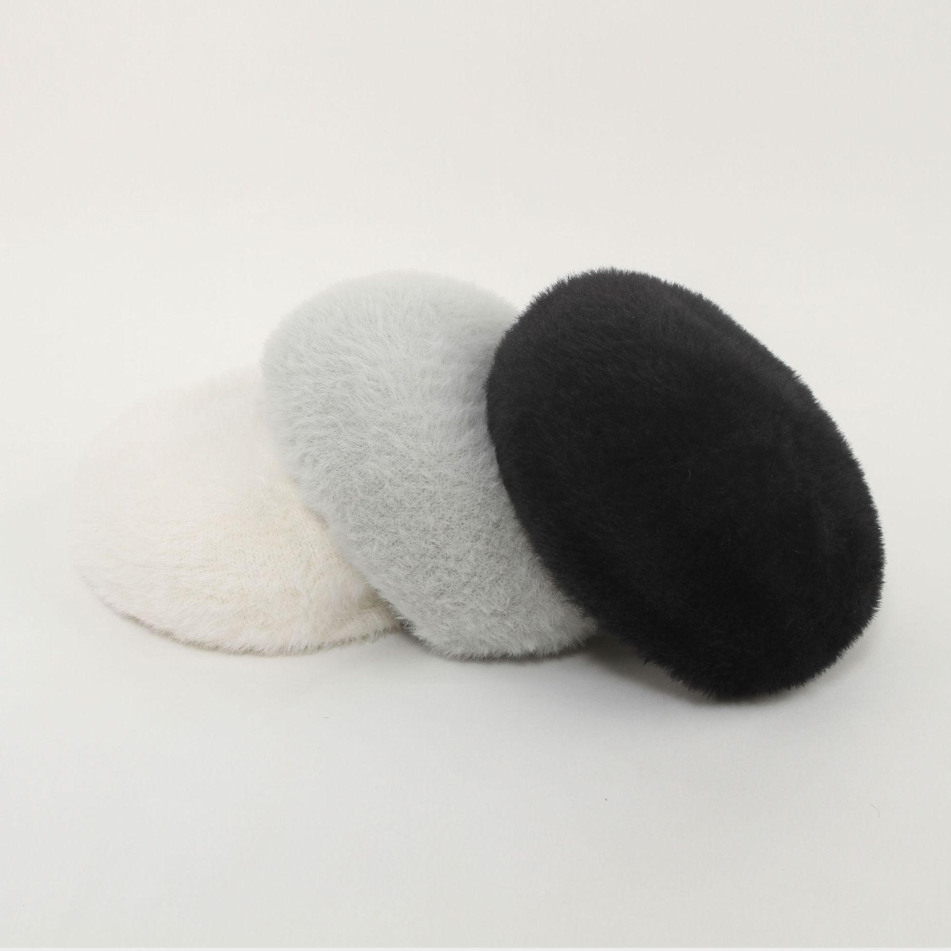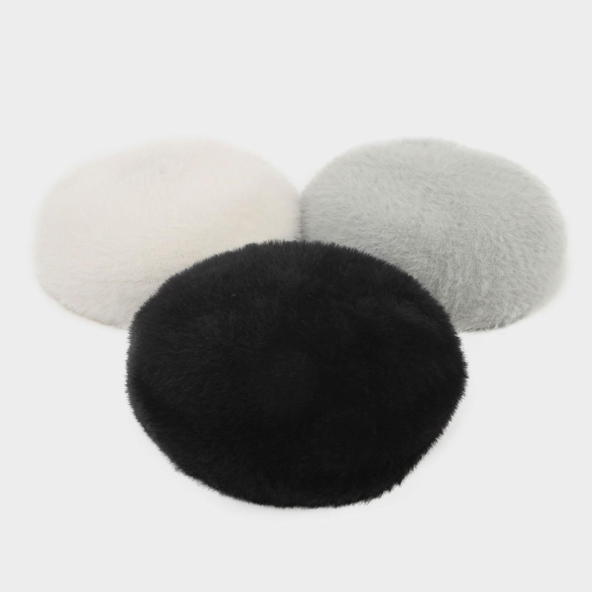 Boina suave de piel de conejo de imitación tridimensional para otoño e invierno, gorro fresco, monocromático, cálido, gris, blanco y negro, sombrero de pintor artístico.