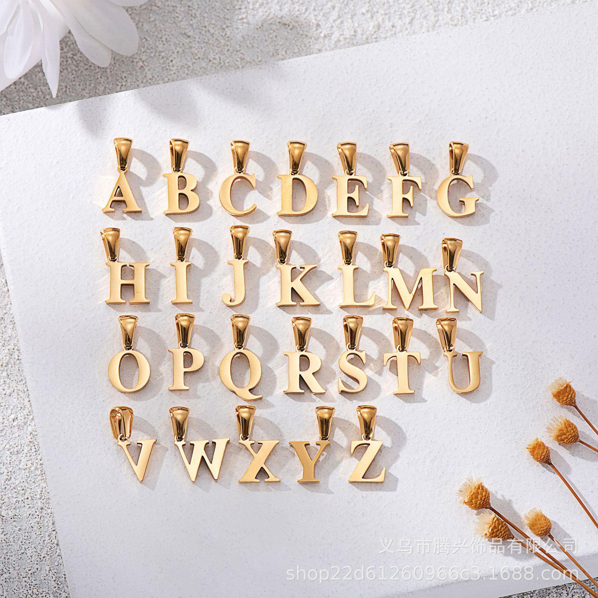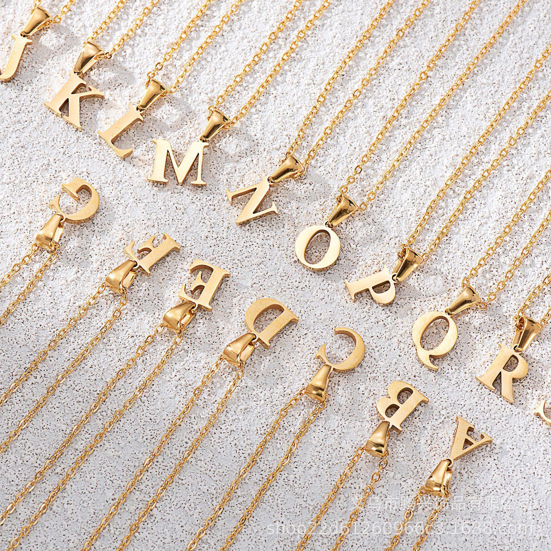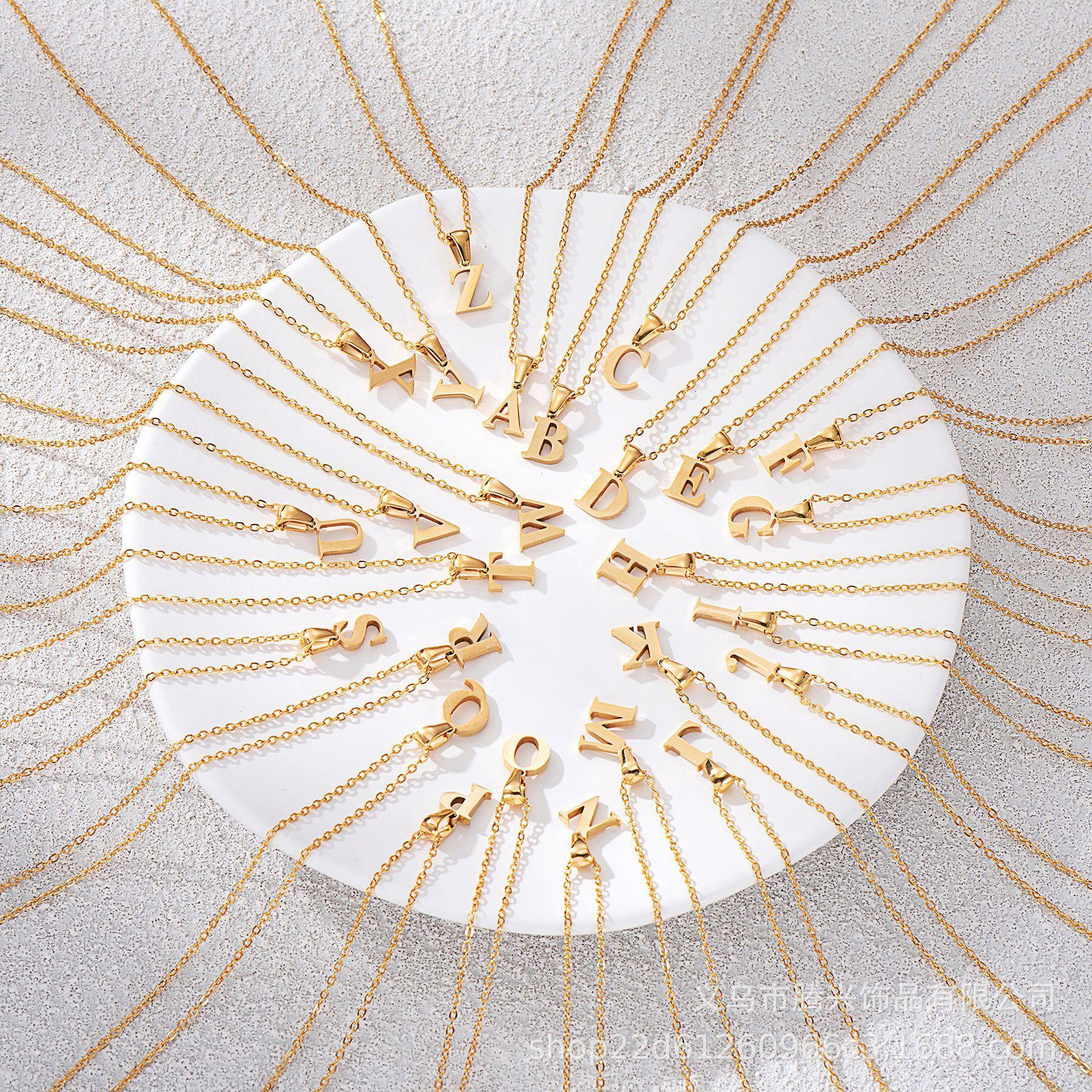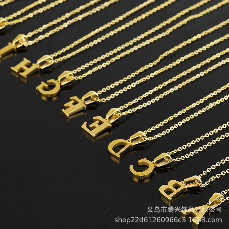 Collar de acero de titanio con 26 letras iniciales en inglés para mujer, estilo europeo y americano transfronterizo de Amazon, joyería de acero inoxidable de alta calidad, ligera y sencilla de lujo.