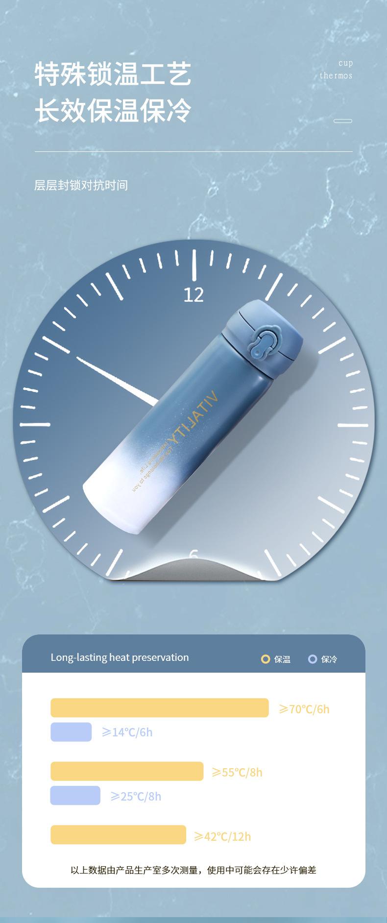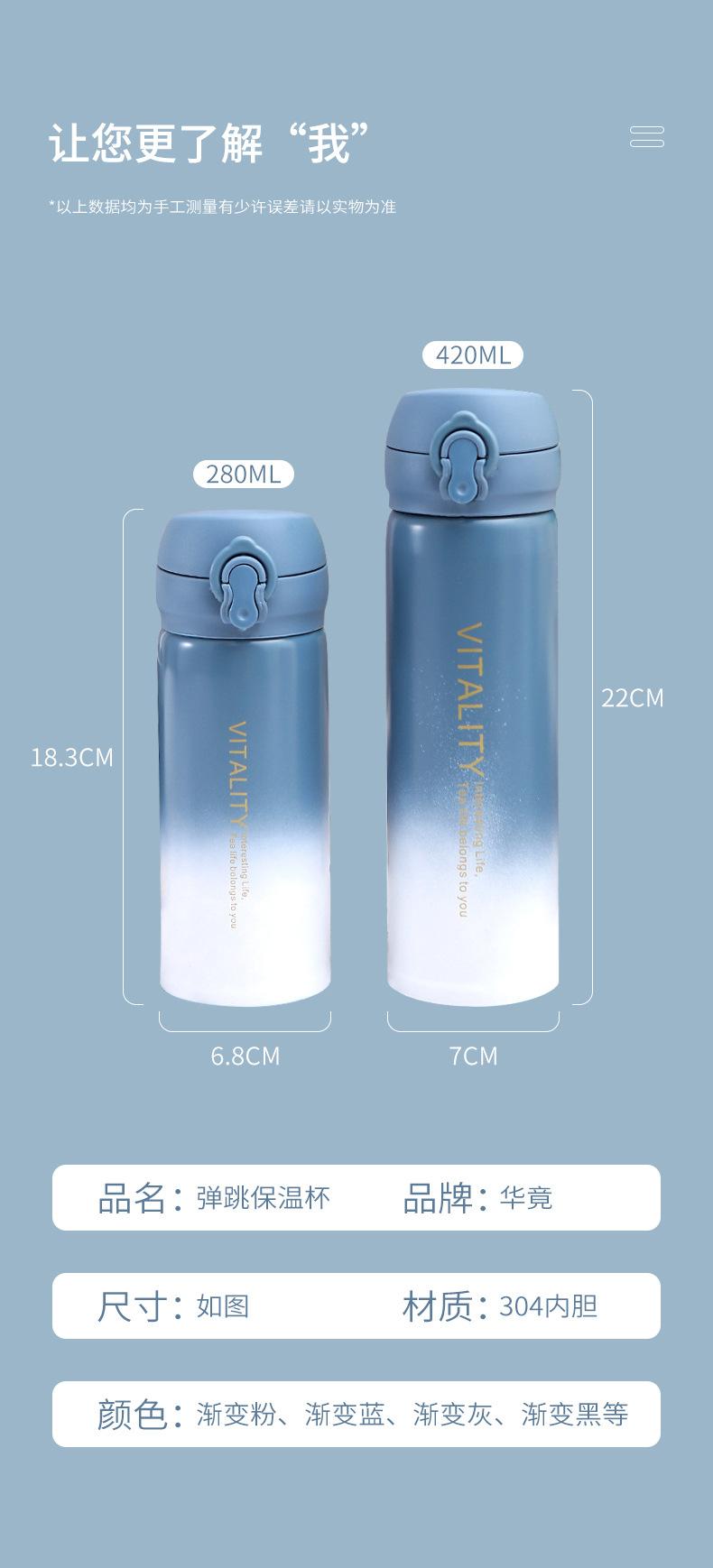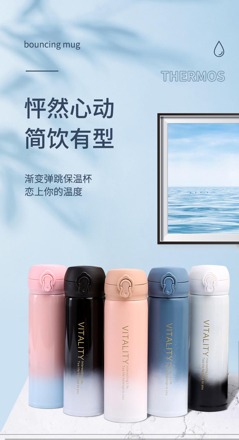 Termo de acero inoxidable 304 personalizado, creativo, para estudiantes, portátil, para coche, con gradiente de rebote