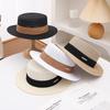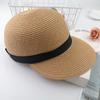 Sombrero de sol de verano de copa hueca para mujer, con letra, ala larga, transpirable, tejido, tipo boina de pato, moda de estilo coreano, sombrero de sol para exteriores