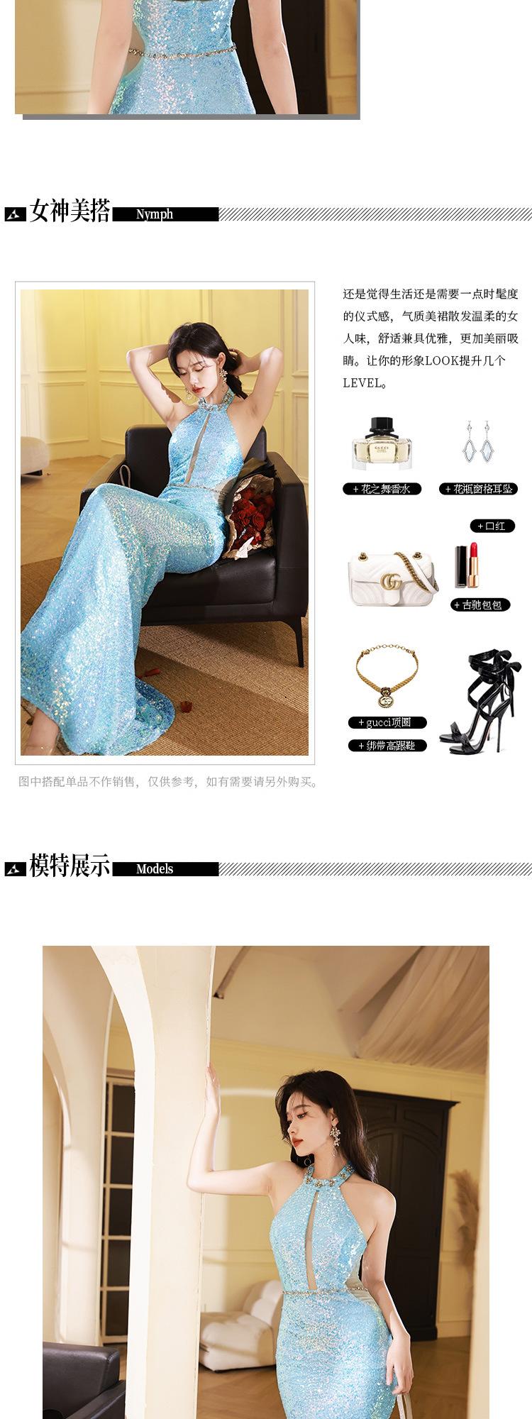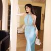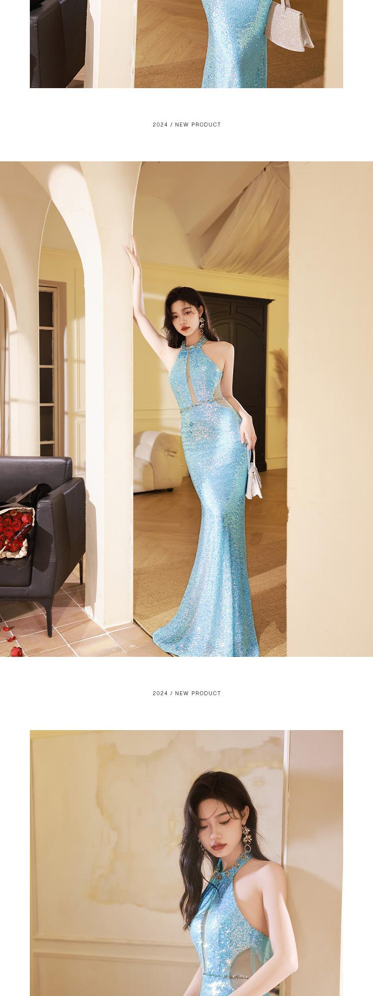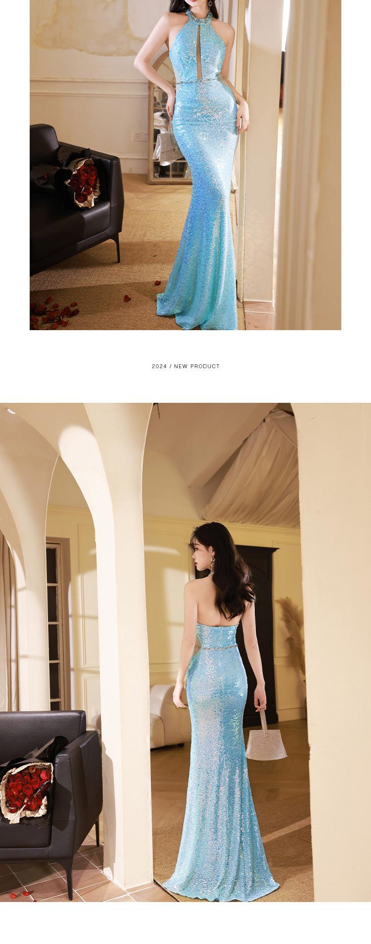 Vestido de noche Super Fairy Mermaid Ji, vestido tostado, actuación femenina, cuello colgante, hombros descubiertos, vestido de presentadora, moda elegante