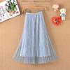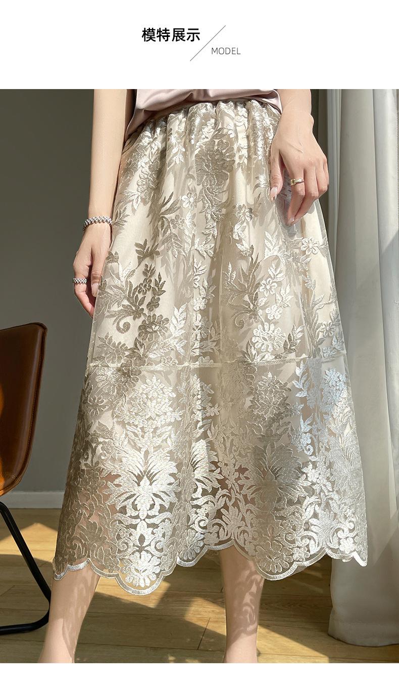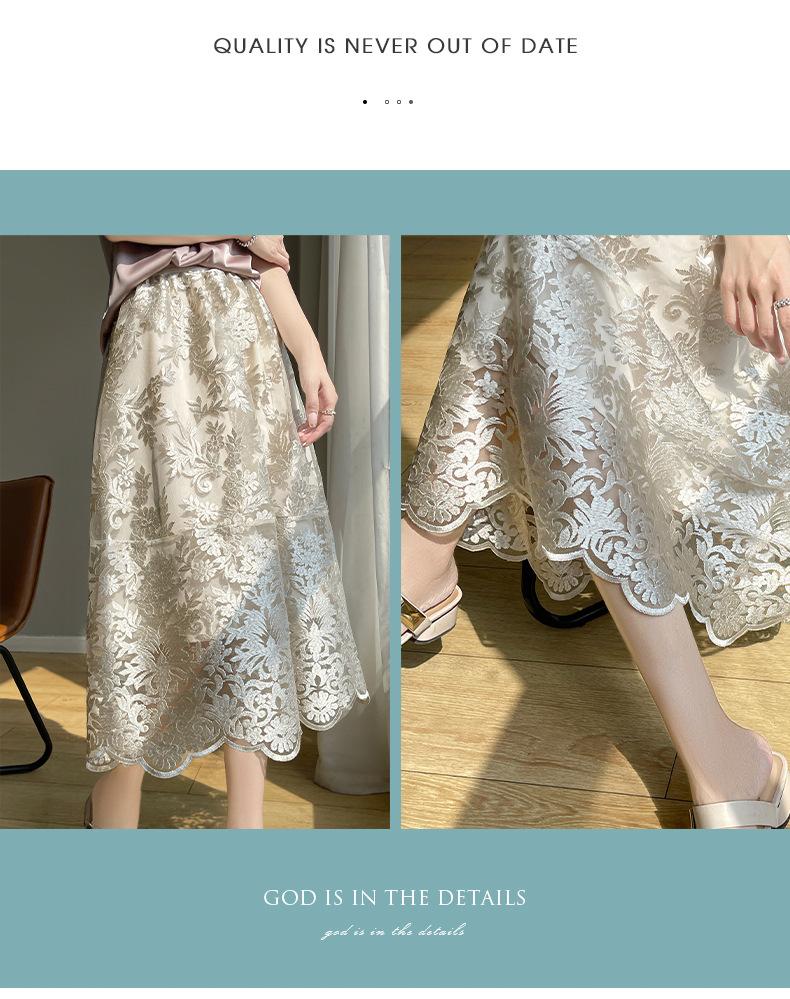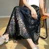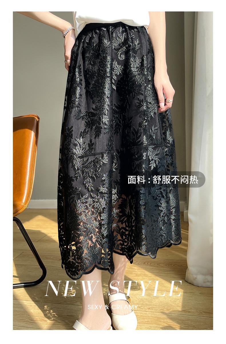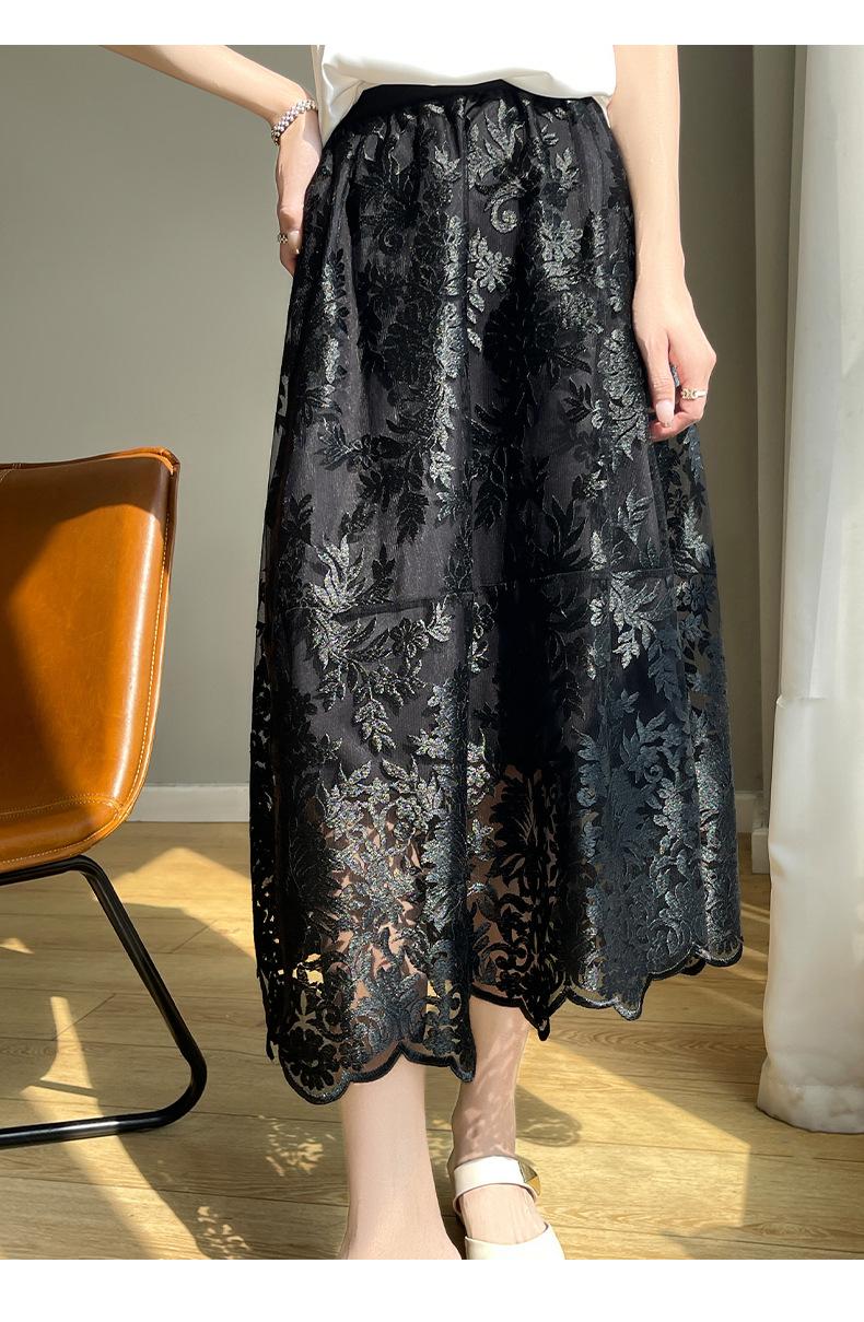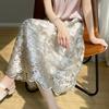 Falda hueca de encaje estilo francés para mujer, nueva falda de verano de cintura alta, adelgazante, de corte A, de malla de longitud media, falda grande con vuelo