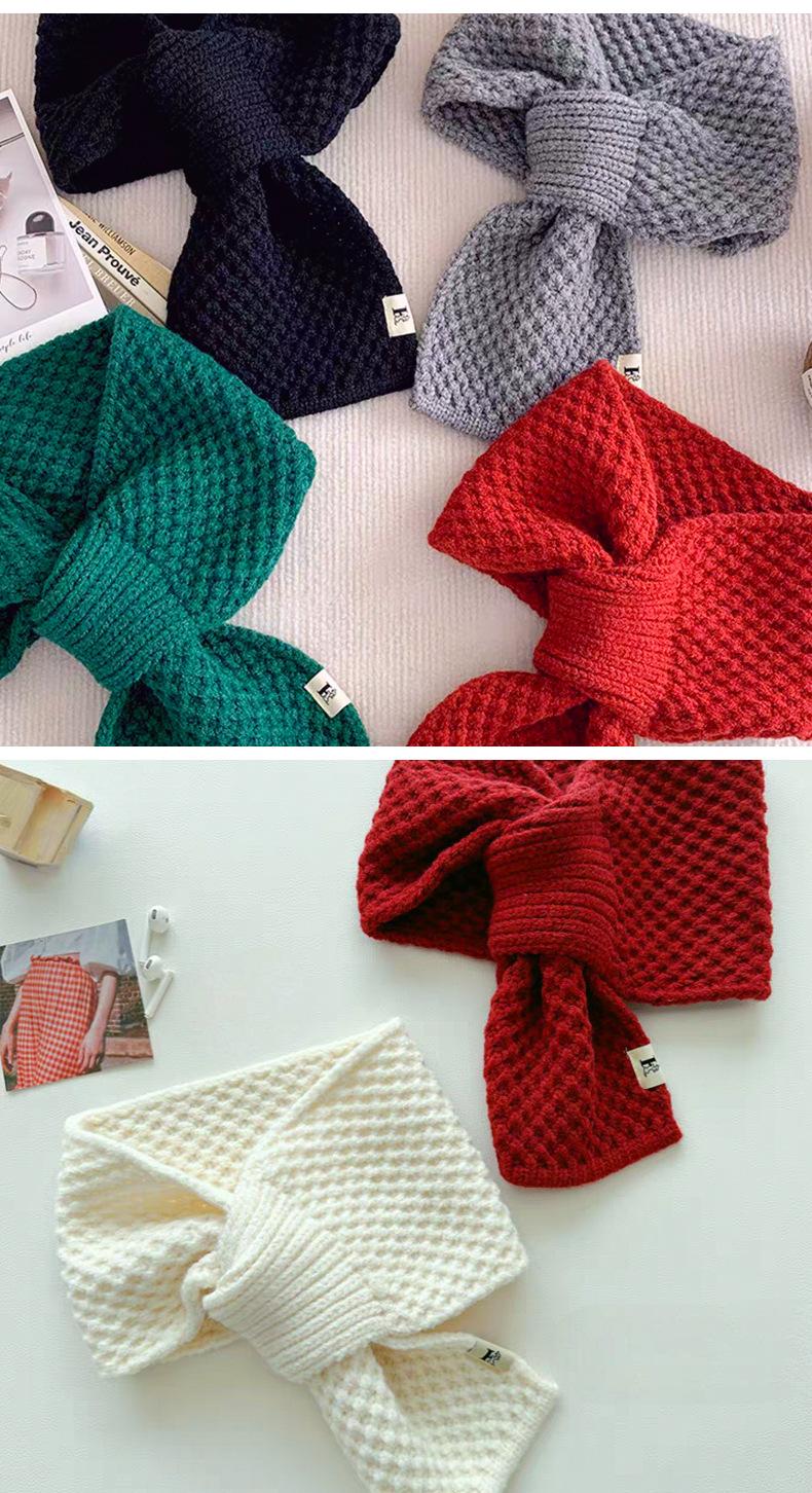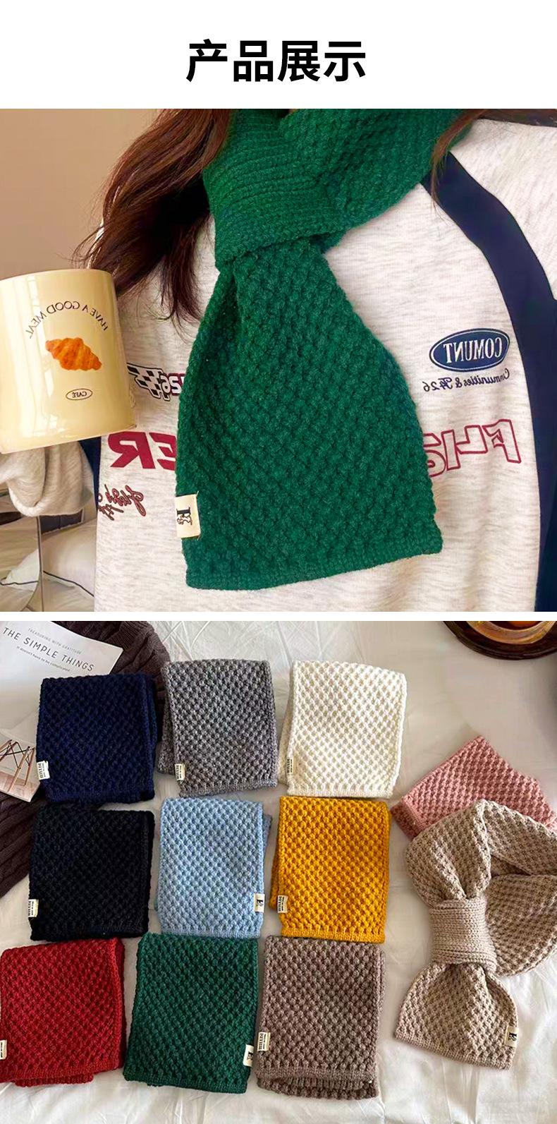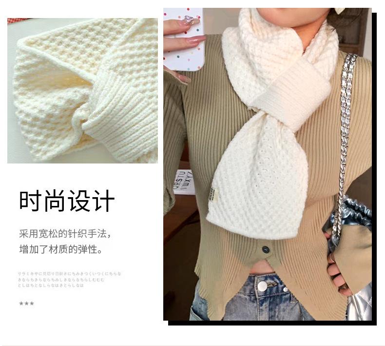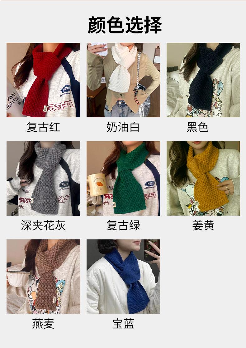 Bufanda Pequeña de Lana Tejida Estilo Coreano Combinable para Todo Mujer Otoño e Invierno Protección para el Cuello Cuadros Perforados Flojos Cálida para el Cuello Lana Ártica