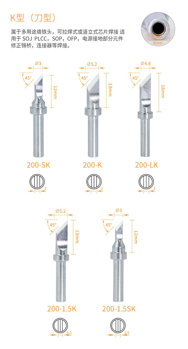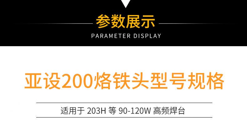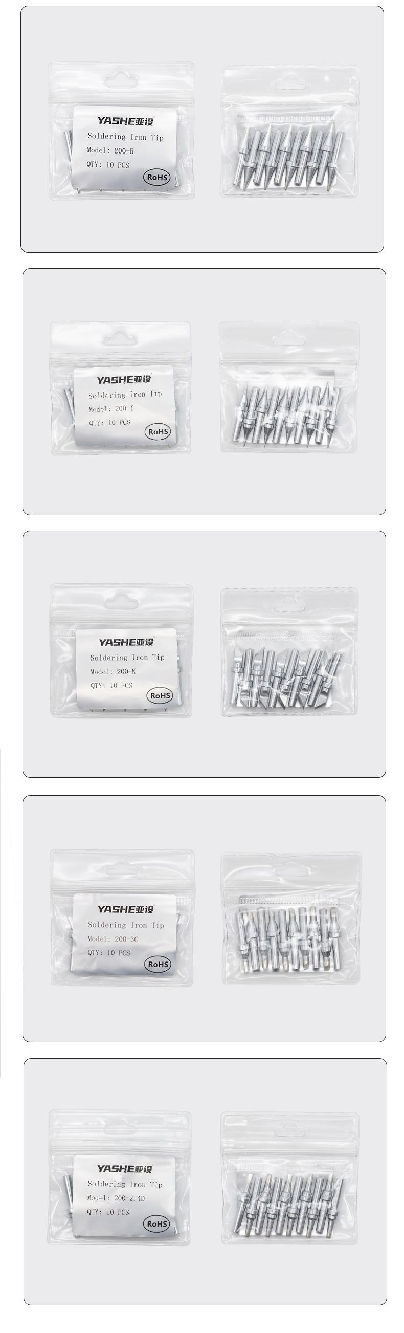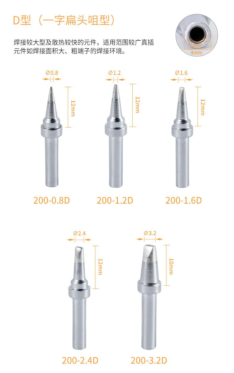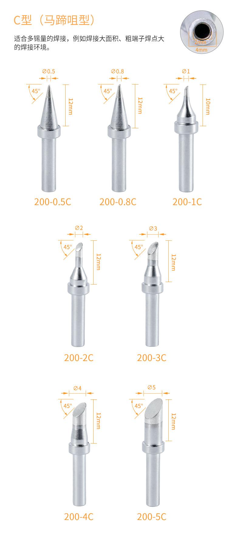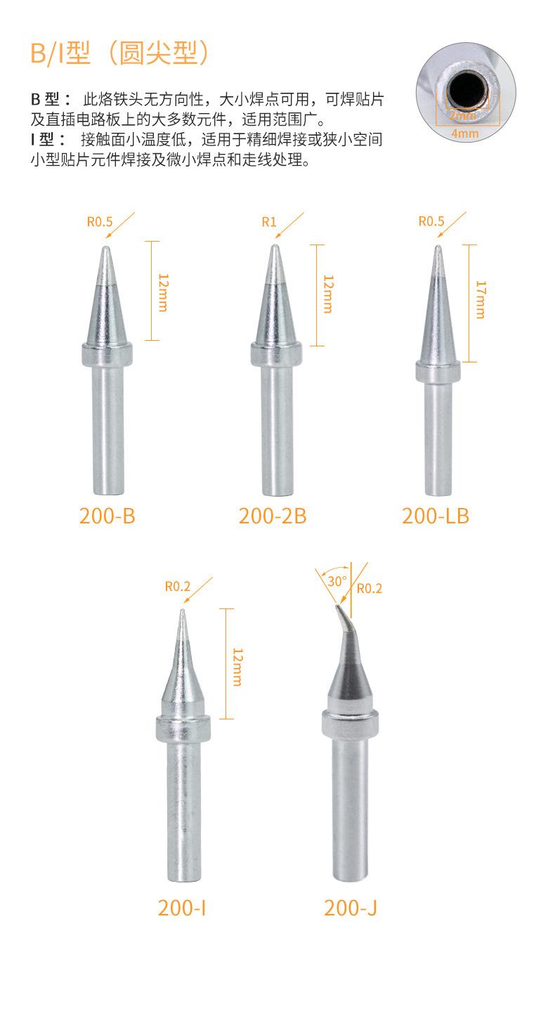 Juego asiático de 200 puntas de soldador de cabeza redonda 200-B/I, sin plomo, longevidad 203 h, estación de soldadura, punta curva, punta de soldador de 90 W