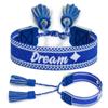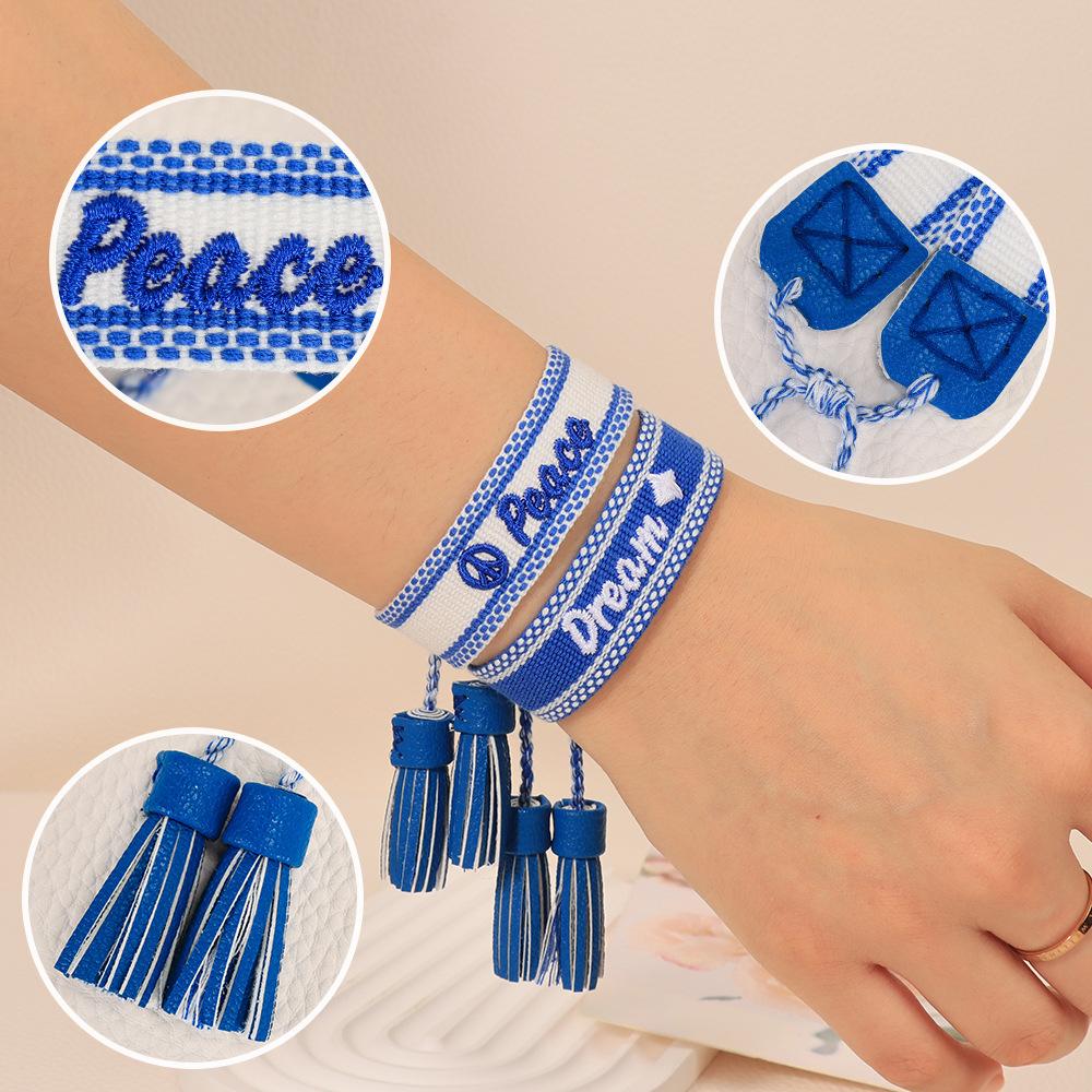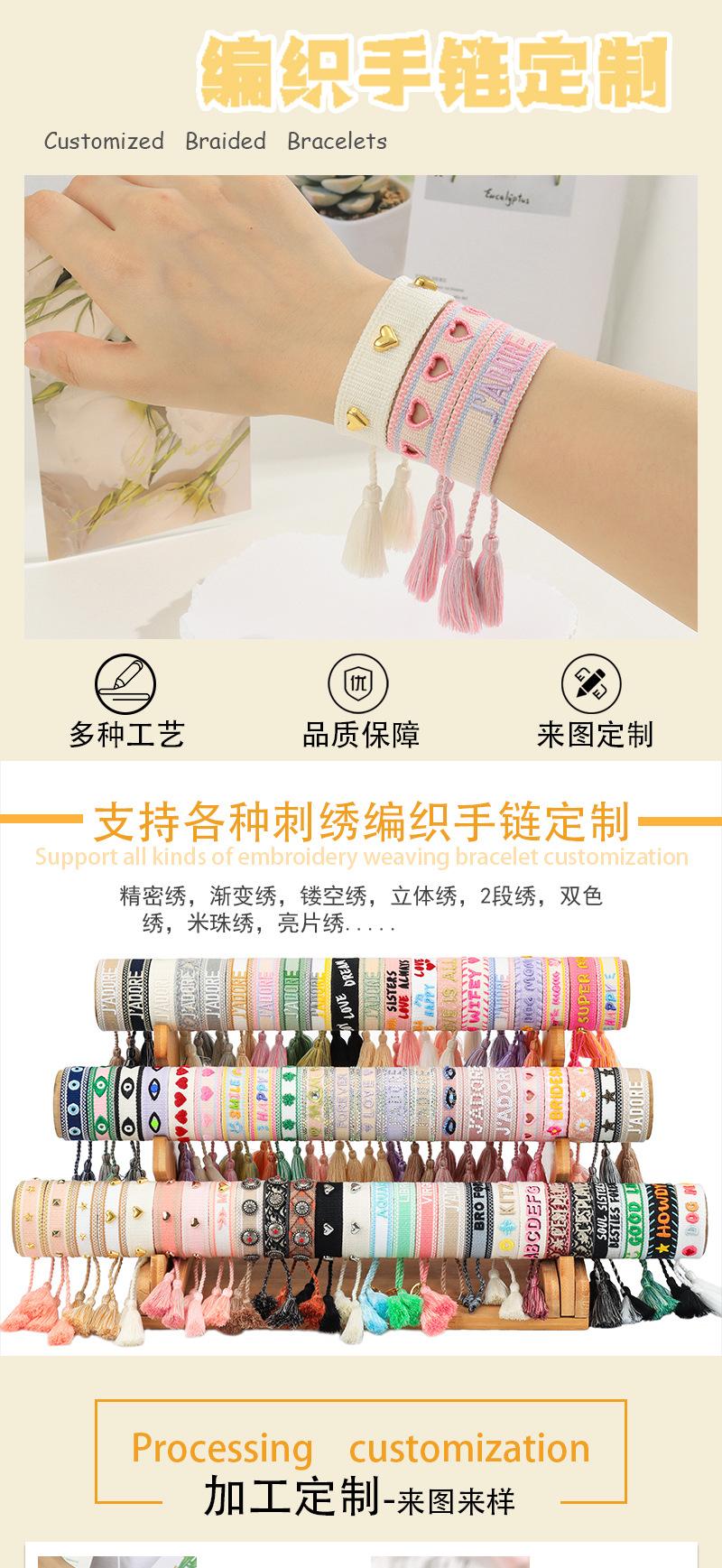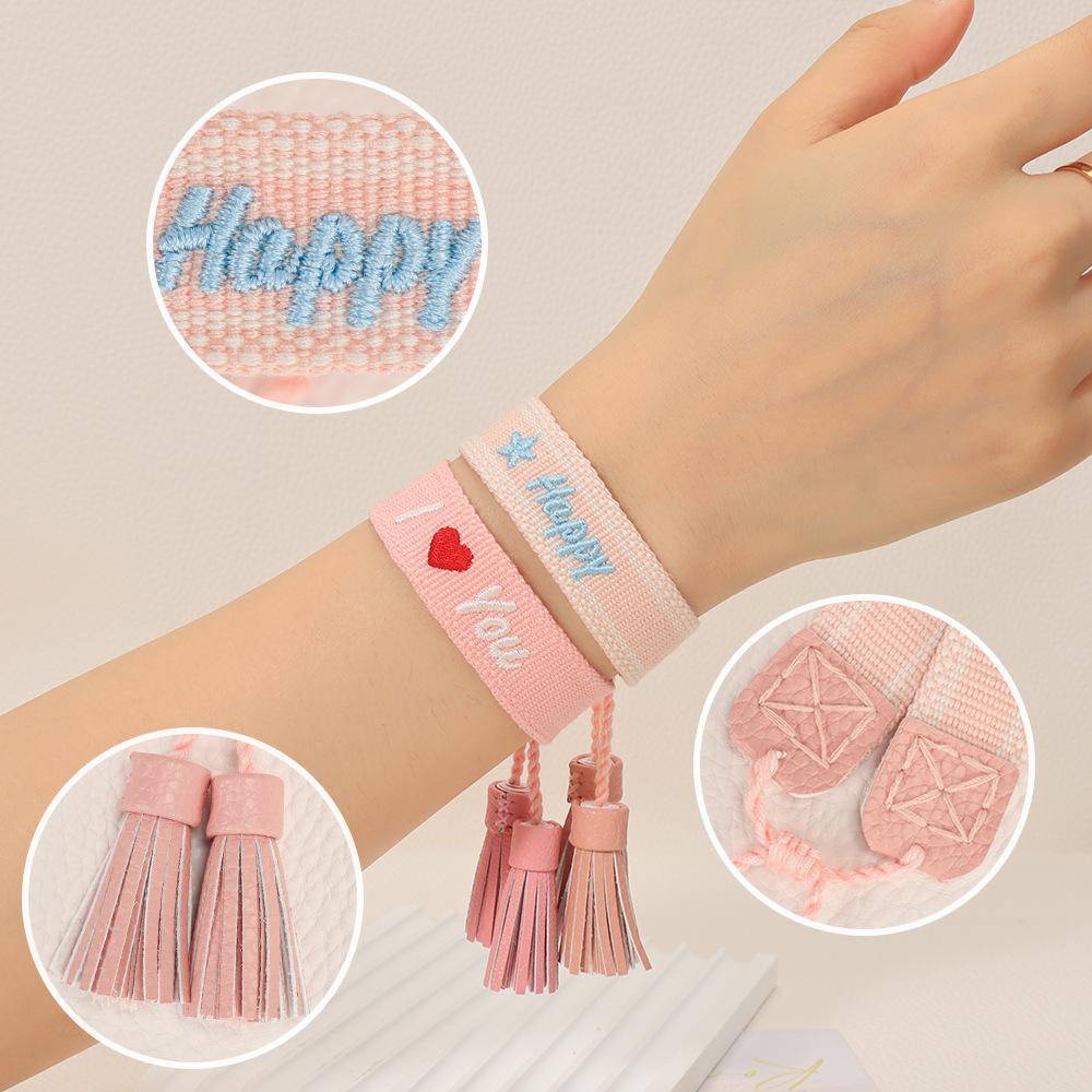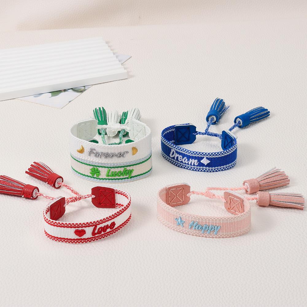 Pulsera de Amistad Trenzada Bordada con Letra Personalizada de Venta Caliente Europea y Americana para Mujer con Logo Simple y Pulsera de Borla de Cuero Personalizable