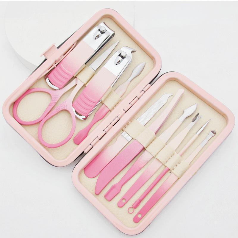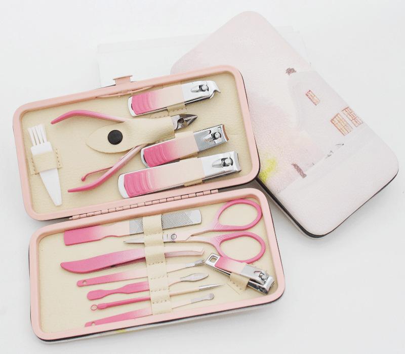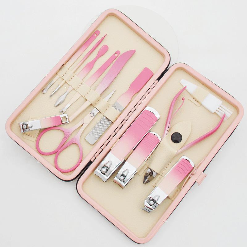 Tijeras para piel muerta de acero inoxidable con color degradado, cortaúñas, juego completo, venta al por mayor, juego de cortaúñas, caja