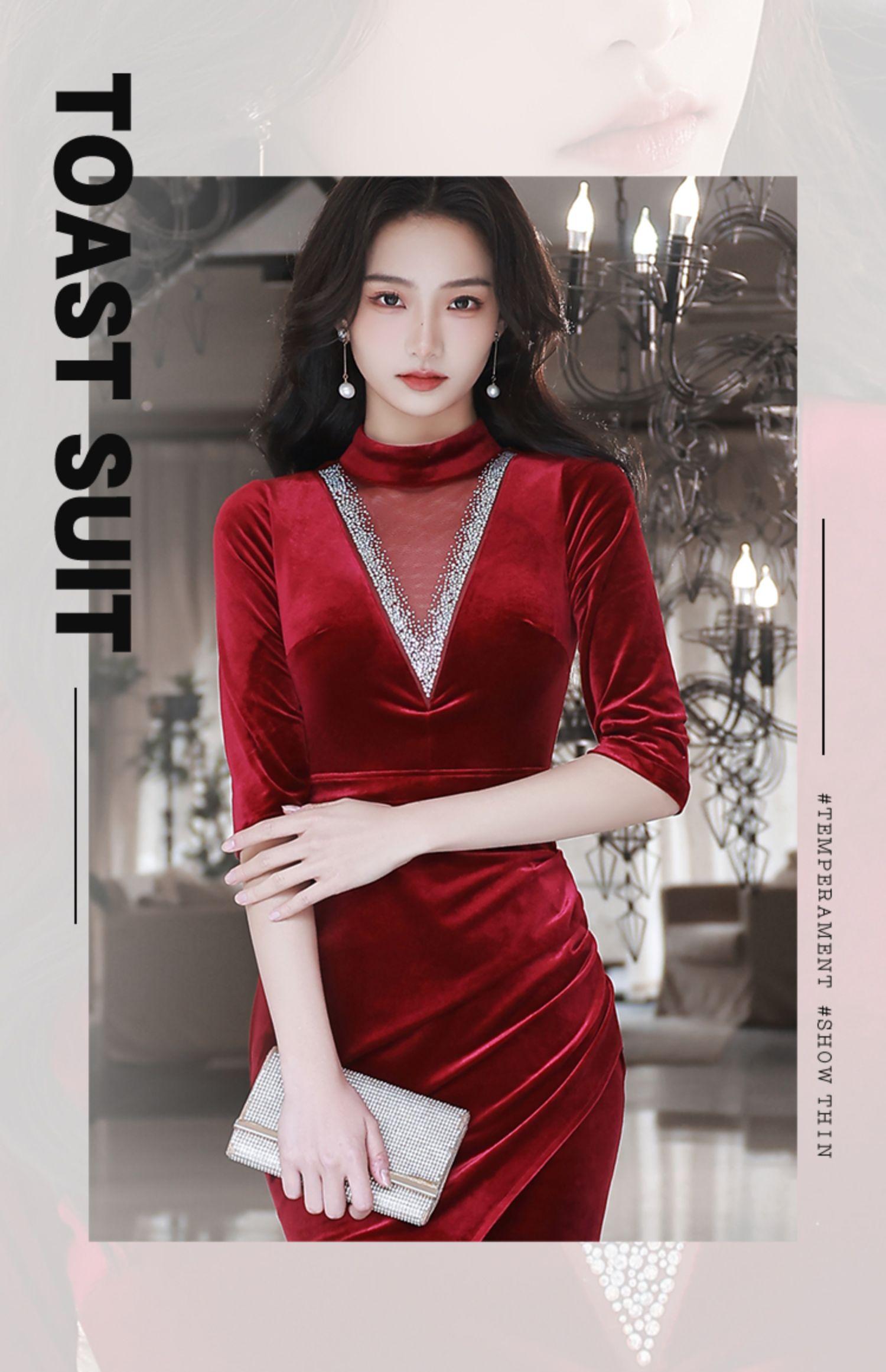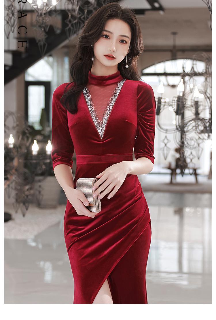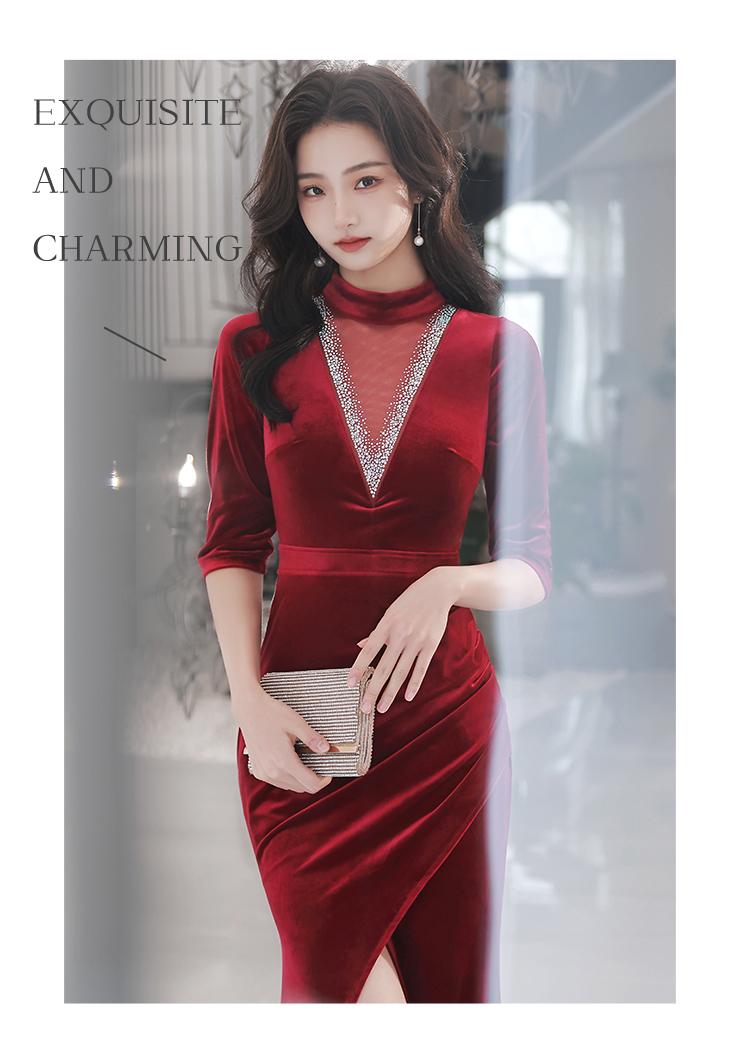 Vestido Rojo de Bienvenida, Nicho Elegante Anfitrión Fiesta Cóctel Compromiso Banquete Elegante Abertura Falda Larga Vestido de Noche