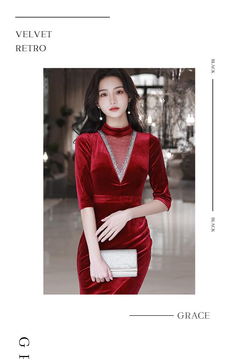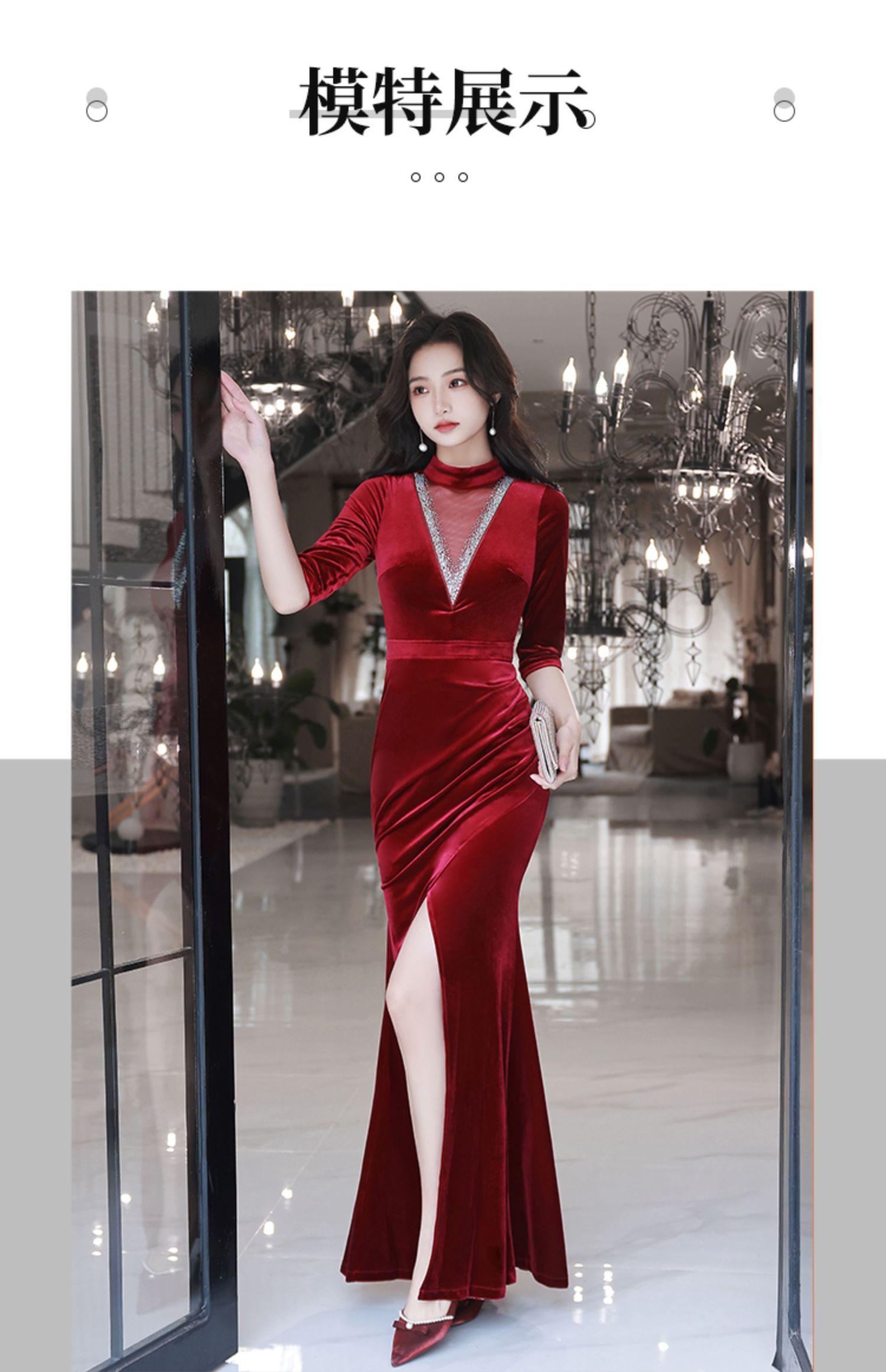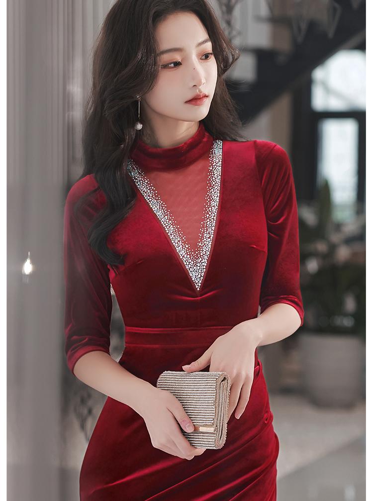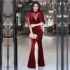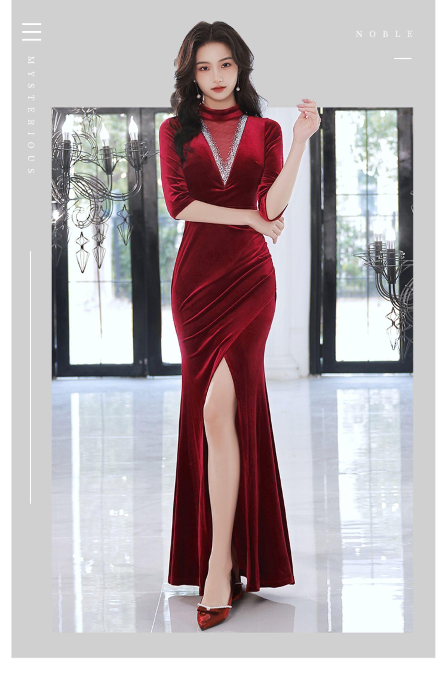 Vestido Rojo de Bienvenida, Nicho Elegante Anfitrión Fiesta Cóctel Compromiso Banquete Elegante Abertura Falda Larga Vestido de Noche