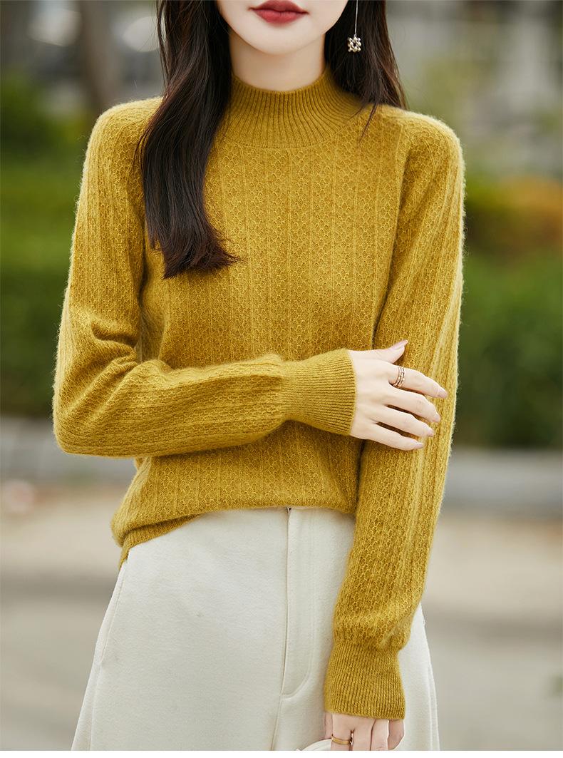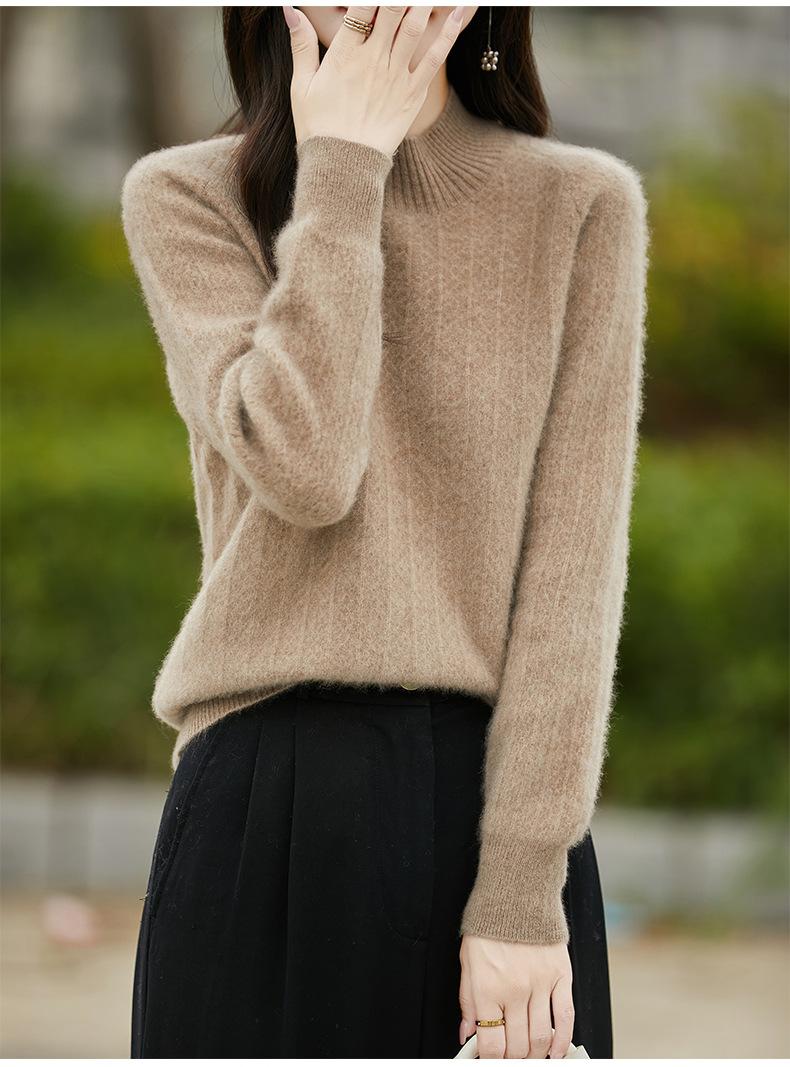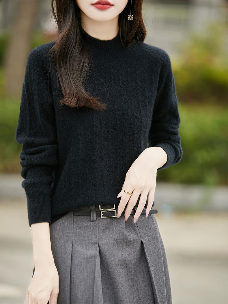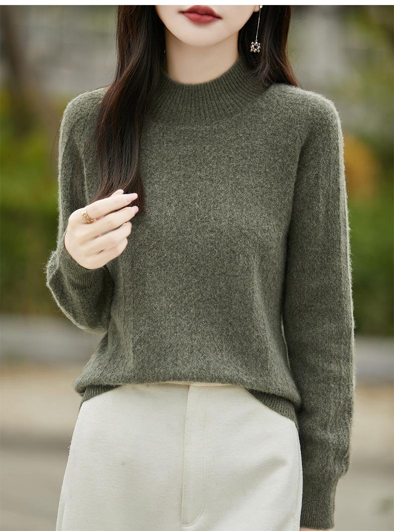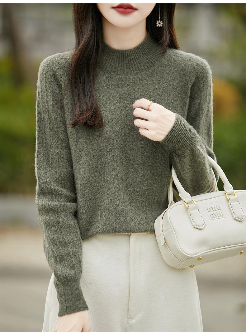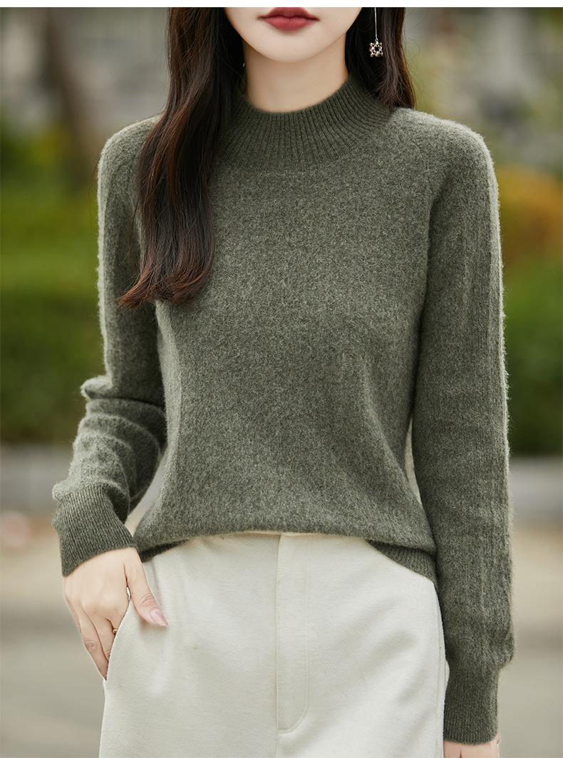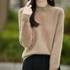 Suéter de cuello medio alto 24 años otoño e invierno nuevo suéter de lana pura para mujer estilo occidental reductor de edad suelto color sólido camiseta base