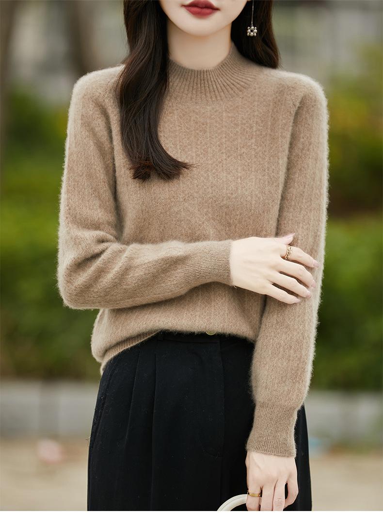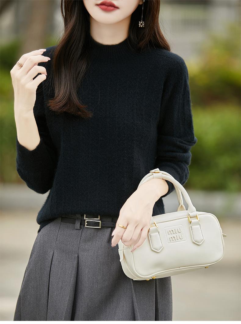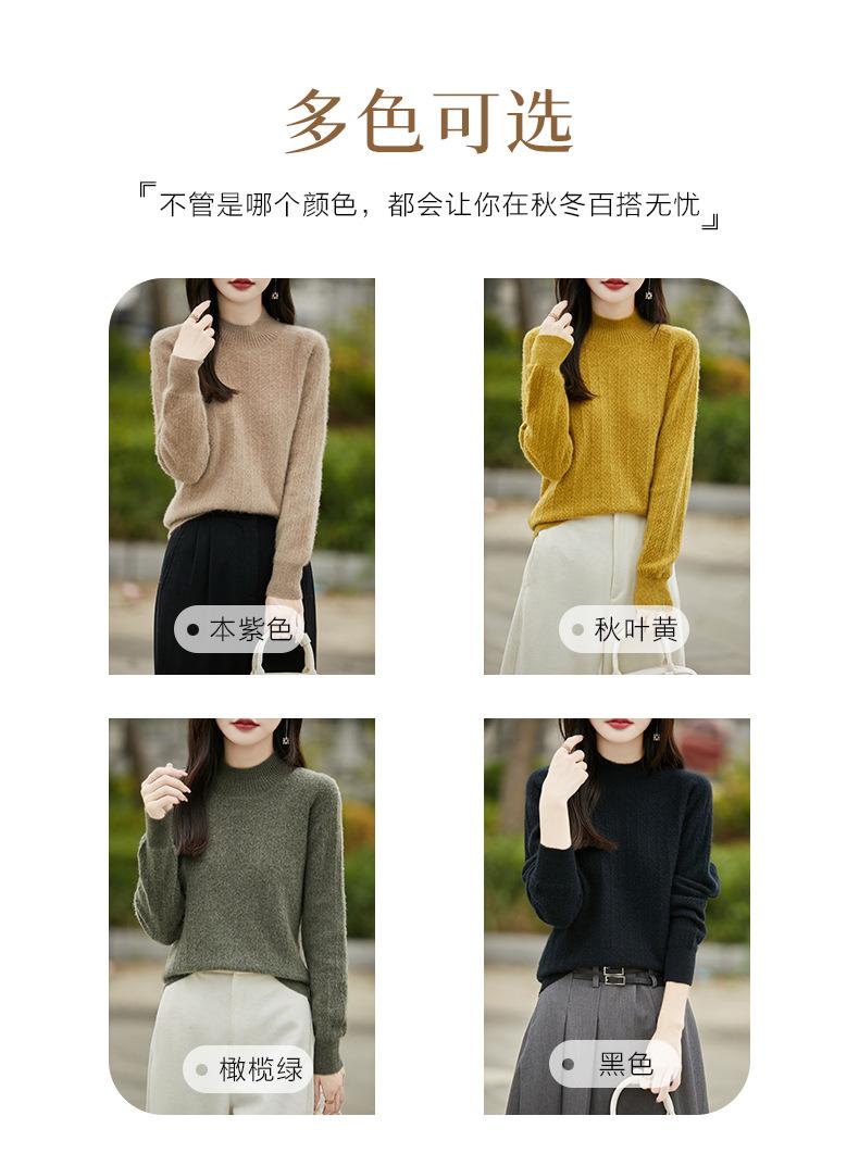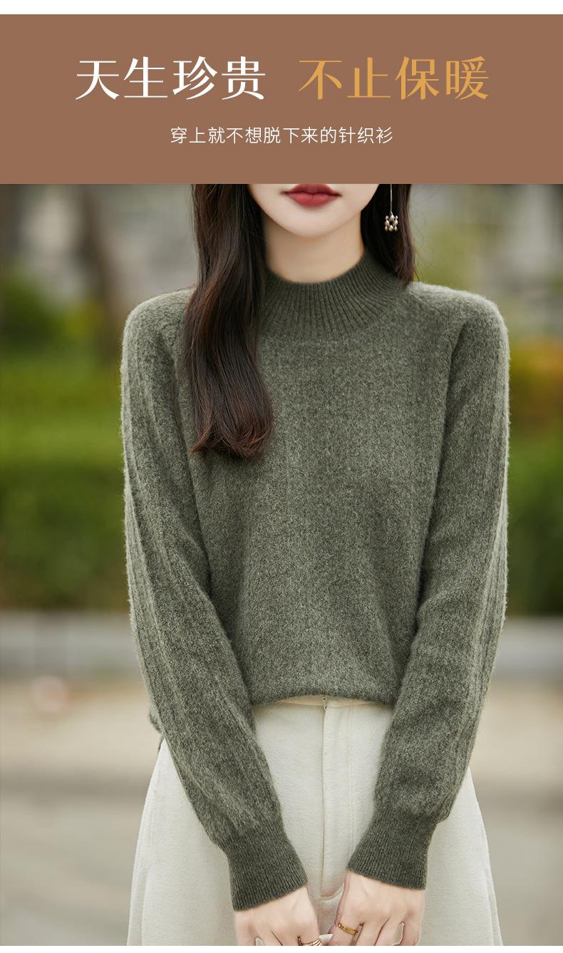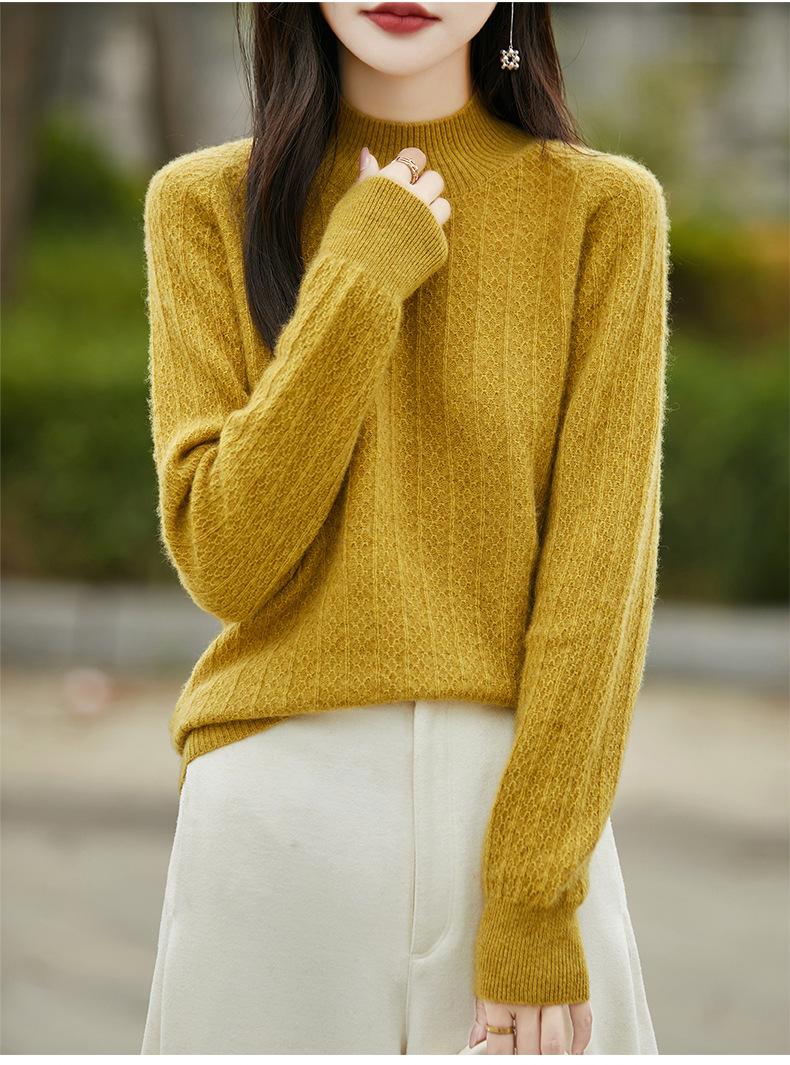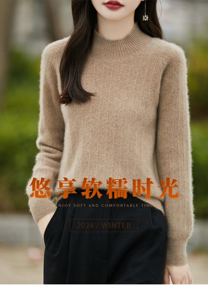 Suéter de cuello medio alto 24 años otoño e invierno nuevo suéter de lana pura para mujer estilo occidental reductor de edad suelto color sólido camiseta base