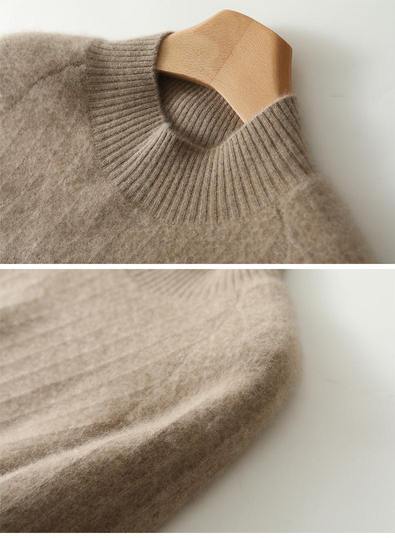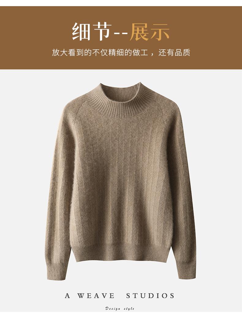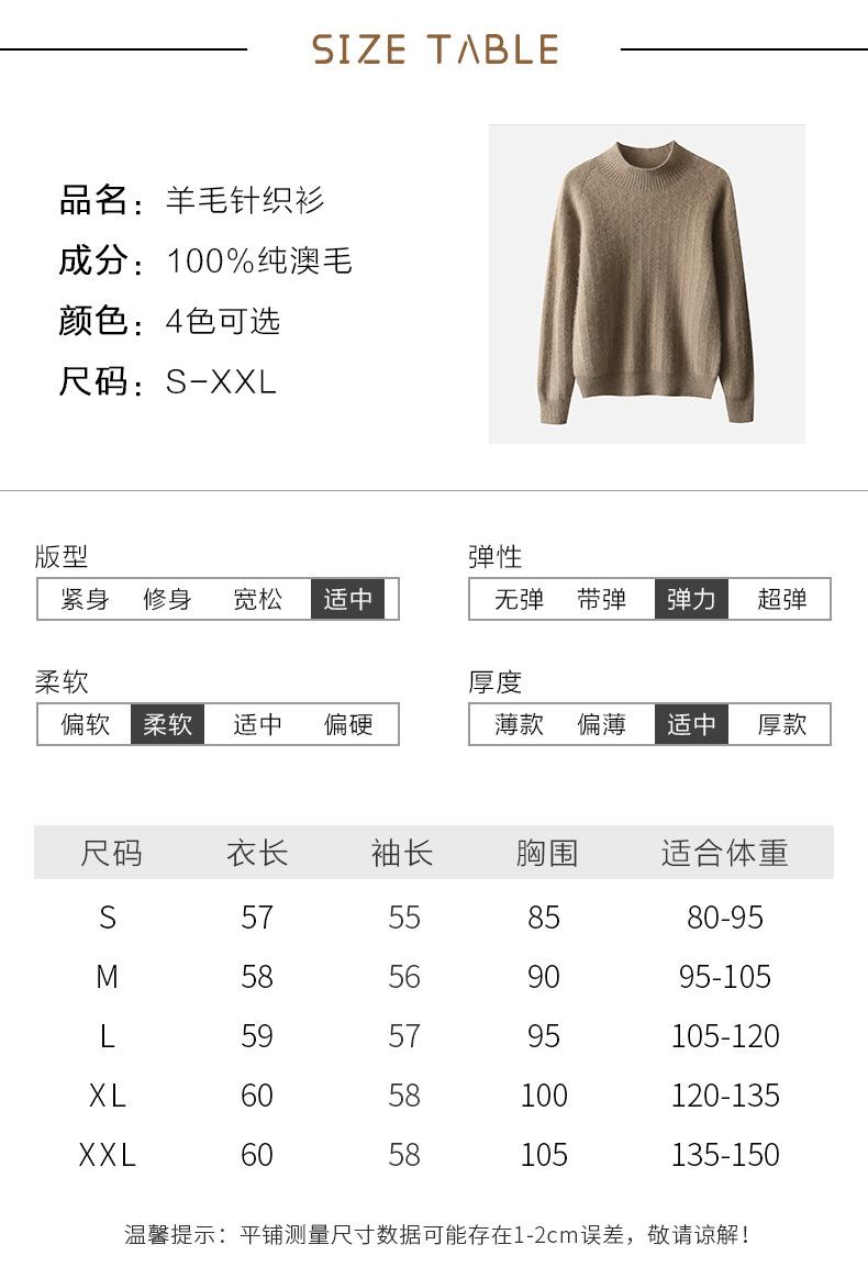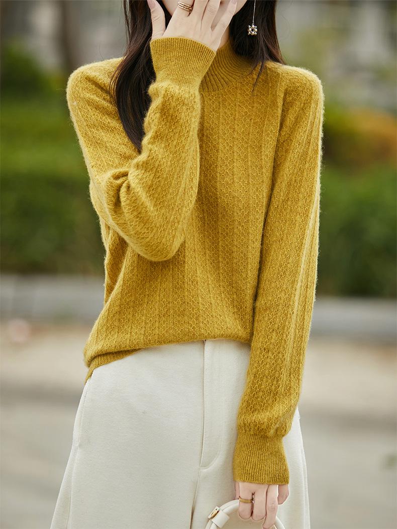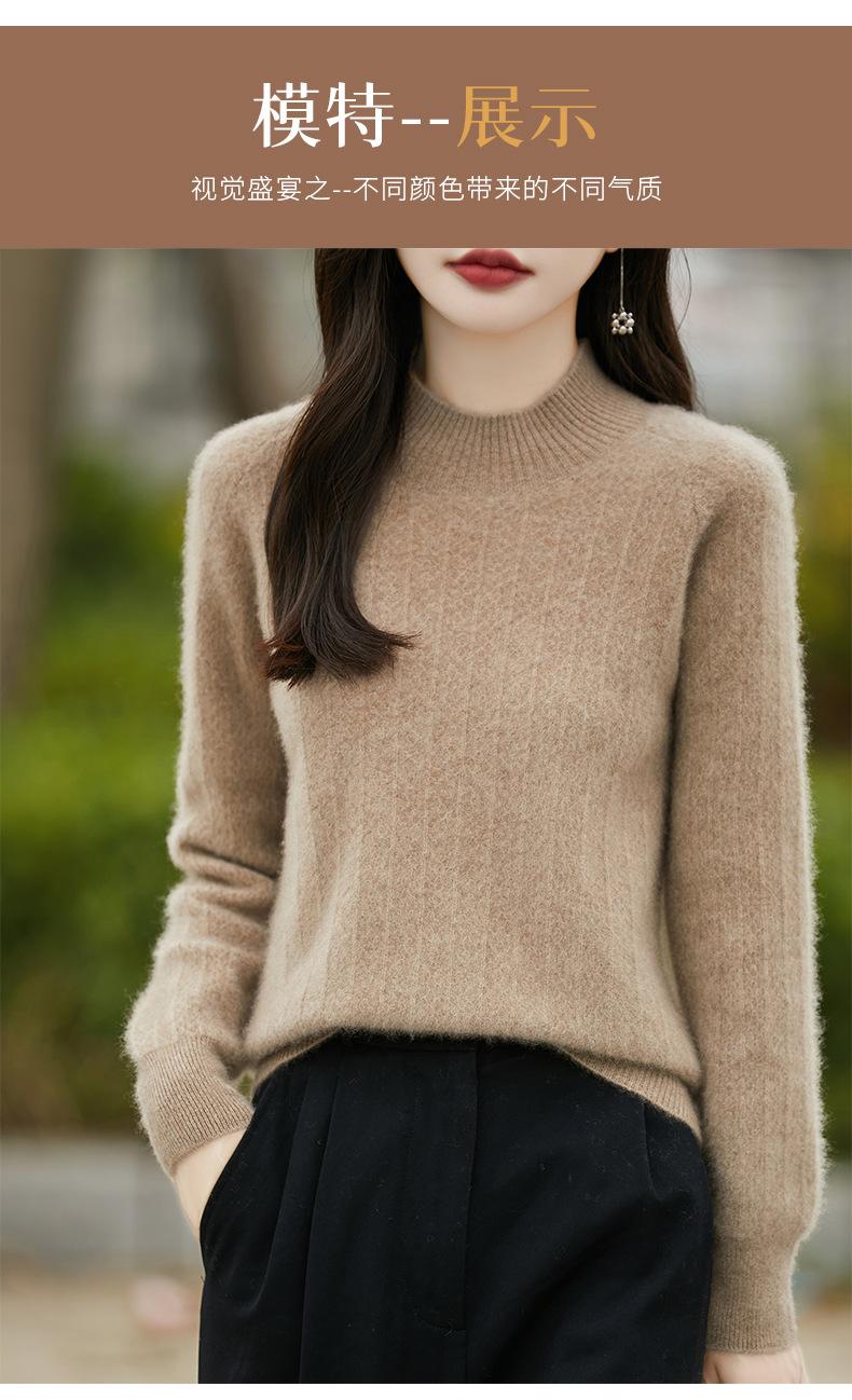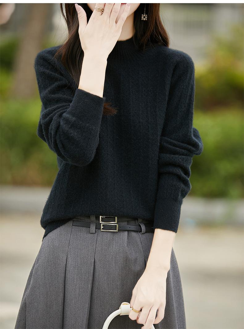Suéter de cuello medio alto 24 años otoño e invierno nuevo suéter de lana pura para mujer estilo occidental reductor de edad suelto color sólido camiseta base