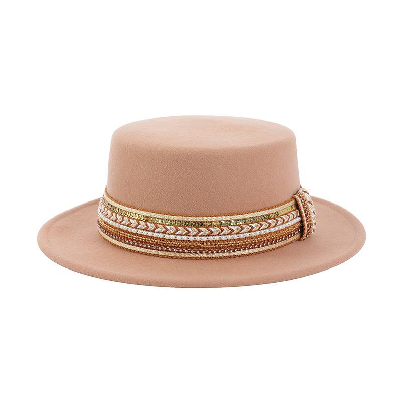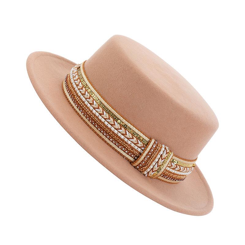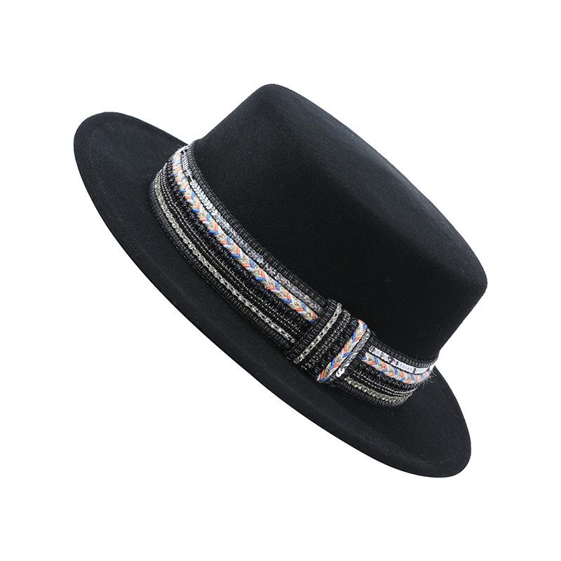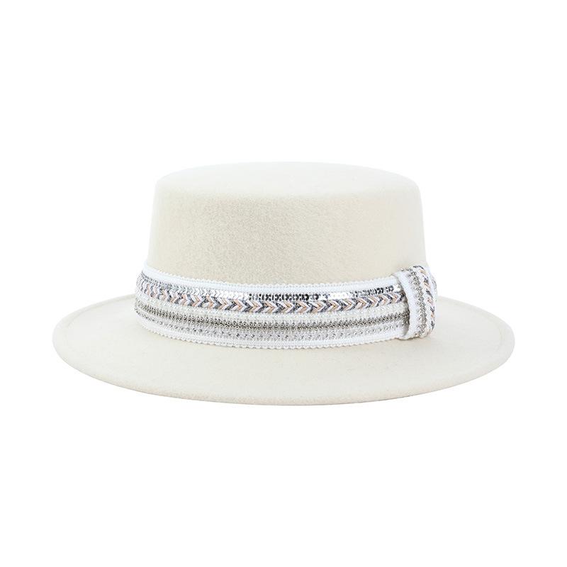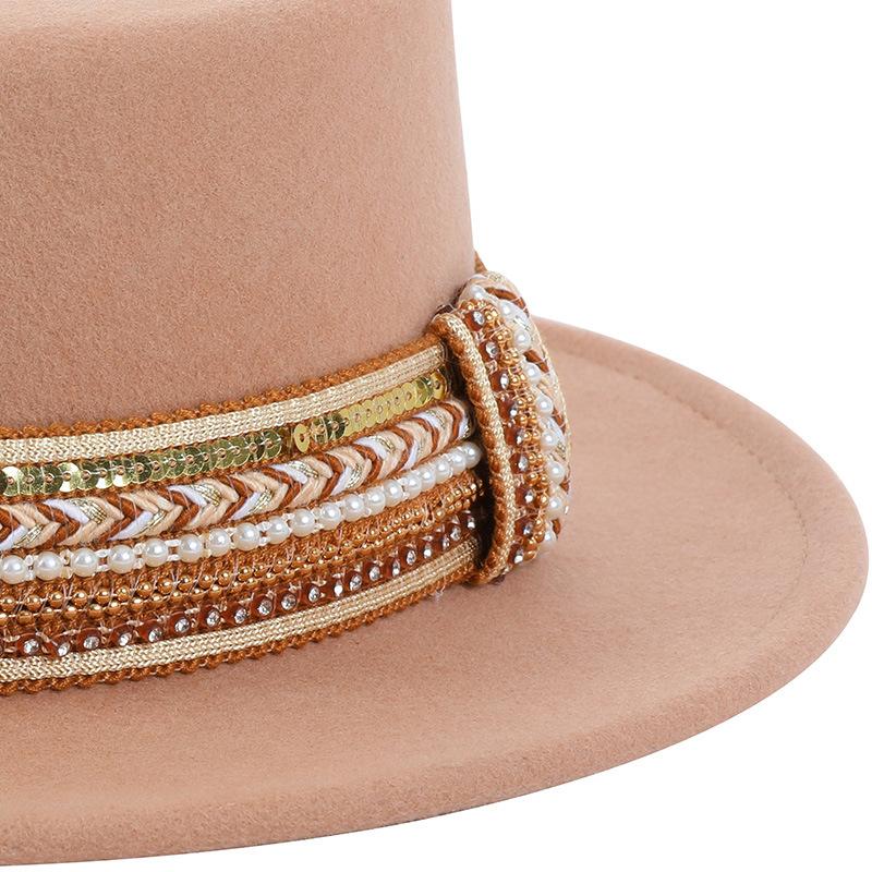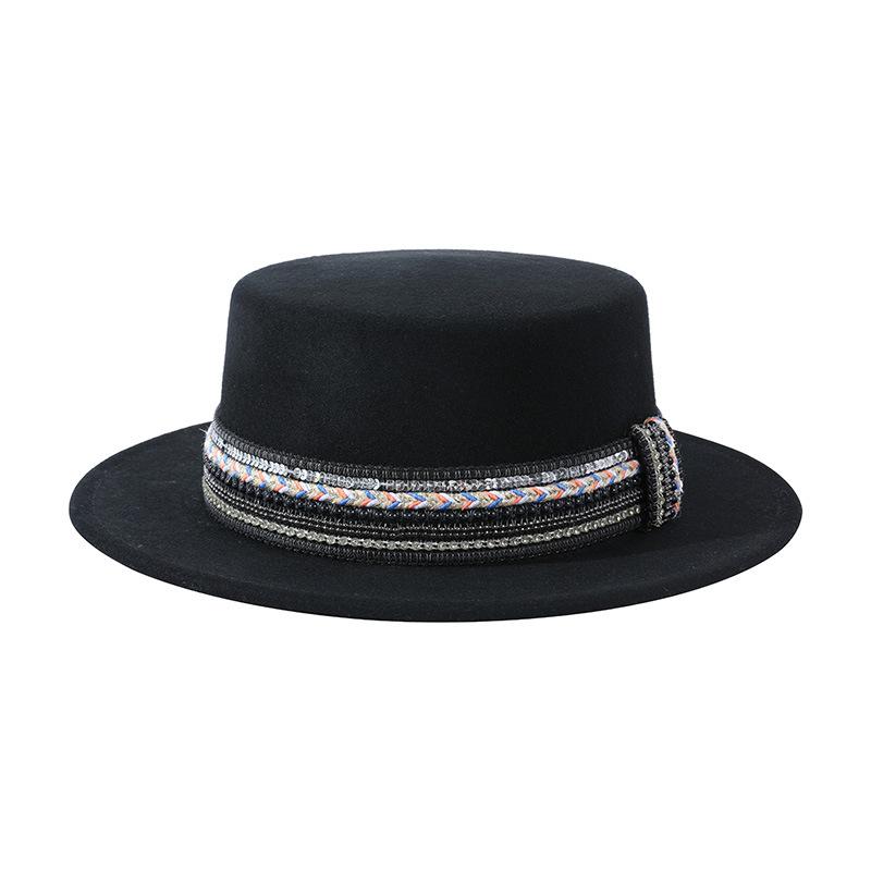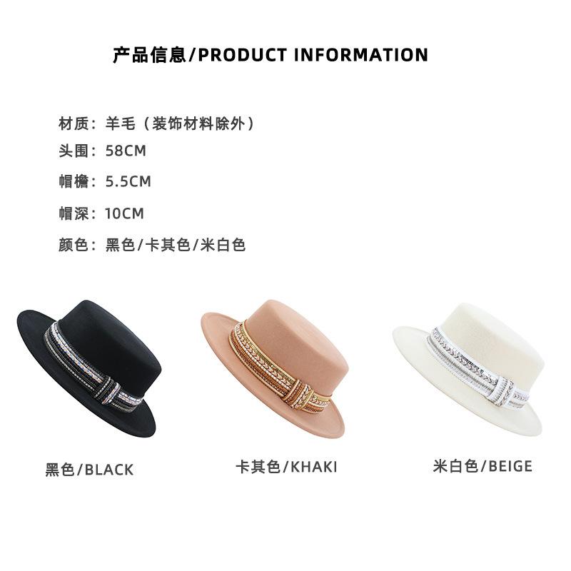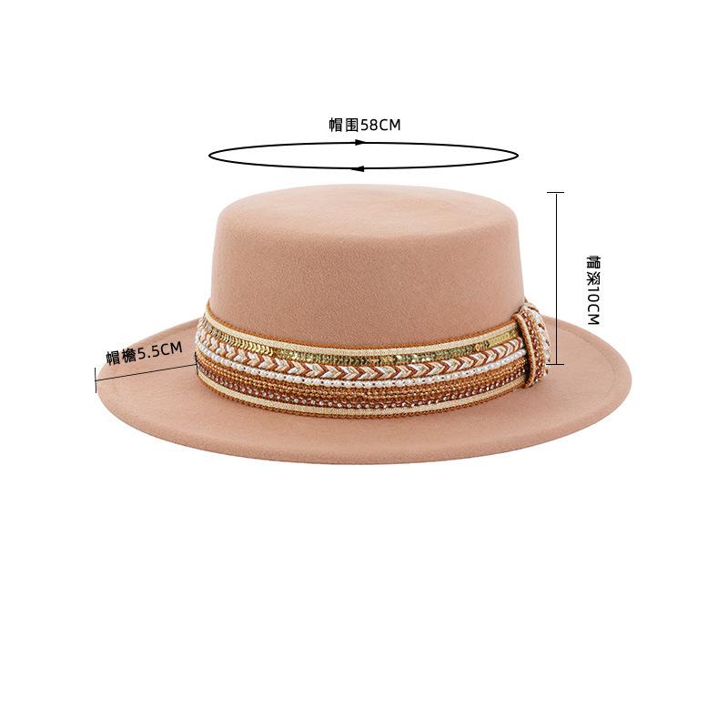 Sombrero plano de lana de estilo británico para otoño e invierno, sombrero de jazz de ala grande, cálido y protector solar, para mujer, estilo europeo y americano.