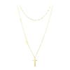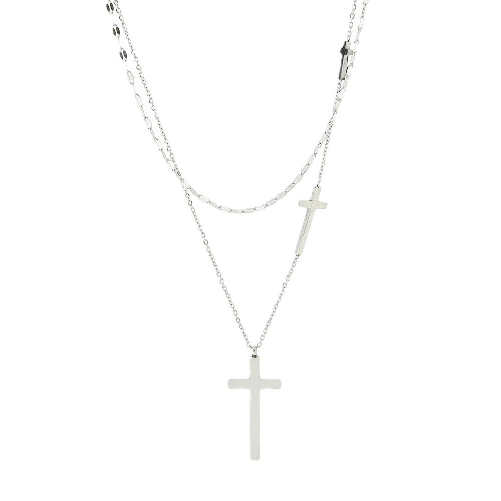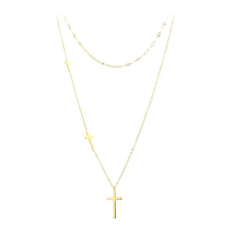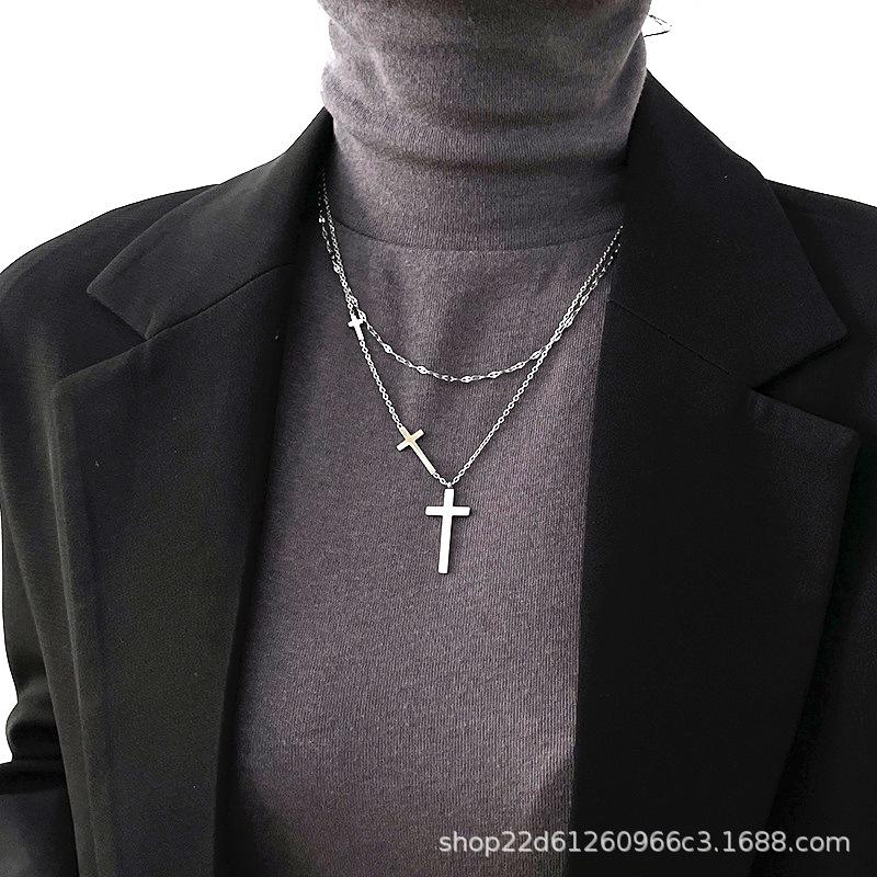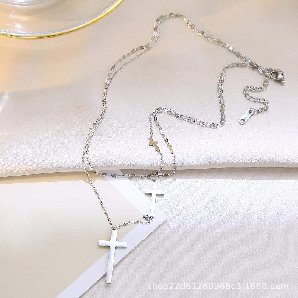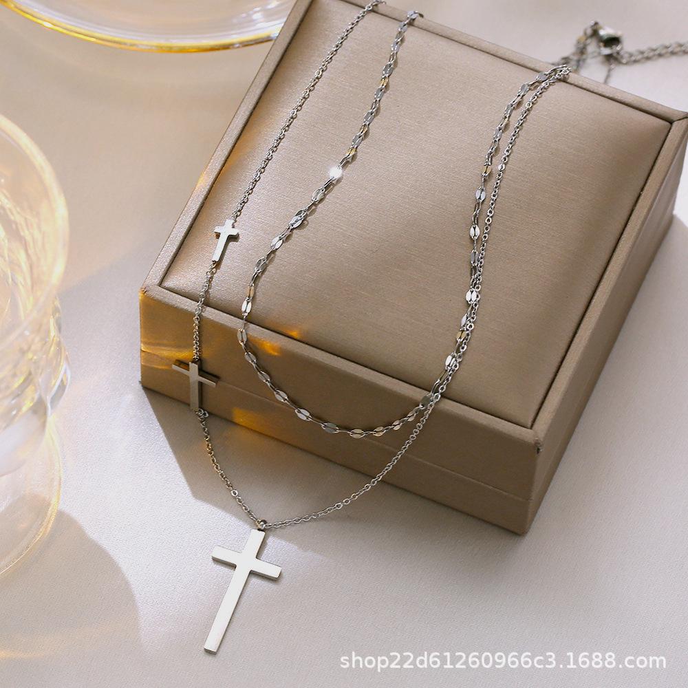 Collar de acero de titanio con cruz de doble capa de 18 quilates, nuevo y lujoso, de estilo transfronterizo, cadena de suéter de moda para mujer, joyería de acero inoxidable que combina con todo.