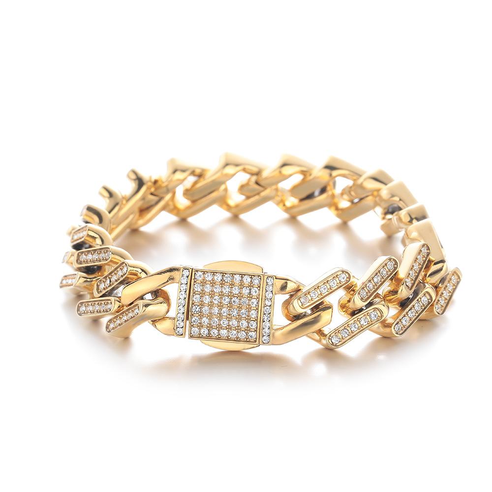Collar Pulsera Joyería Accesorios de Joyería Personalizados Modernos para Hombre Europeo y Americano con Exagerados Diamantes con Forma de Diamante Dorados Cubanos
