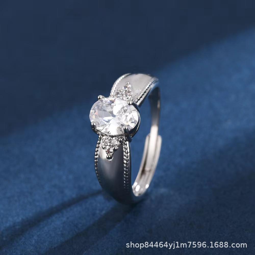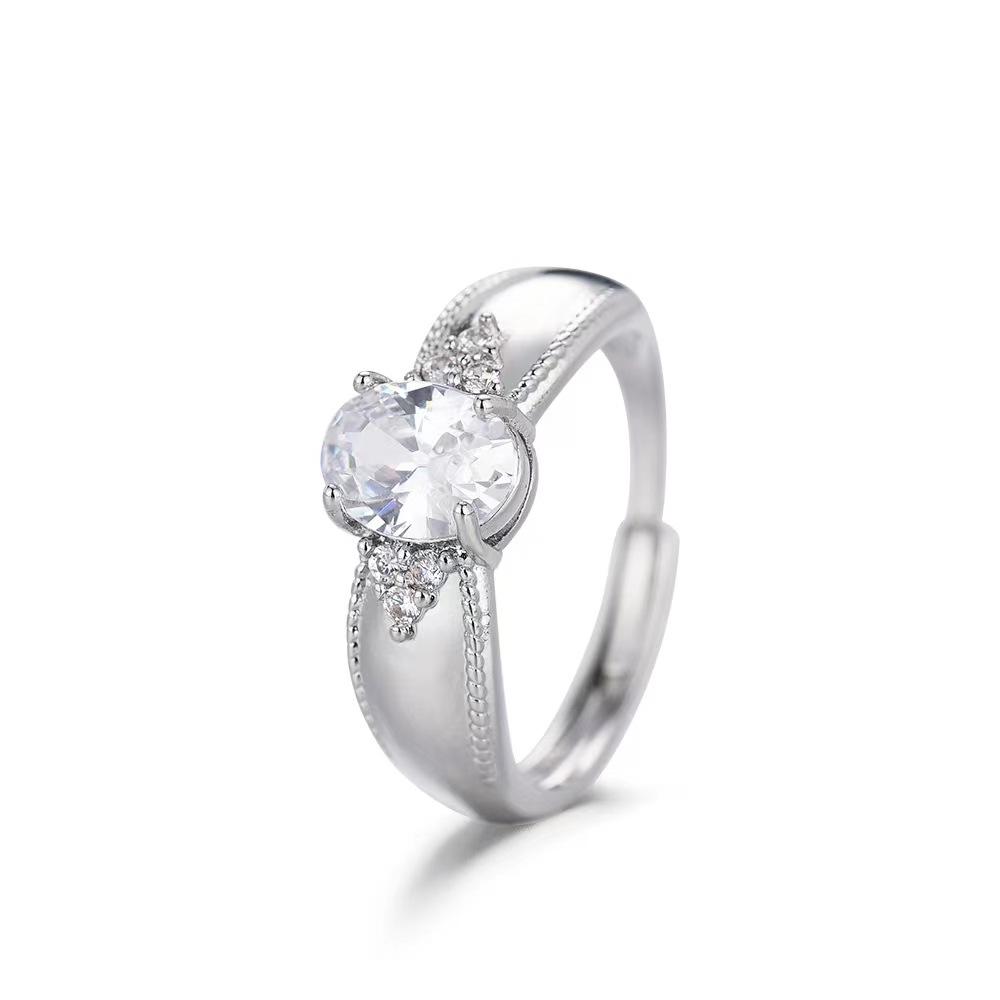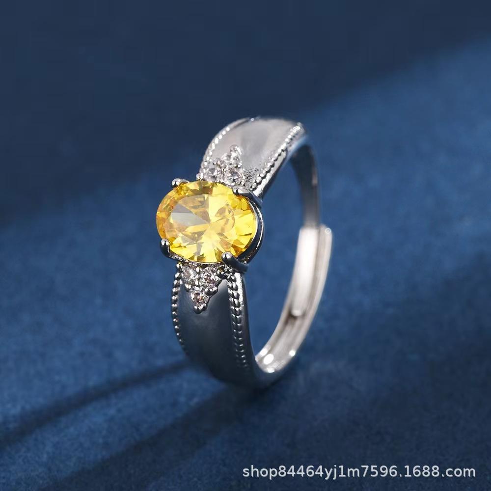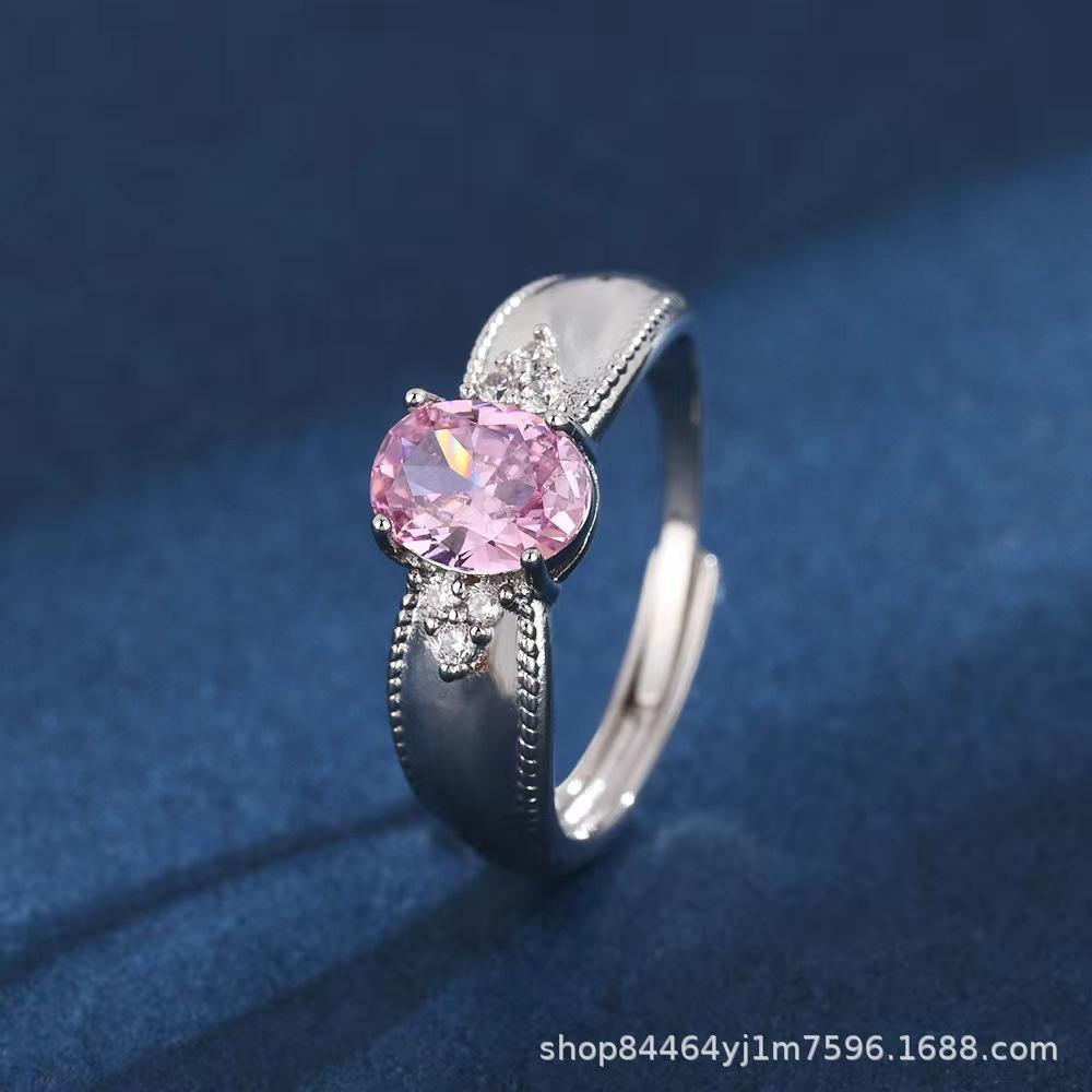 Anillo de circonita de moda Anillo simple para mujer rosa púrpura amarillo blanco en forma de huevo anillo para mujer transfronterizo europeo y americano ajustable