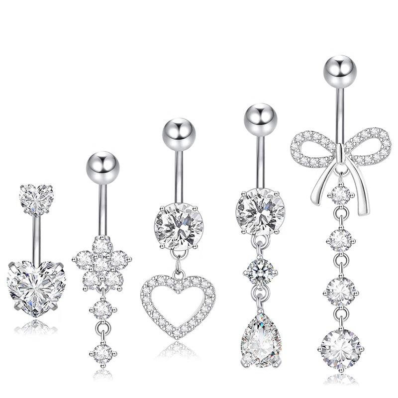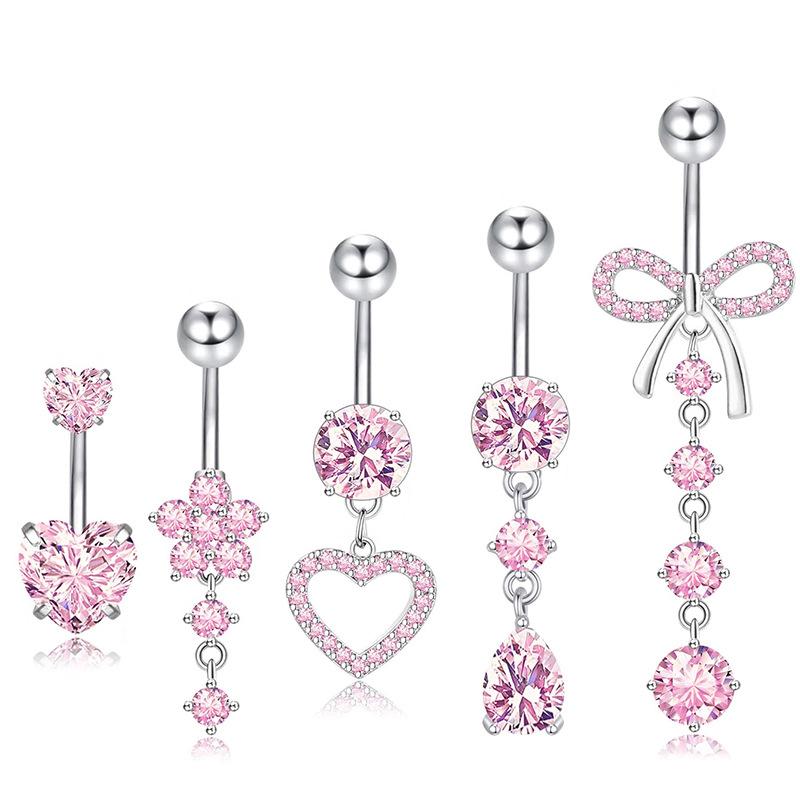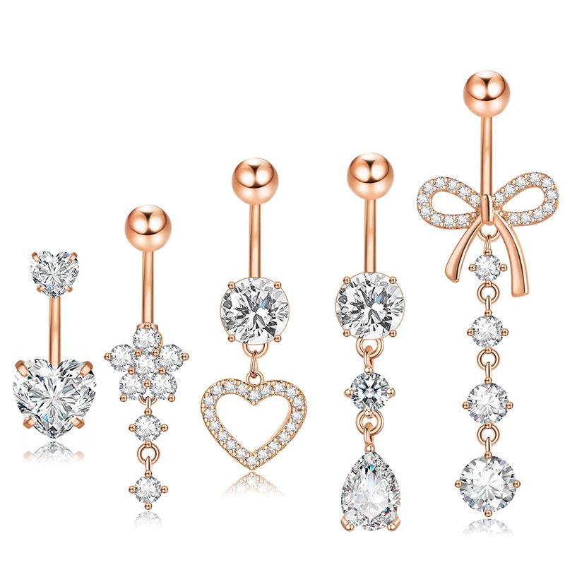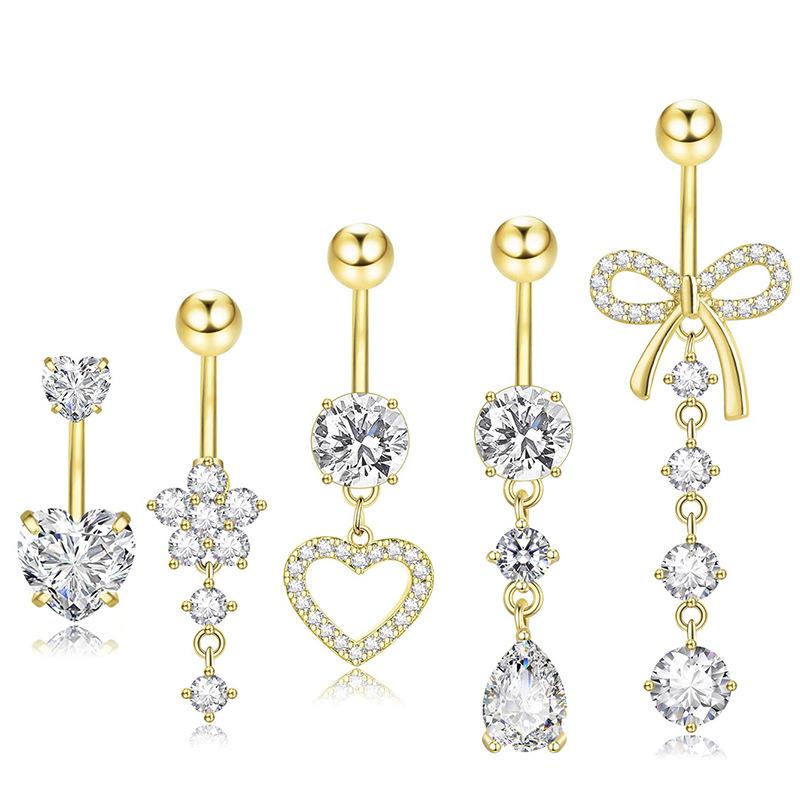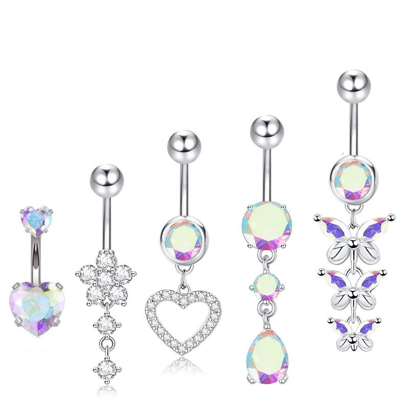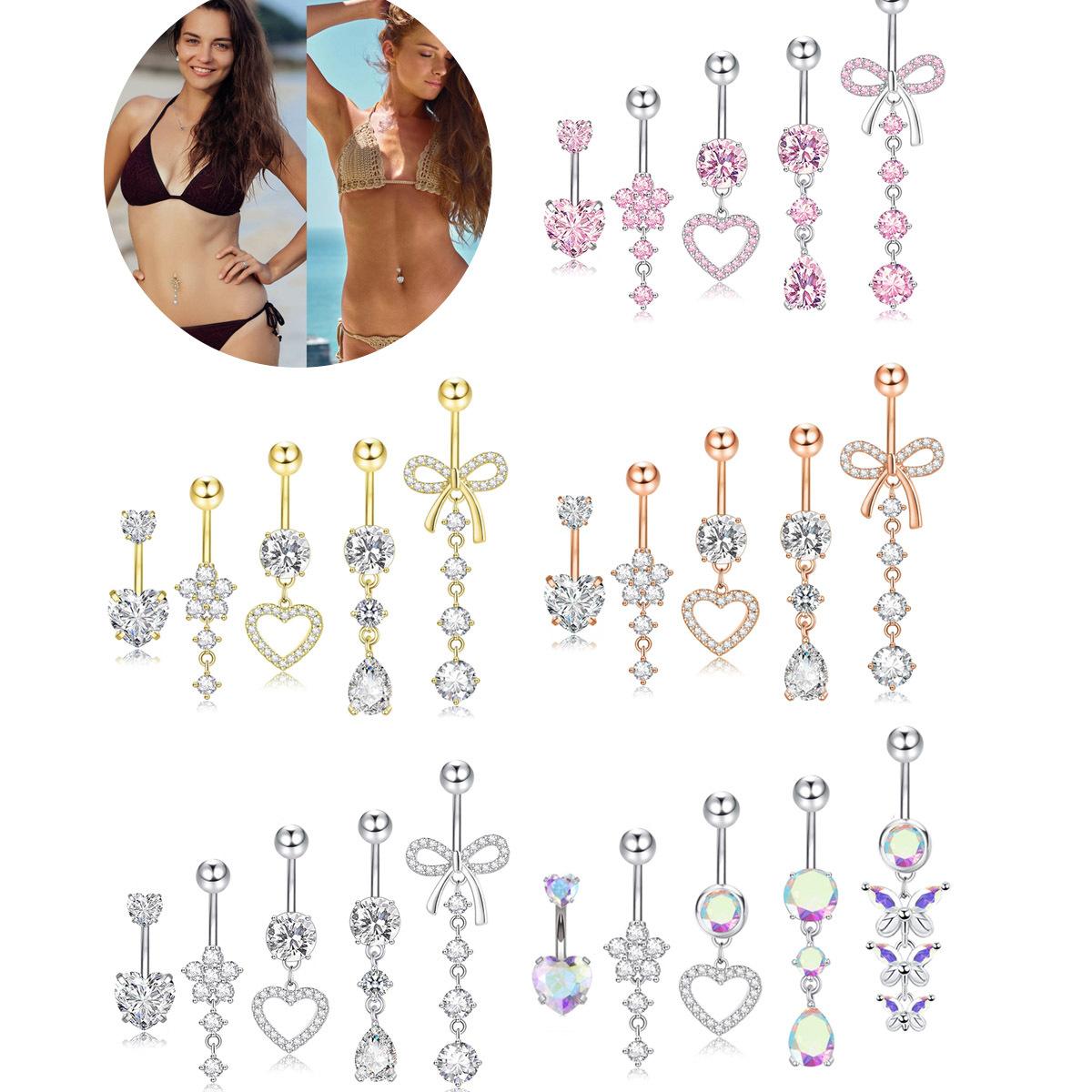 5 piezas anillo para ombligo de circonita micro incrustada anillo para ombligo de mariposa anillo para ombligo simple de corazón hueco clavo para ombligo joyería para piercing corporal traje