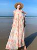 Vestido estilo francés dulce de verano de talla grande para mujer, plisado, suelto, estilo perezoso, color sólido, largo, estilo de alta gama.