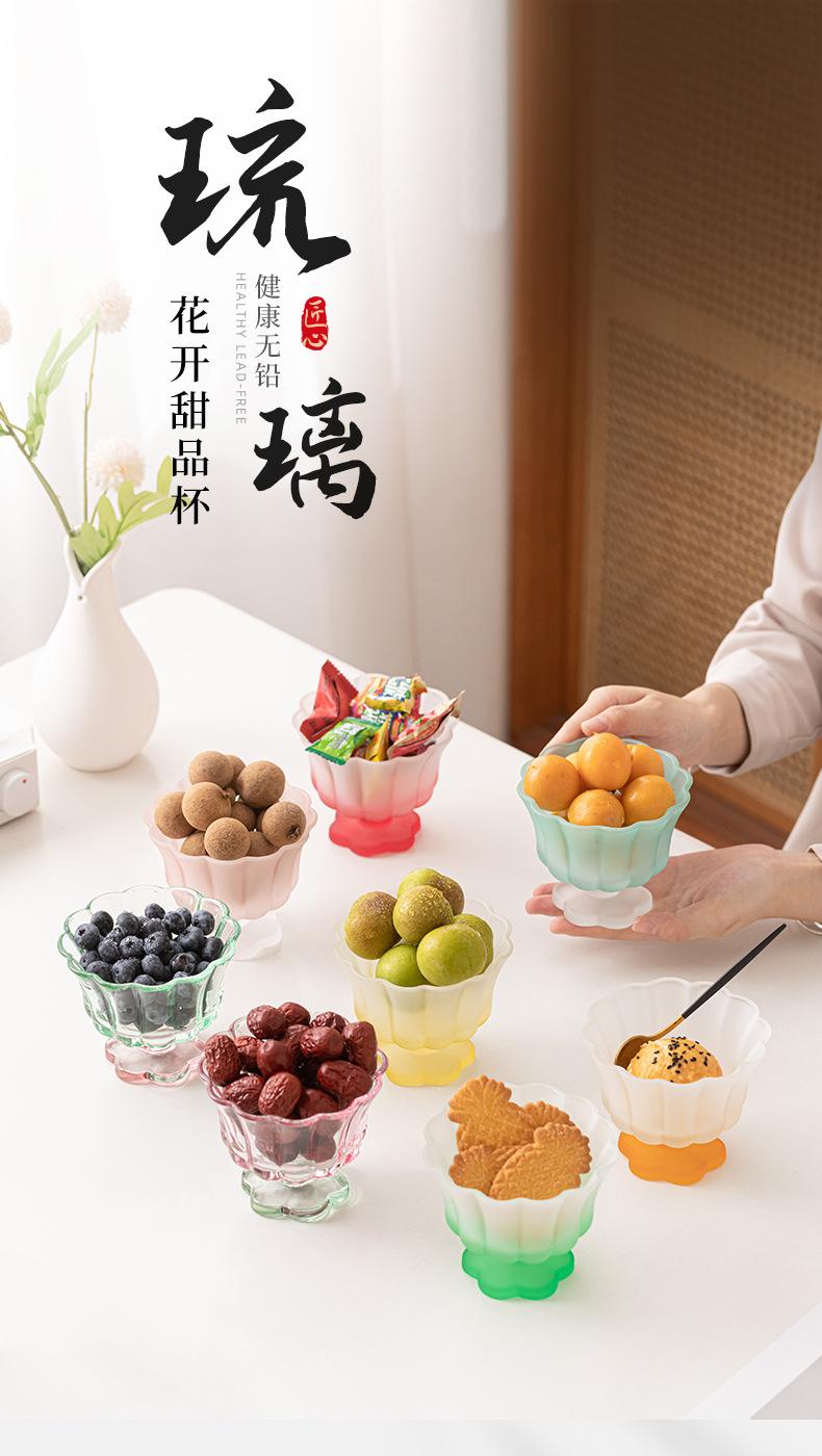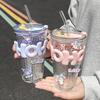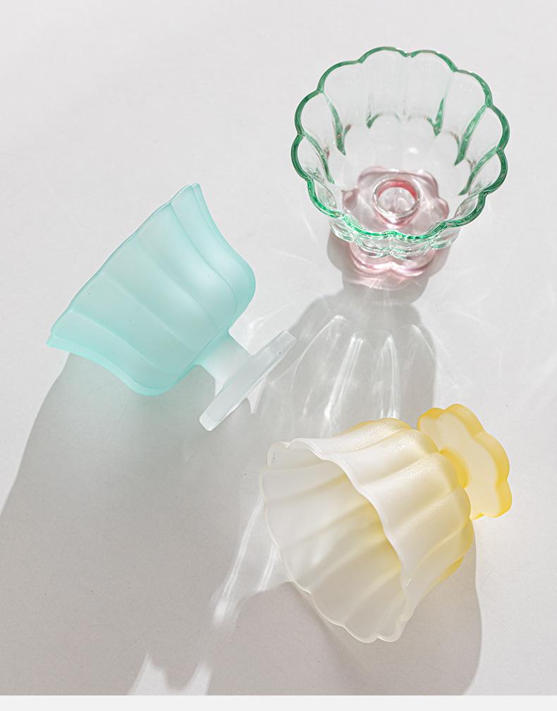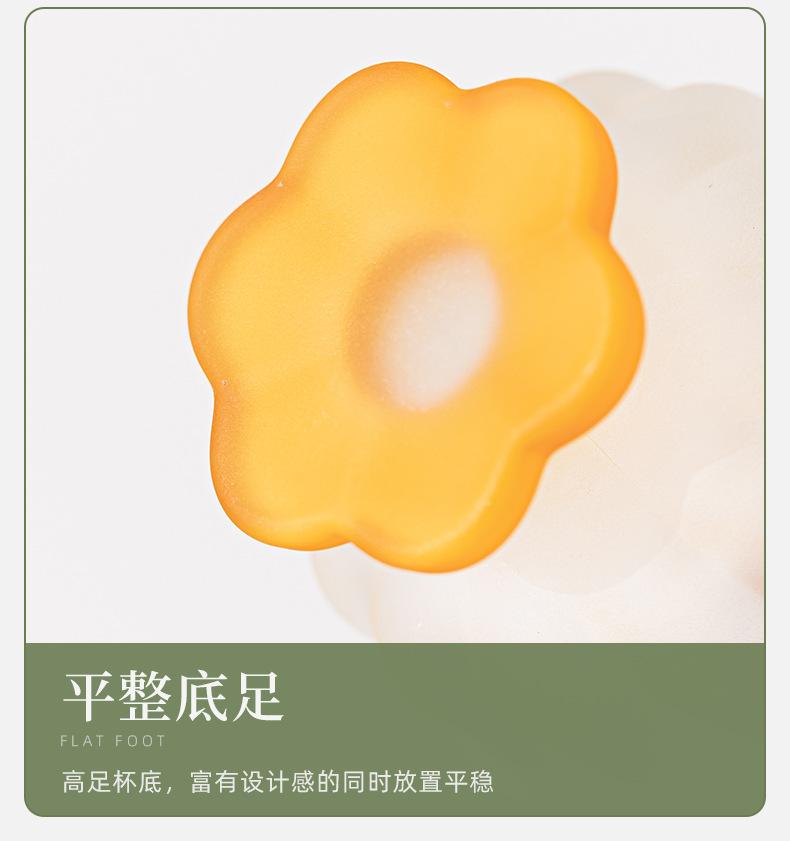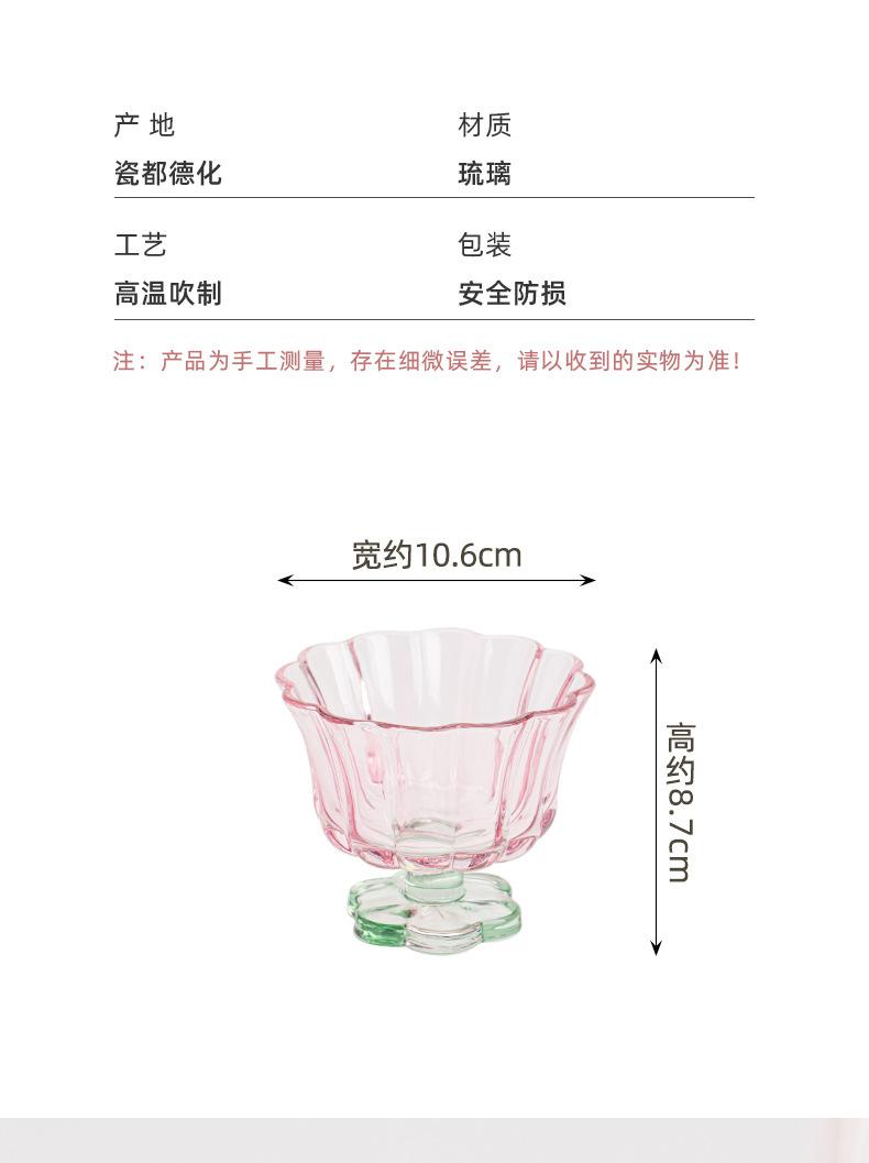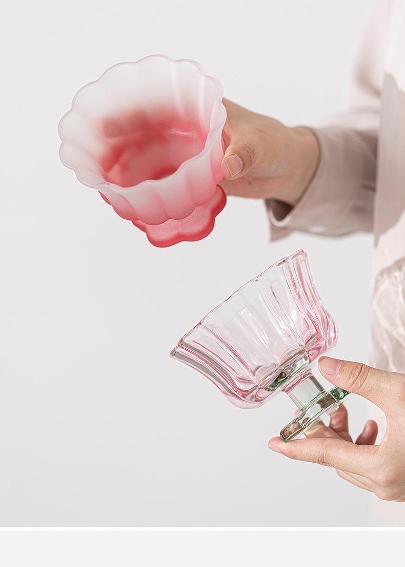 Taza de agua glaseada, taza de té de pétalos, taza de vidrio, taza de aspecto femenino, taza para beber en el hogar, taza de jugo, taza de yogur