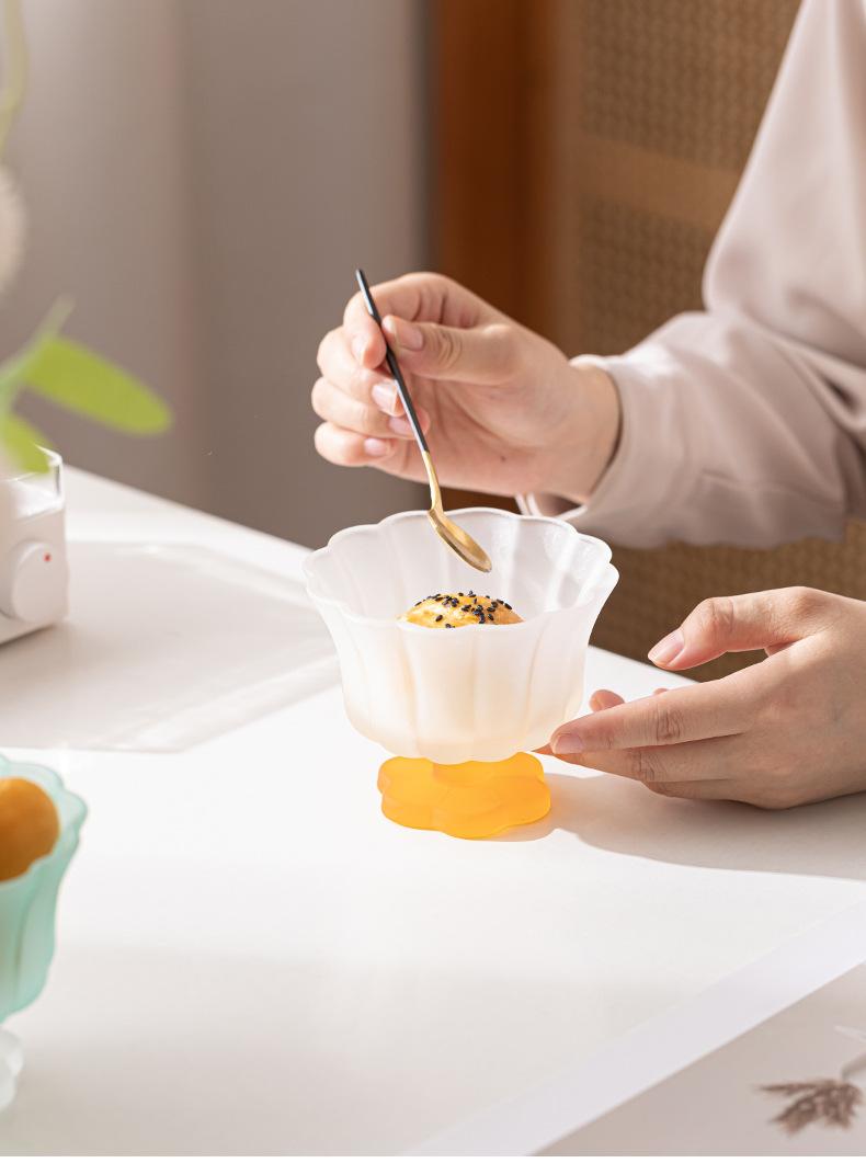Flower blooming dessert cup-white peach powder, Flowers blooming dessert cup-little yellow duck, Flower bloomi...