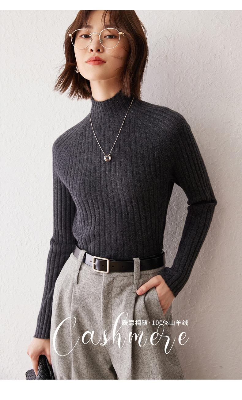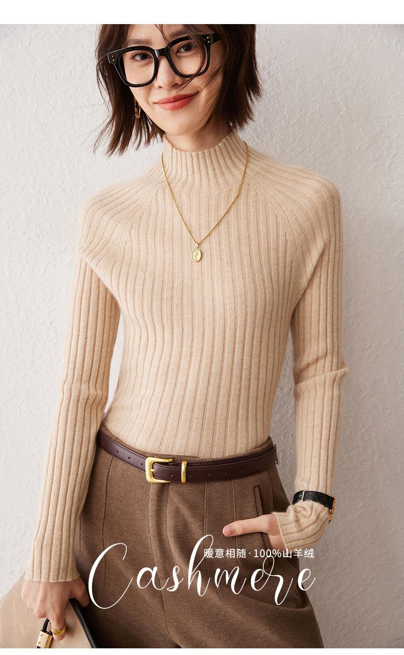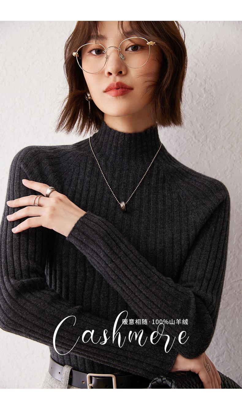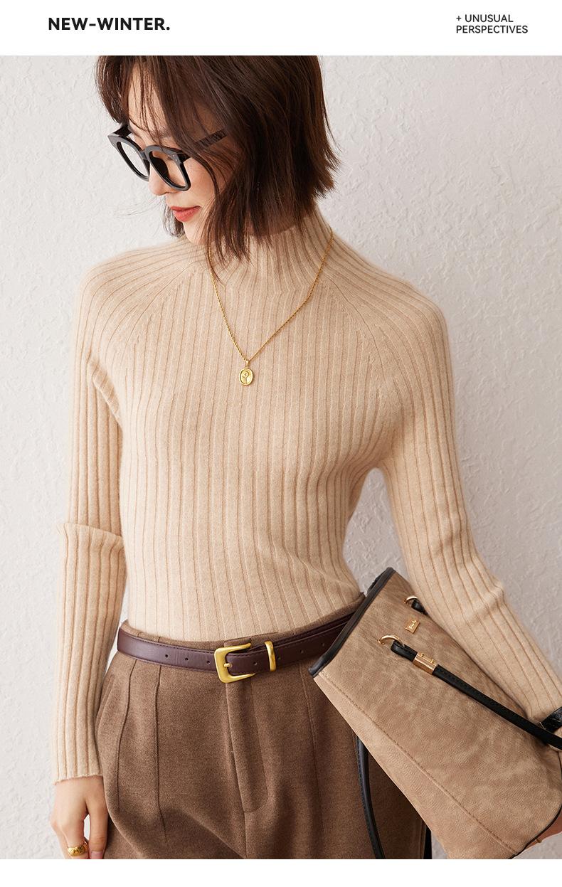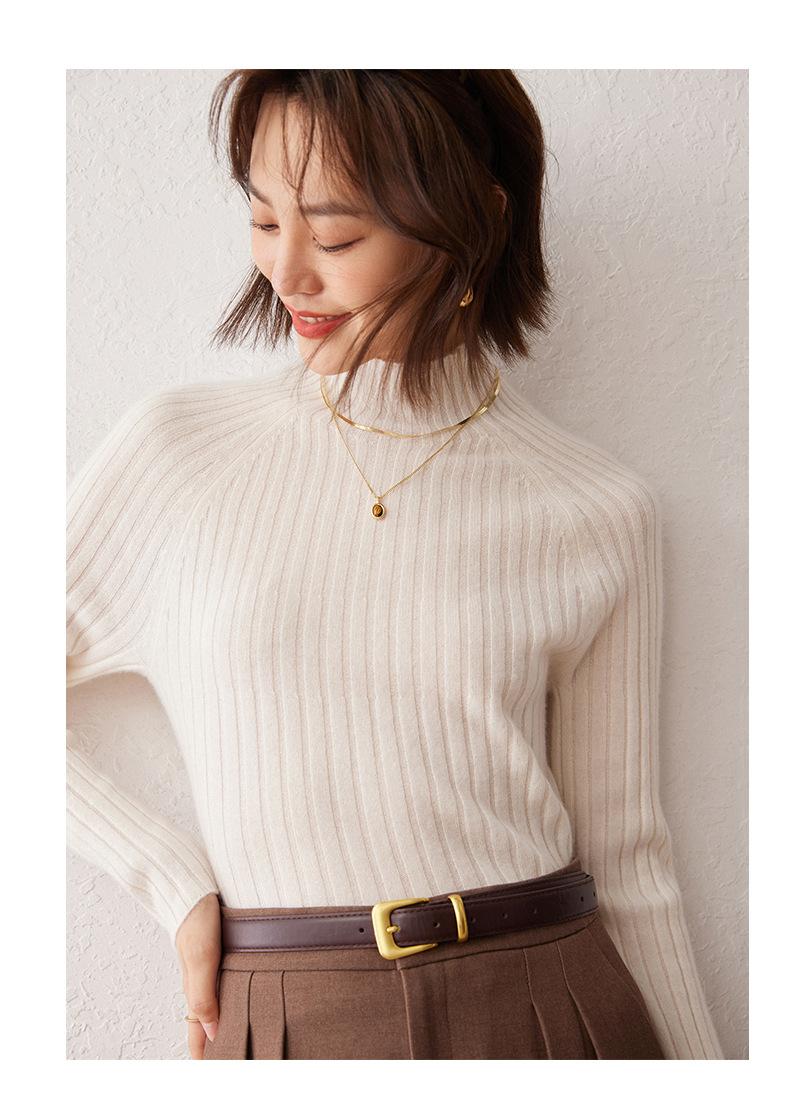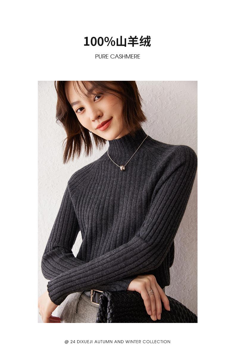 Suéter de cachemira 100% para mujer, jersey de cuello alto con dibujo de color liso, camisa interior de punto, corte ajustado, para otoño e invierno.