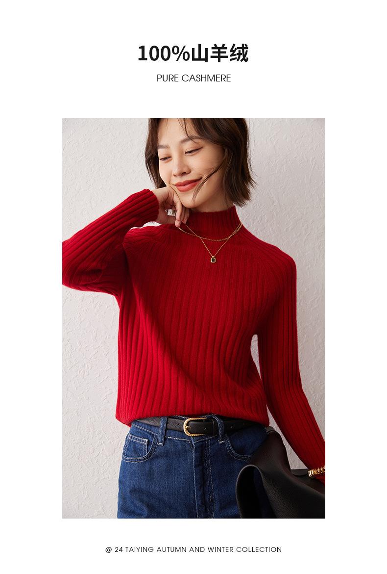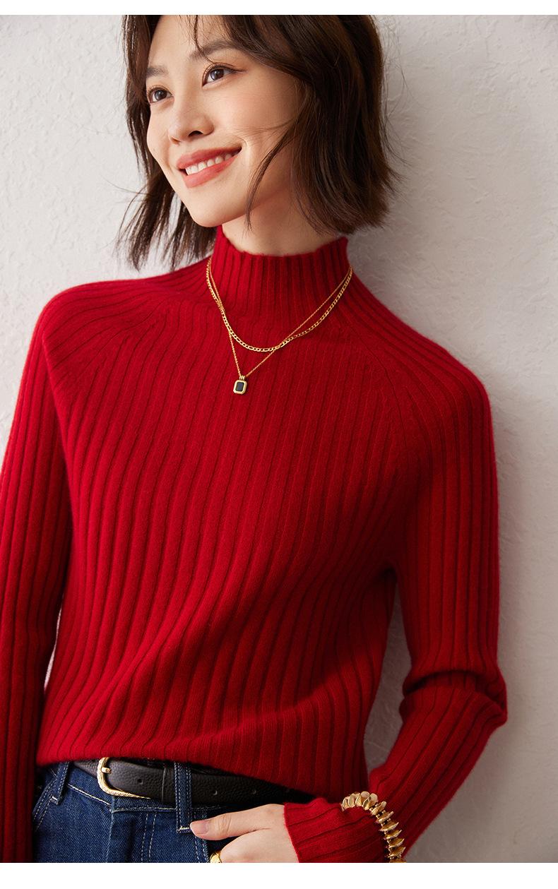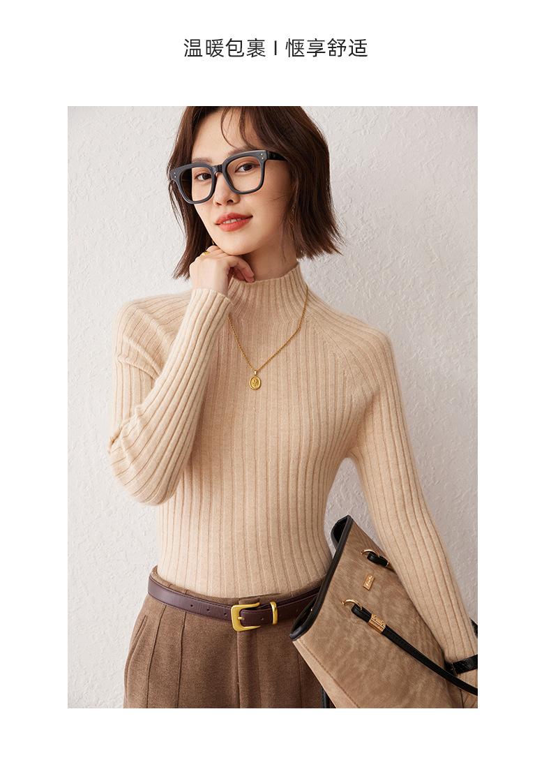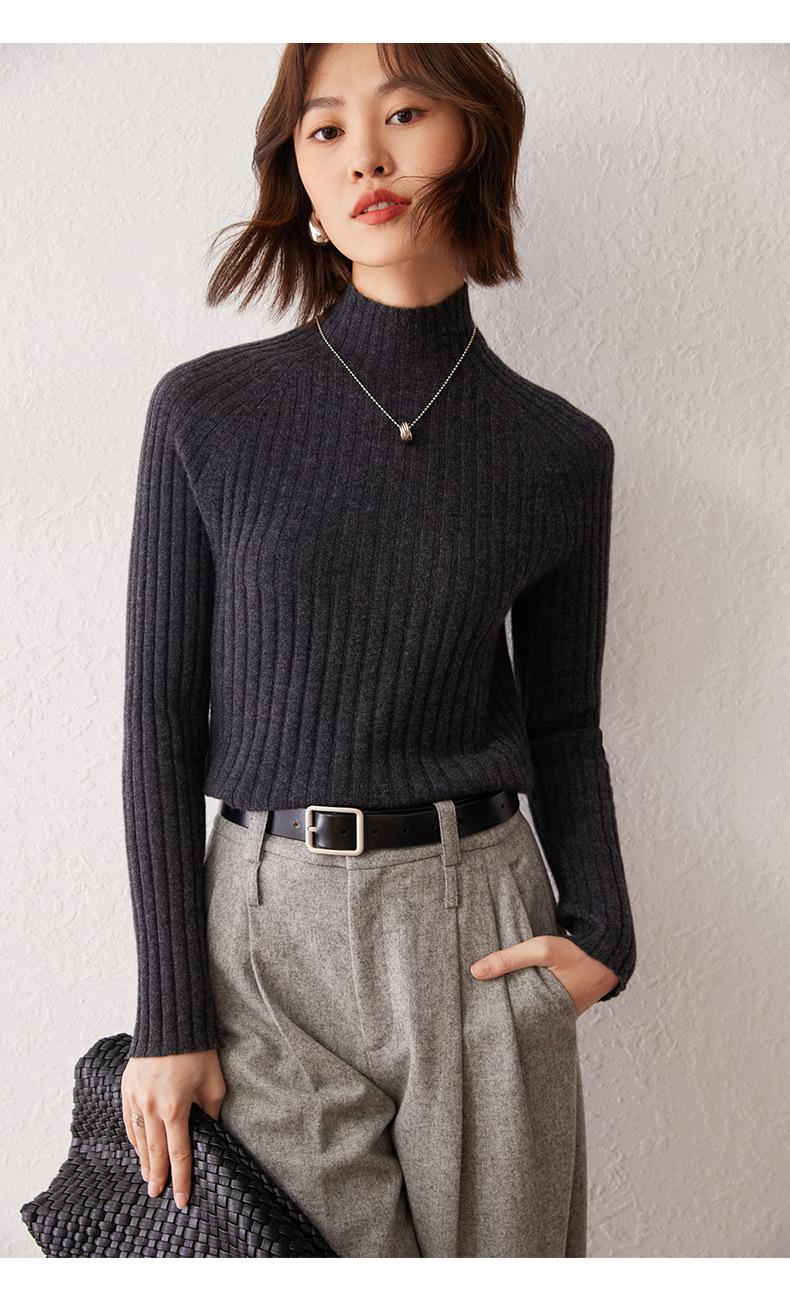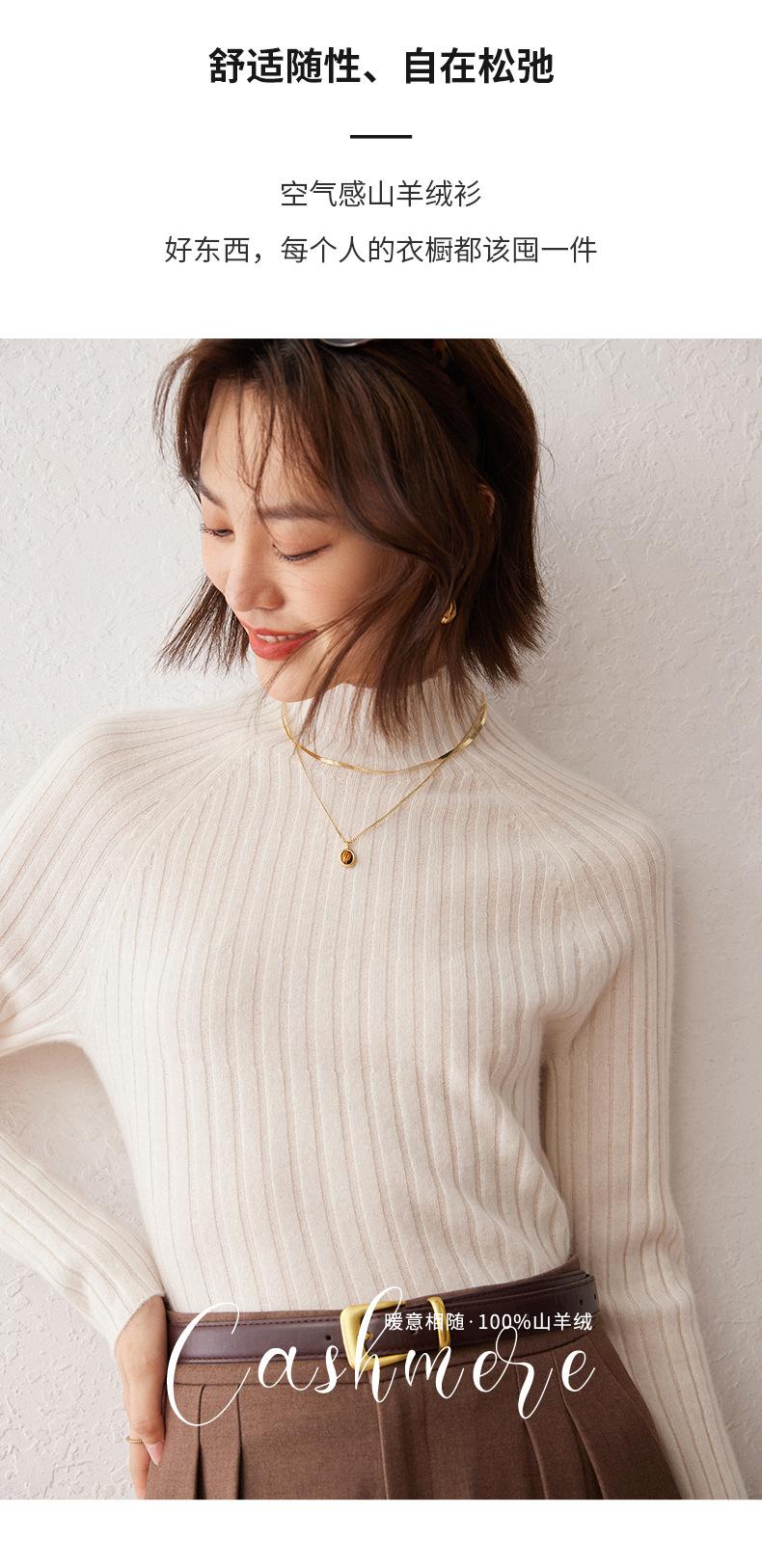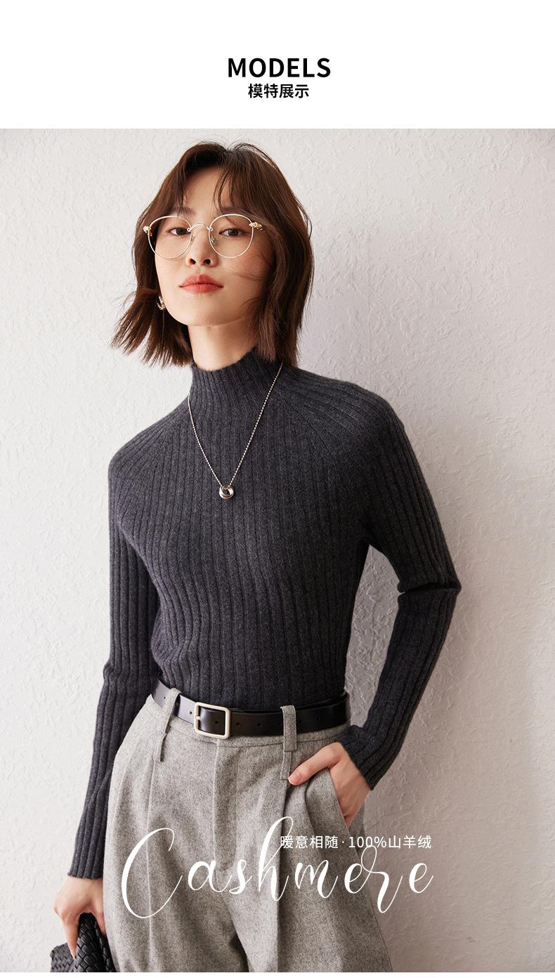 Suéter de cachemira 100% para mujer, jersey de cuello alto con dibujo de color liso, camisa interior de punto, corte ajustado, para otoño e invierno.