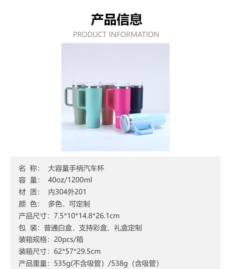 Vaso de hielo con asa de segunda generación de 40 oz transfronterizo, vaso de cerveza fría de acero inoxidable, vaso para automóvil de gran capacidad