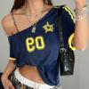 Camiseta de manga corta de algodón puro de peso pesado con estampado de estilo americano para mujer, camiseta holgada de verano de estilo coreano, top de media manga con hombros descubiertos para mujer, venta al por mayorGran precio:¥15.8 |