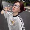 Camiseta de manga corta de algodón puro de estilo europeo y americano, holgada, para mujer, original, de marca de moda, con estampado de equipaje, de verano, de media manga.Gran precio:¥15.8 |