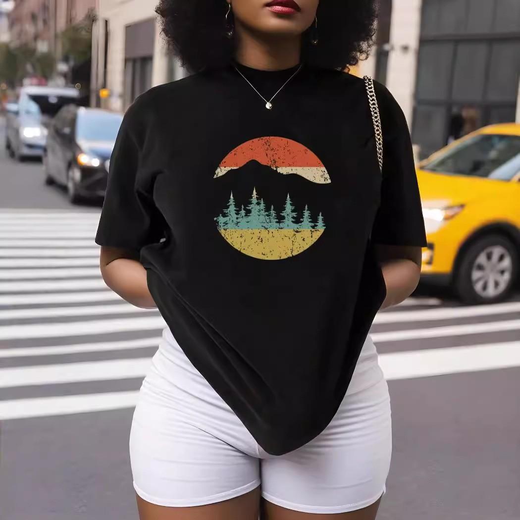 Camiseta informal de cuello redondo para mujer, de una pieza, con estampado 3D, versión grande, estilo estación independiente, envío directoGran precio:¥15.8 |