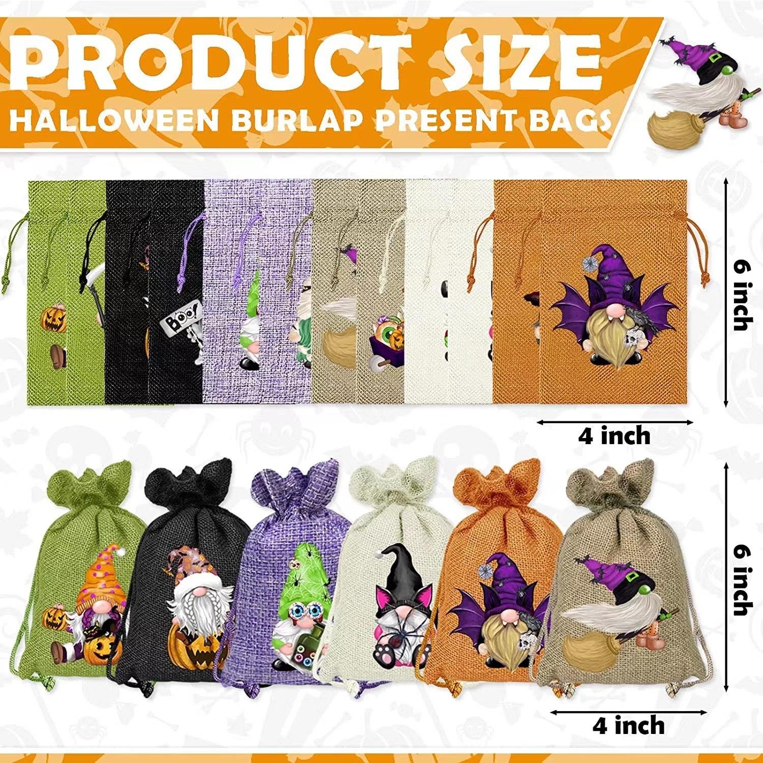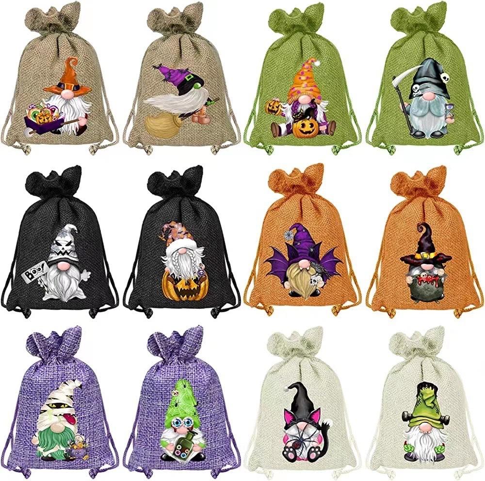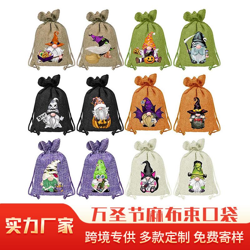 Set de Bolsillo de Lino con Cordón de Venta Caliente Transfronterizo para Halloween, Bolsa de Tela Decorativa para Almacenamiento de Dulces y Regalos para Fiesta Infantil