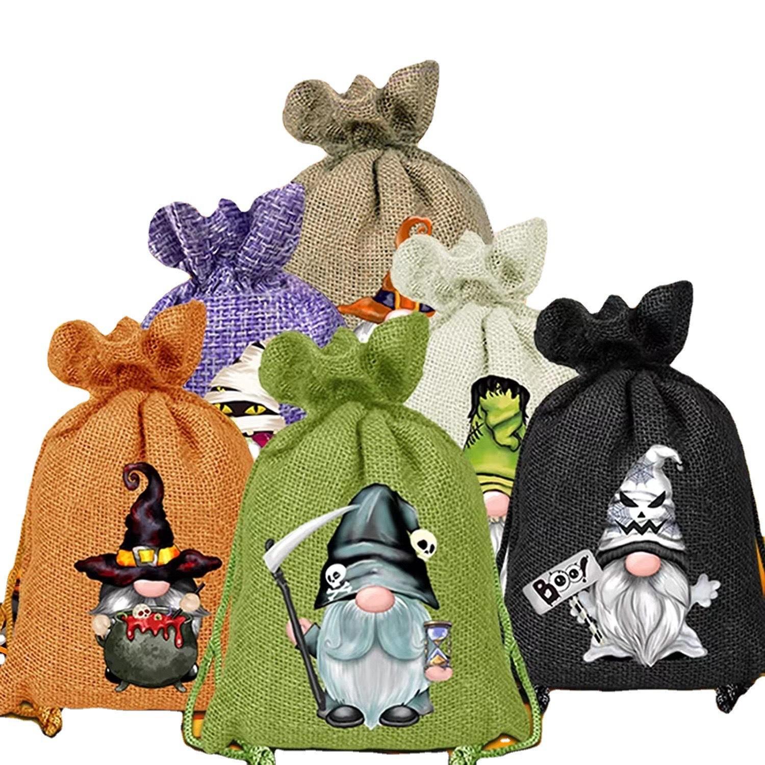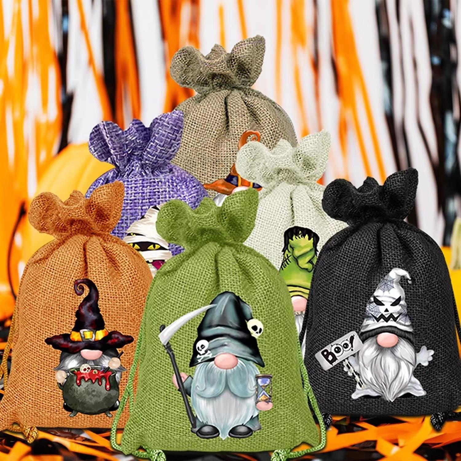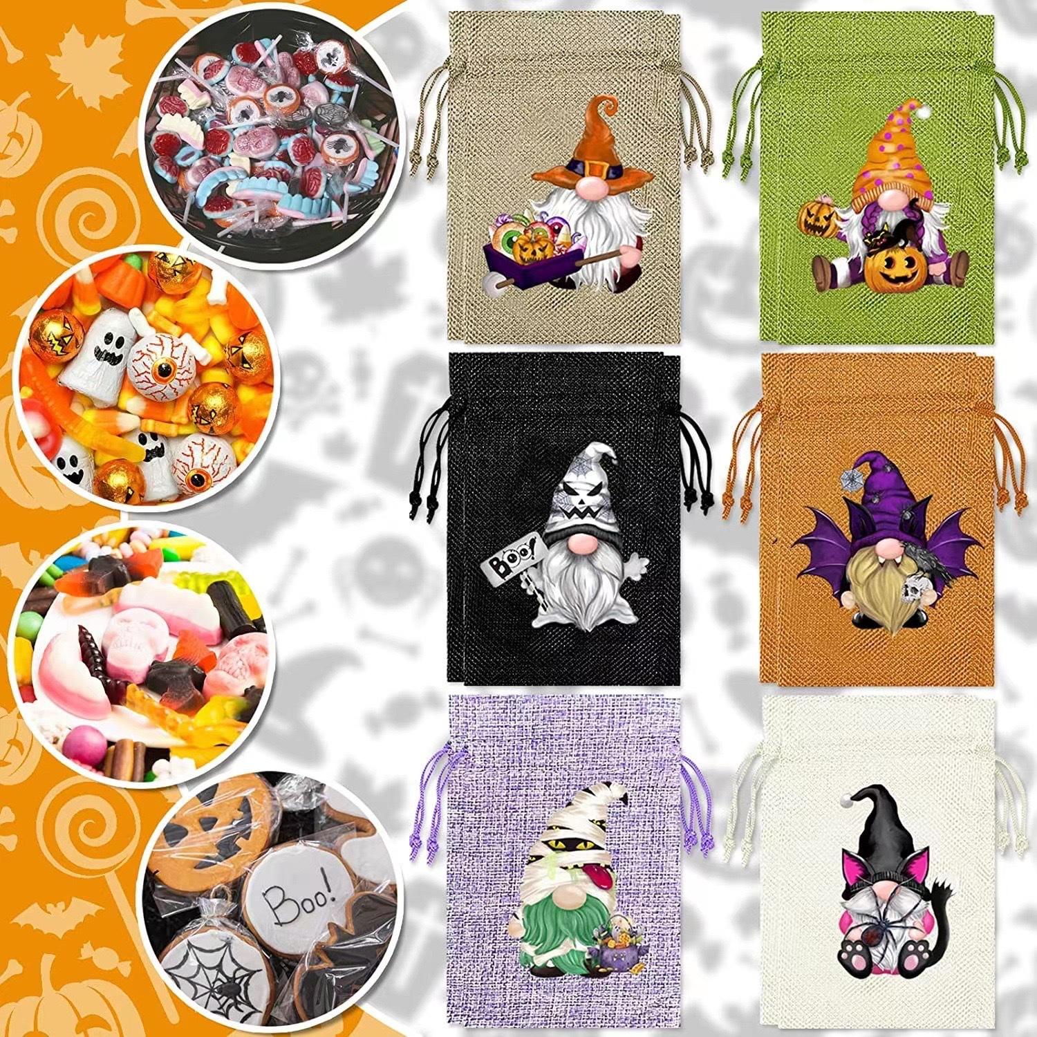 Set de Bolsillo de Lino con Cordón de Venta Caliente Transfronterizo para Halloween, Bolsa de Tela Decorativa para Almacenamiento de Dulces y Regalos para Fiesta Infantil