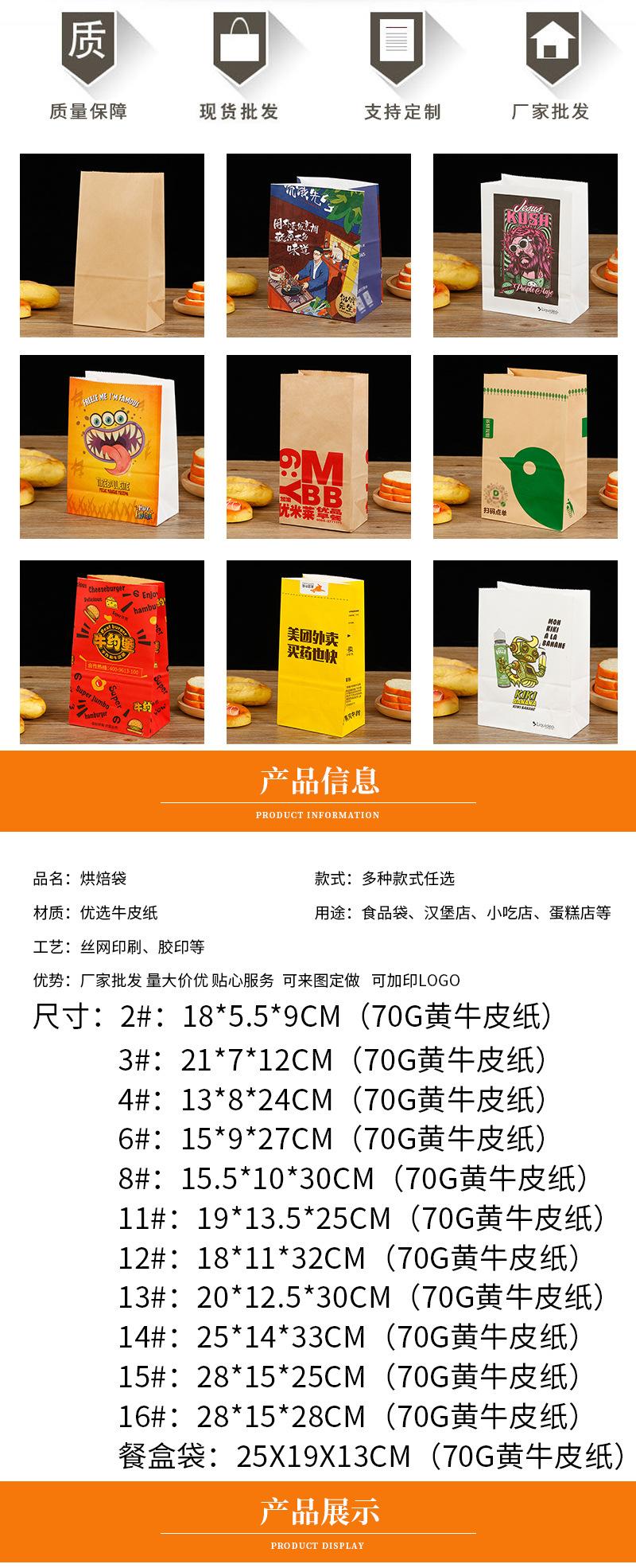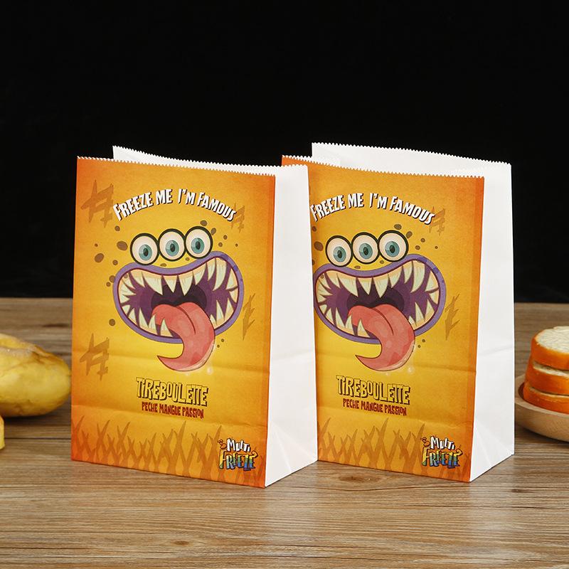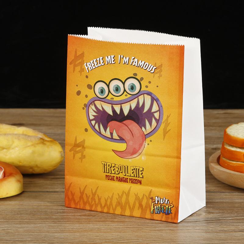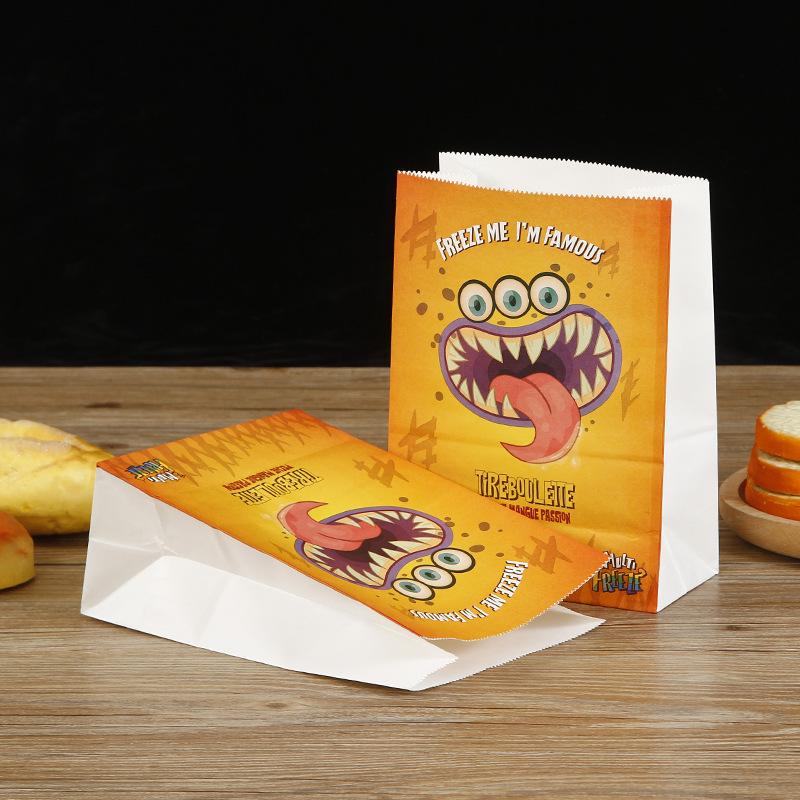 Bolsa de papel kraft para llevar, personalizada, para pasteles y postres, con fondo cuadrado, con impresión personalizada
