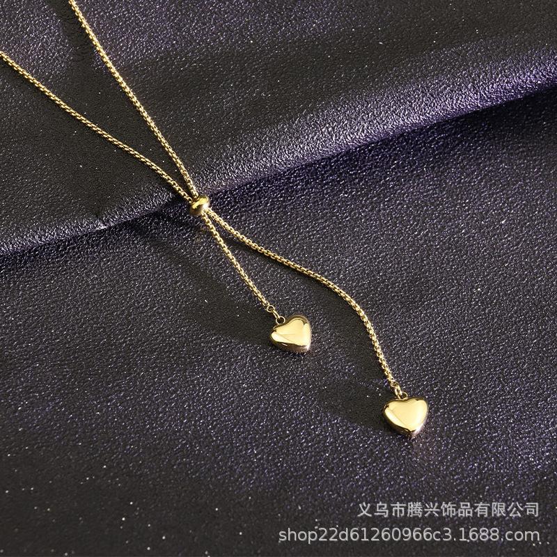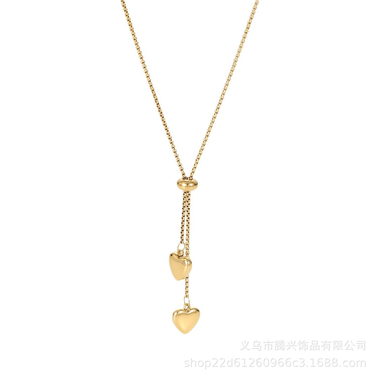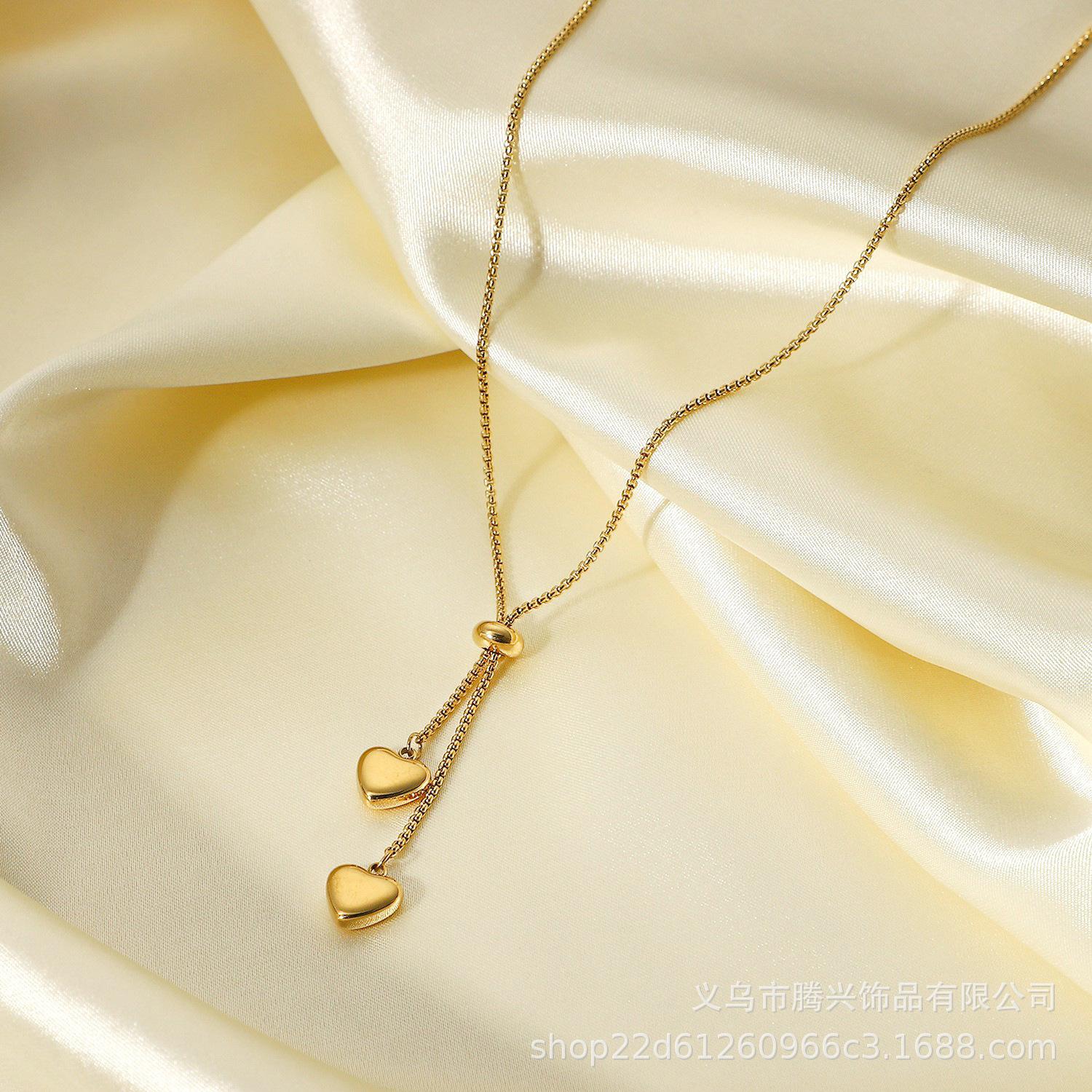 Collar Europeo y Americano Transfronterizo de Cuerda con Forma de Insy de Acero de Titanio 18K Collar con Colgante de Dos Corazones Collar de Moda para Mujer