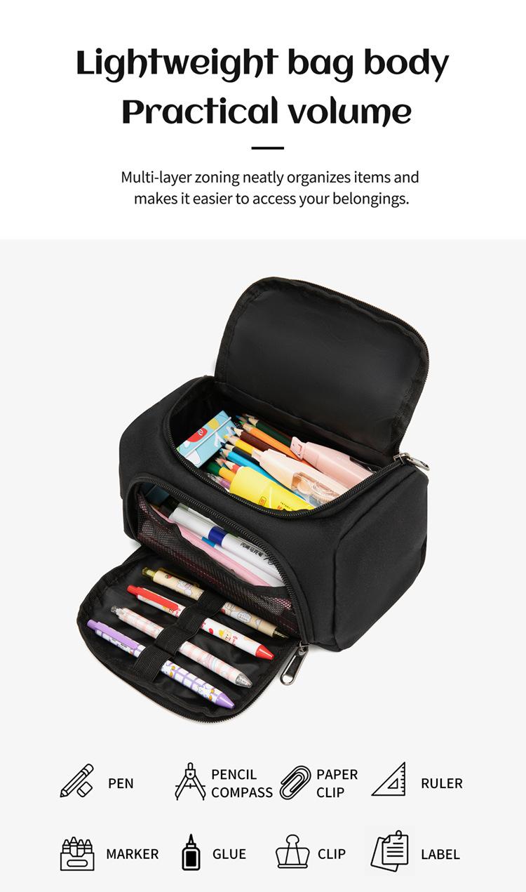 Estuche para lápices para estudiantes, multifunción, de gran capacidad, impermeable, resistente al desgaste, de tela Oxford, sencillo, para almacenamiento