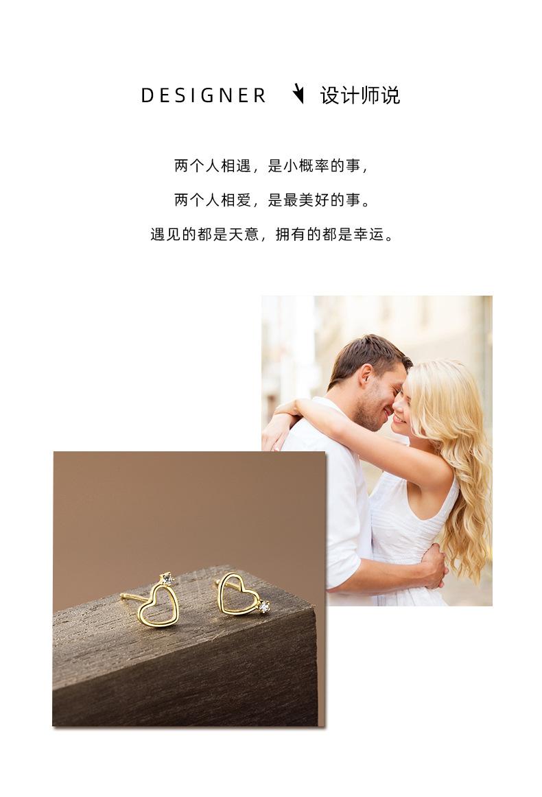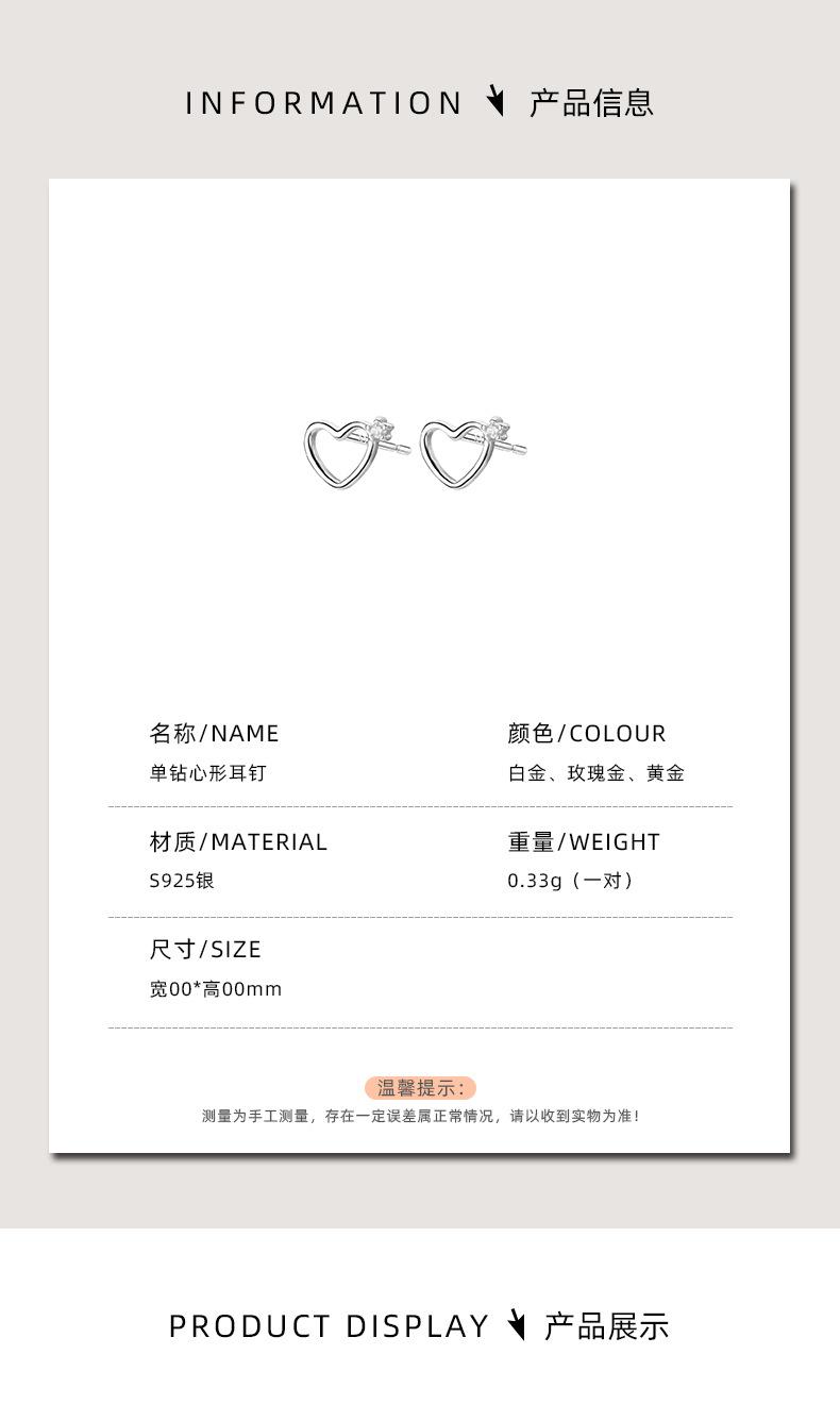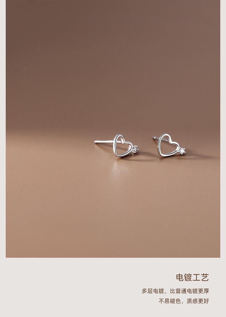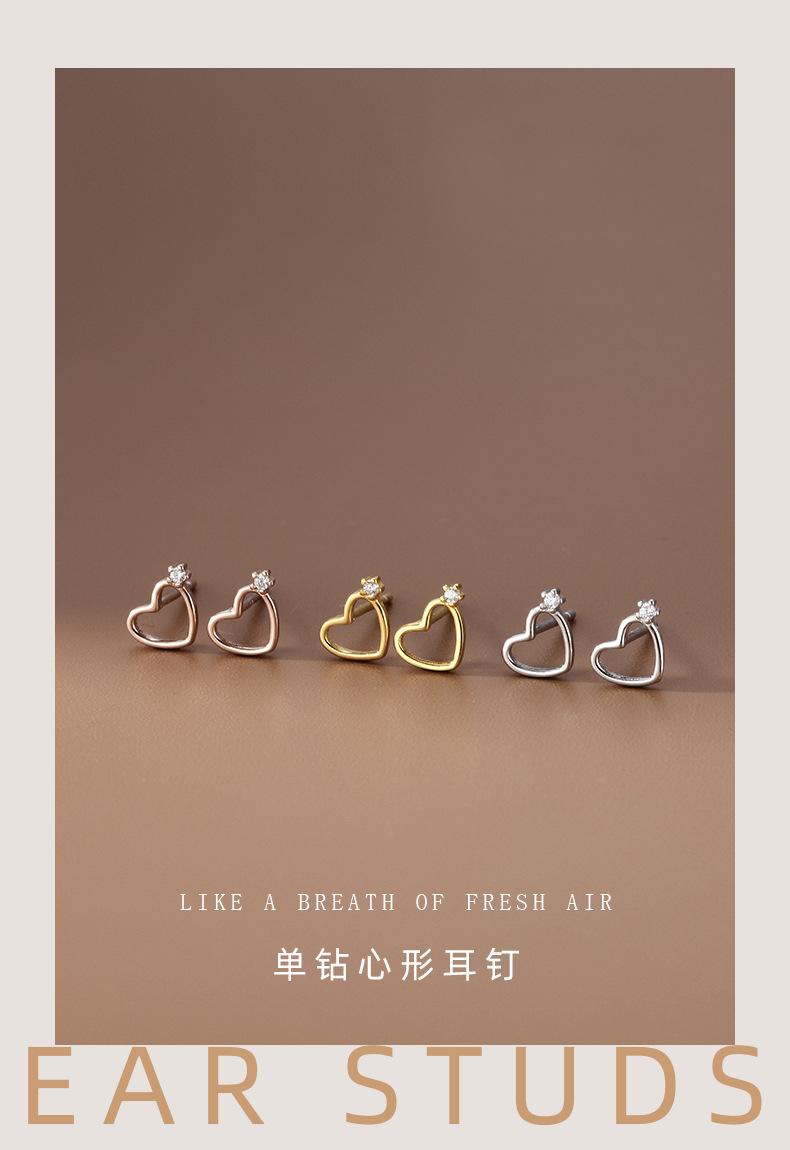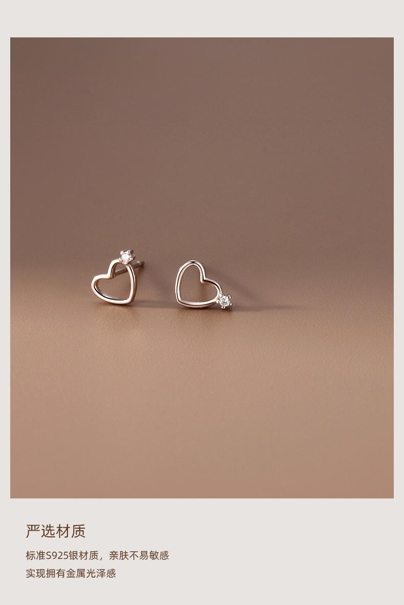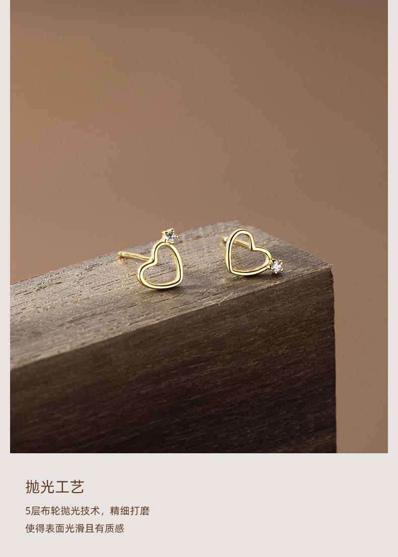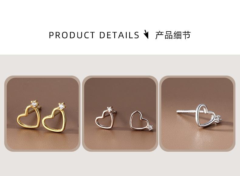 Pendientes de plata de ley S925 con forma de corazón para mujer, estilo ins, dorados, huecos, pequeños diamantes de amor, joyería para uñas, venta al por mayor