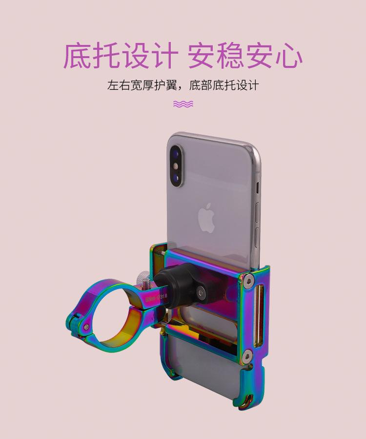 Características: Marco de aleación de aluminio, chapado colorido para resaltar la personalidad, alta compatibilidad independientemente del modelo de teléfono móvil, ¡se puede usar en bicicletas, vehículos eléctricos, etc.!