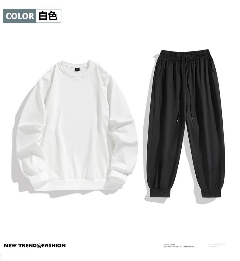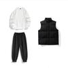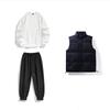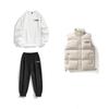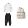 White sweatshirt suit + off-white vest, White sweatshirt suit + dark blue vest, White sweatshirt suit + black ...