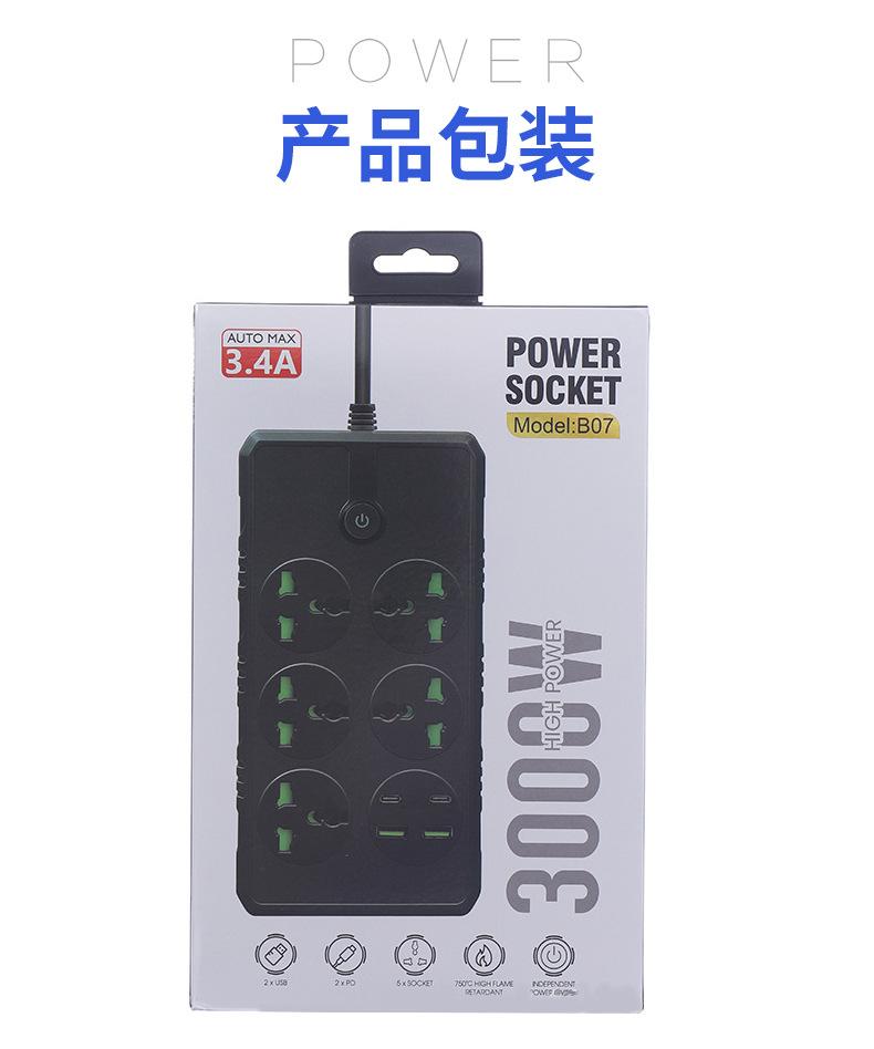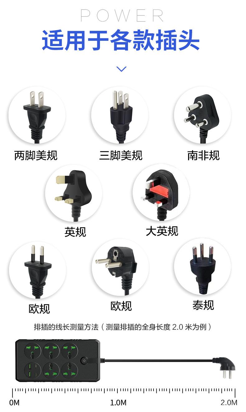 Amazon enchufe estándar británico doméstico 13A tablero de enchufe sudafricano poroso enchufe USB con línea Tailandia tablero de enchufe estándar europeo