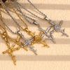 Pulsera de acero inoxidable chapada en oro con hebilla de resorte de ojo de diablo y cadena de corte de doble capa transfronteriza europea y americana para mujer