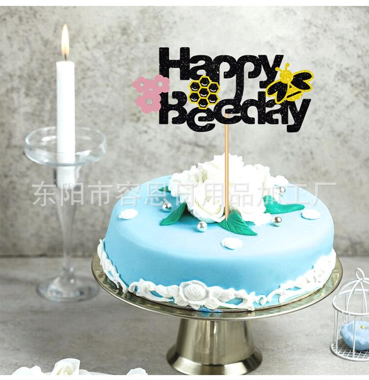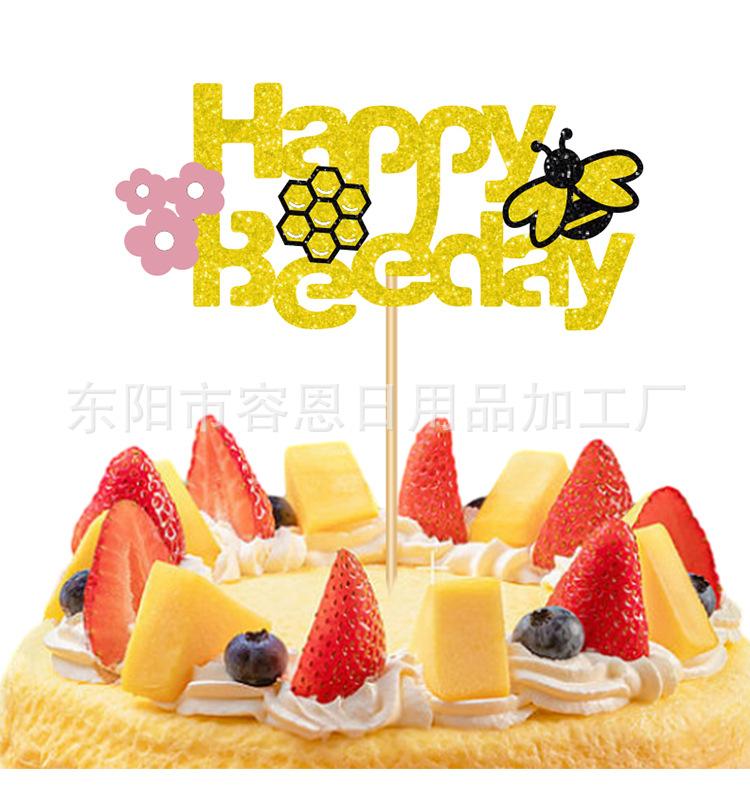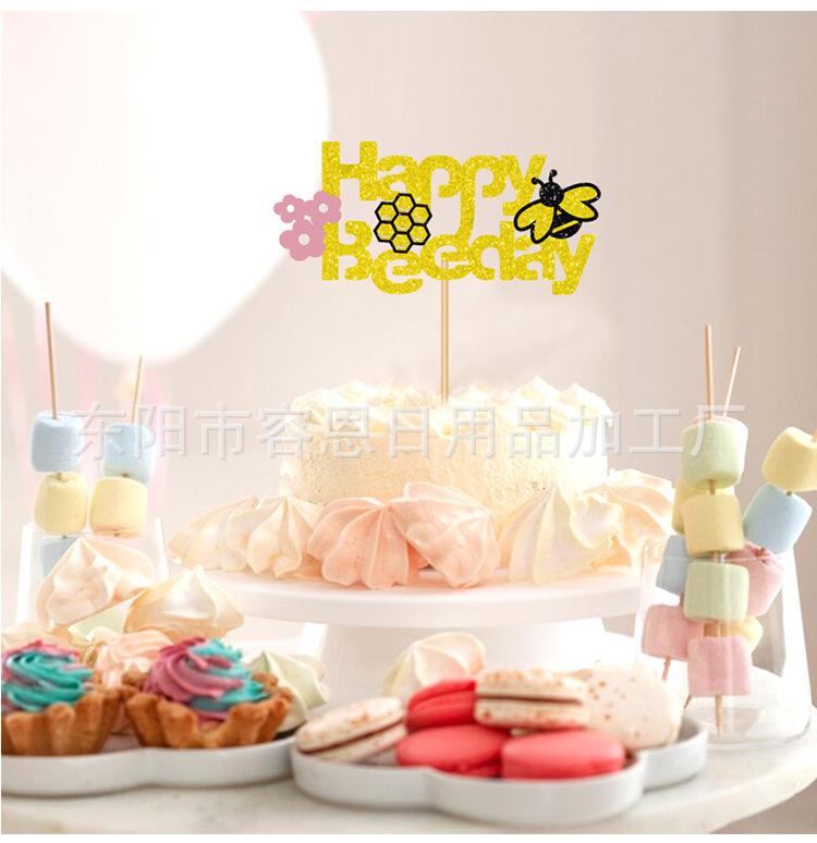 Decoración para Pastel de Cumpleaños Transfronterizo Creativa Abejas Bandera Decoración para Pastel para Hornear Arreglo de Ambiente Tarjeta Disfraz