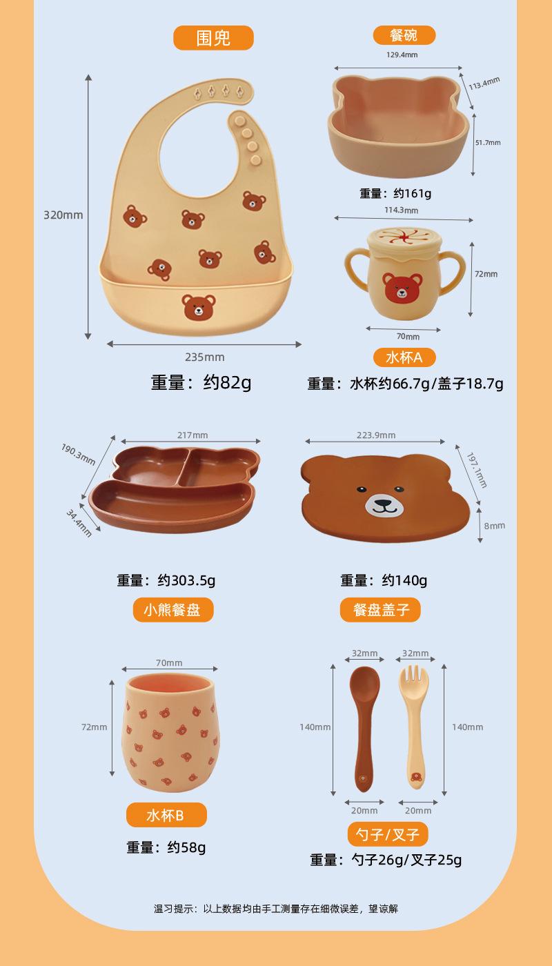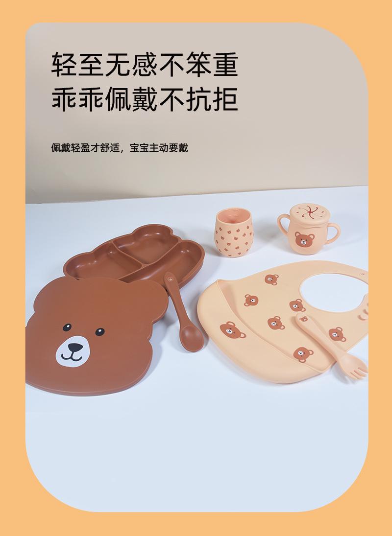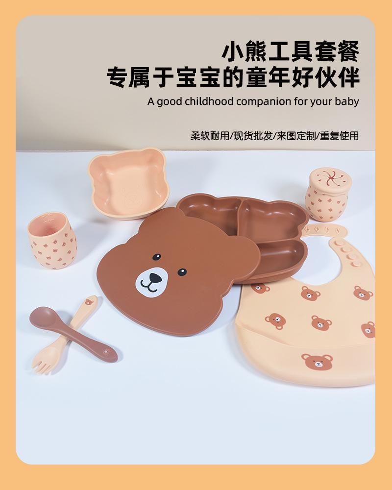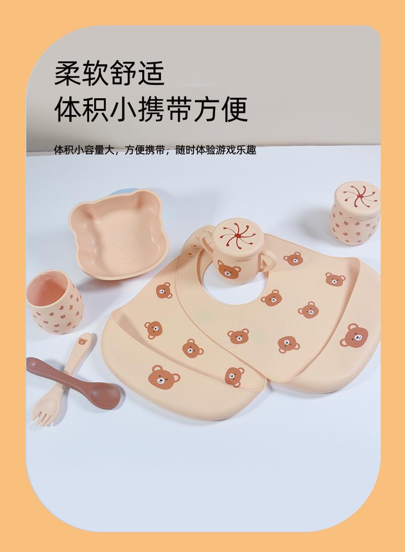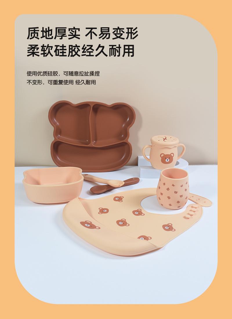 Juego de vajilla de silicona transfronteriza Juego completo Plato de cena de silicona para niños Babero para bebé Plato de cena para bebé Alimento complementario Productos maternoinfantiles