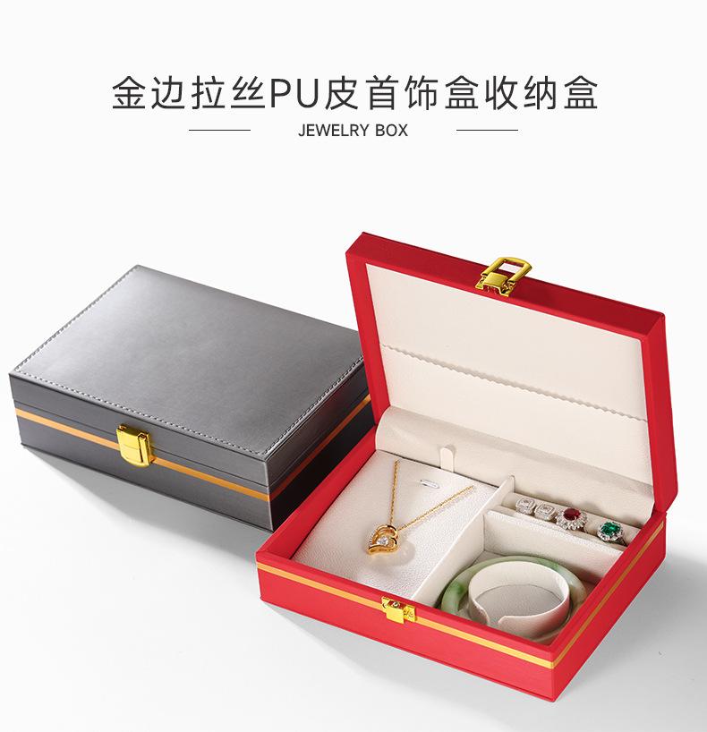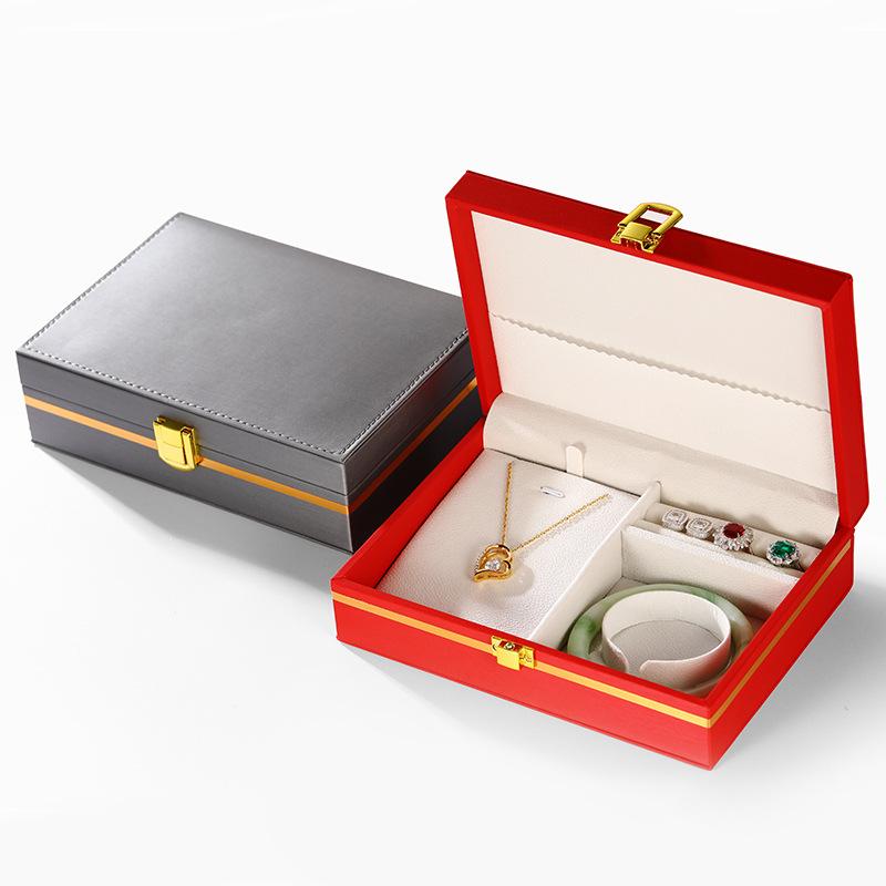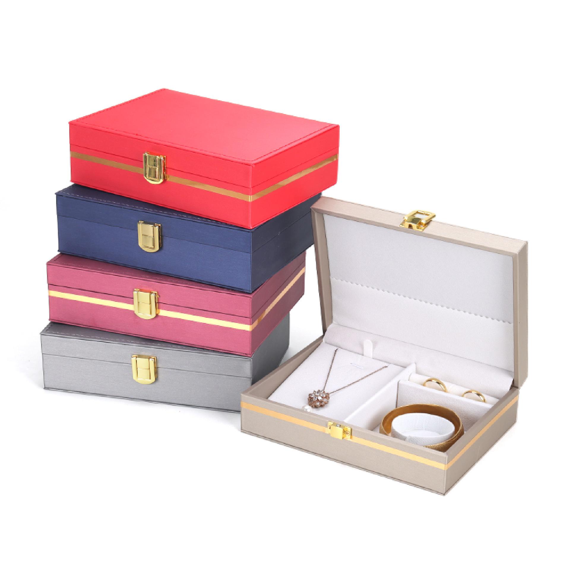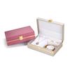 Caja de set de dote de boda hecha a medida, caja de joyería de tres oros con piel de encaje, anillo, pulsera, caja de regalo de joyería