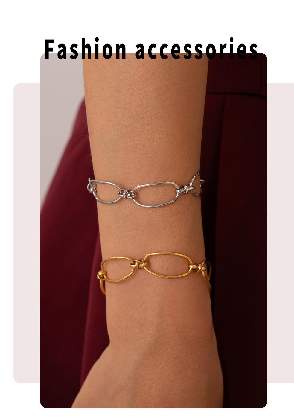 Pulsera coreana estilo ins retro geométrica con costuras de cadena para mujer acero de titanio chapado en oro real de 18k moda joyería comodín al por mayor
