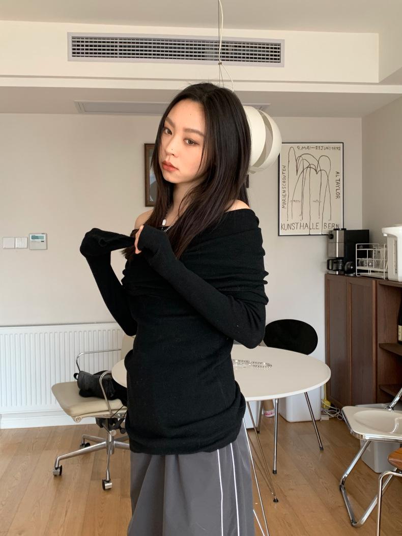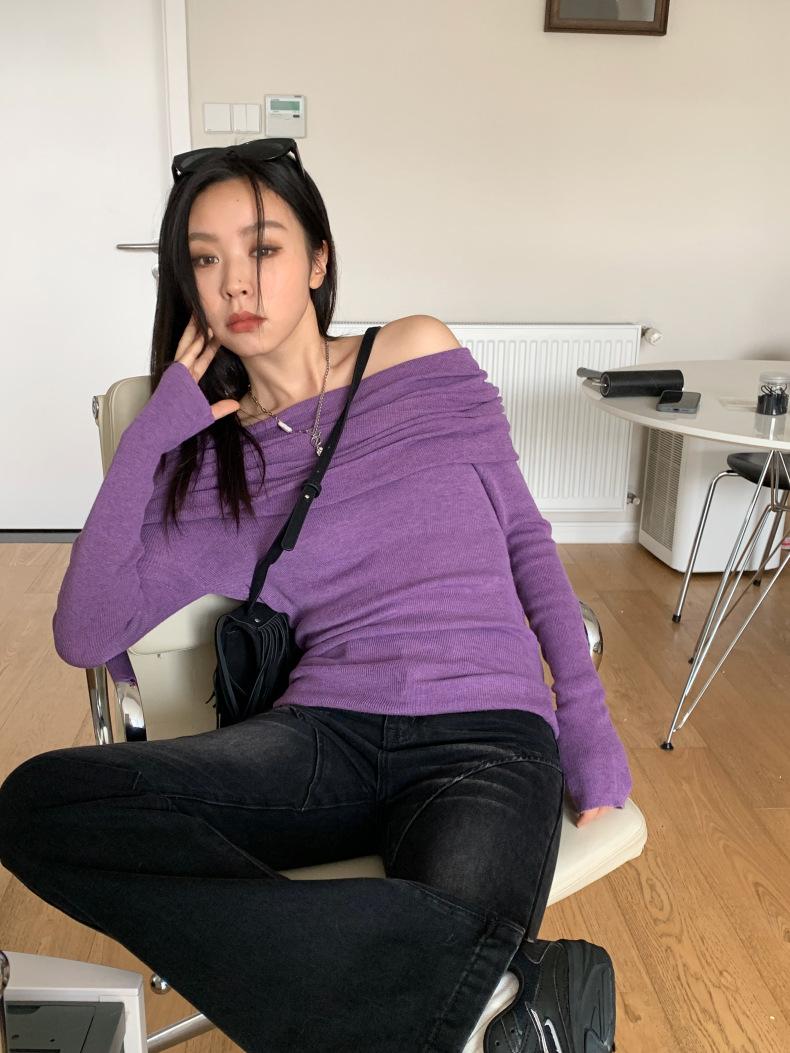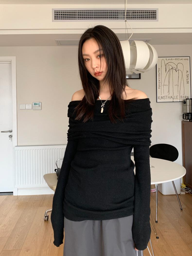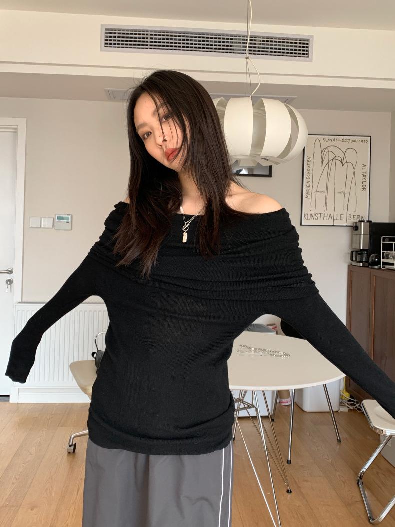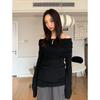 Dorothy Primavera Nuevo Sexy Fuera del Hombro Ajustado Color Sólido Cómodo Manga Larga Suéter Fuera del Hombro Top para Mujer