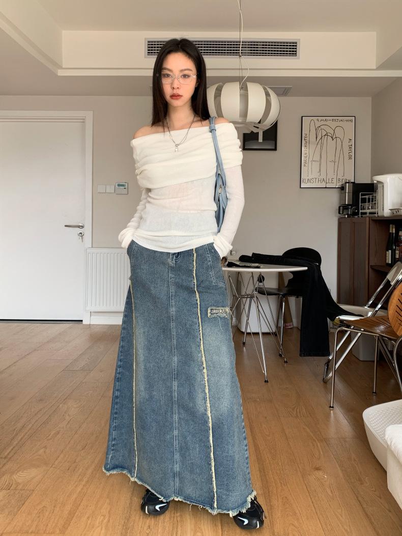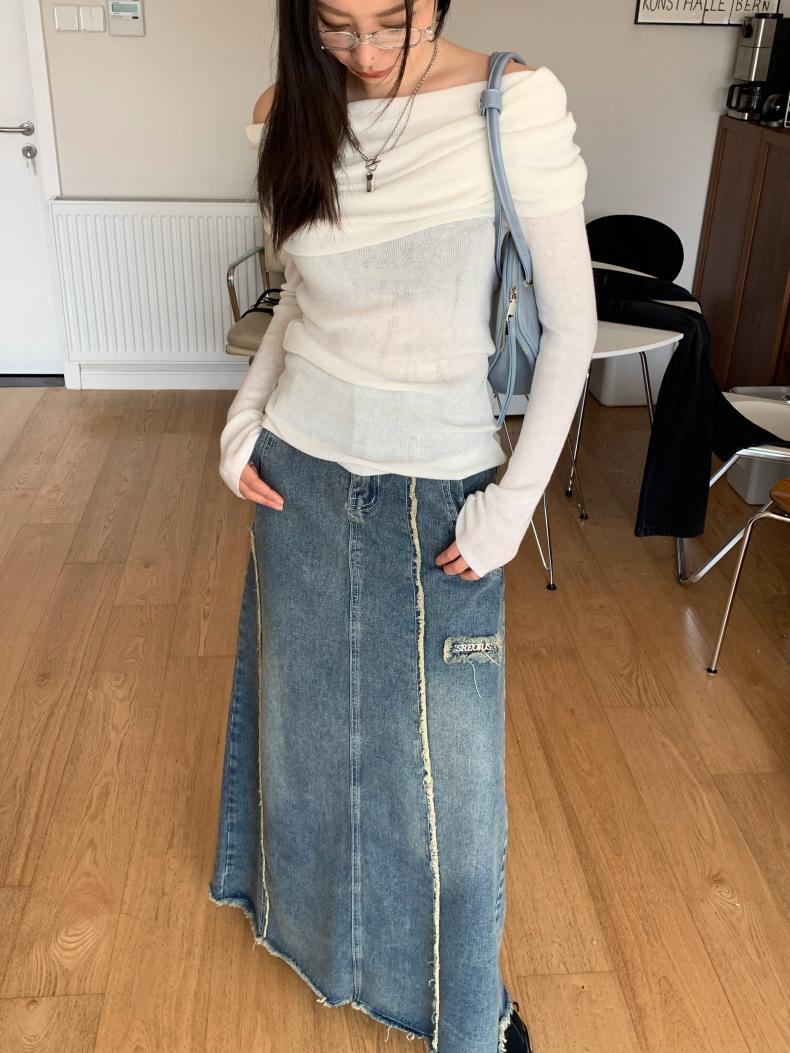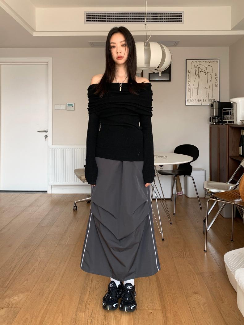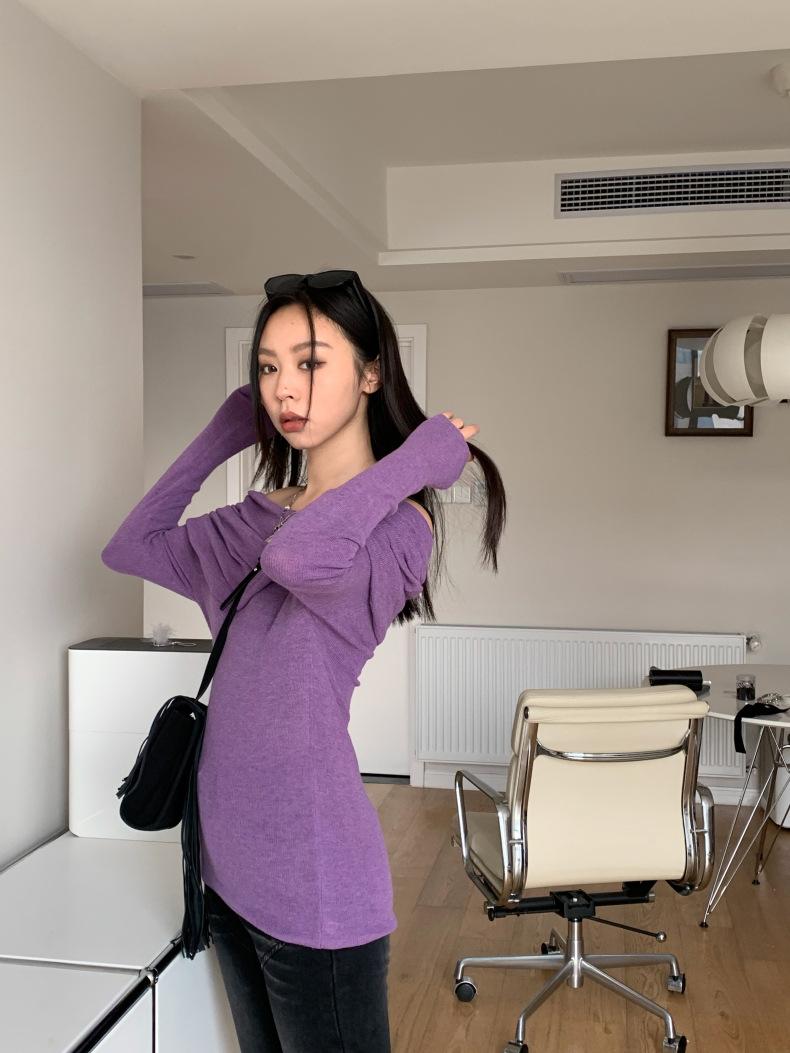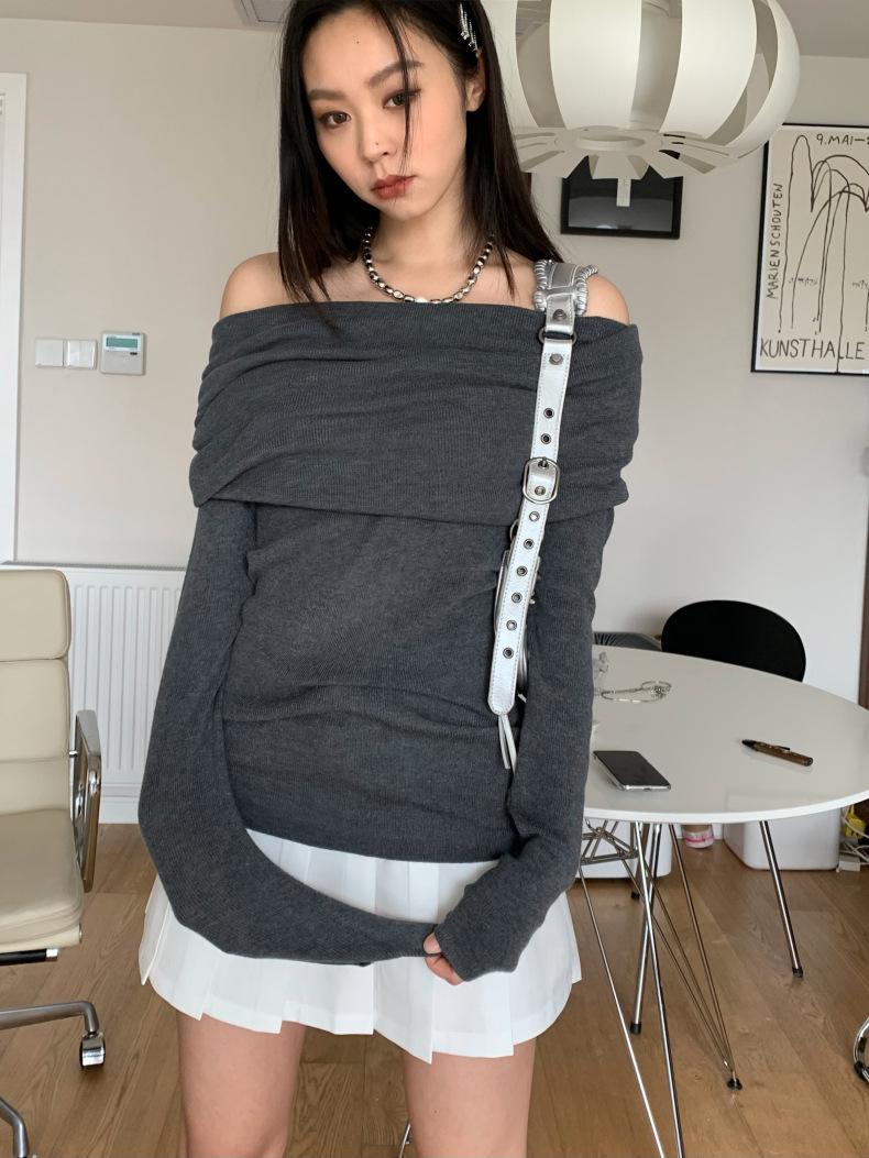 Dorothy Primavera Nuevo Sexy Fuera del Hombro Ajustado Color Sólido Cómodo Manga Larga Suéter Fuera del Hombro Top para Mujer