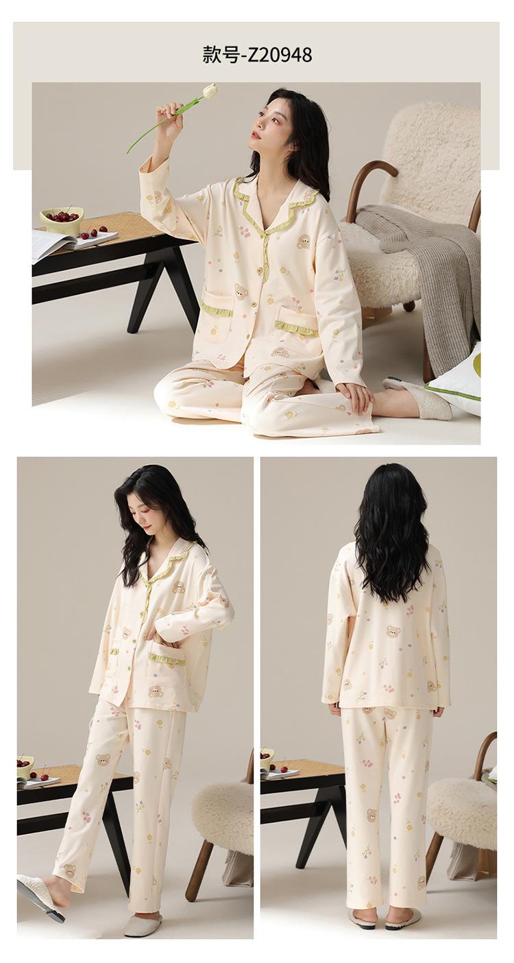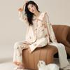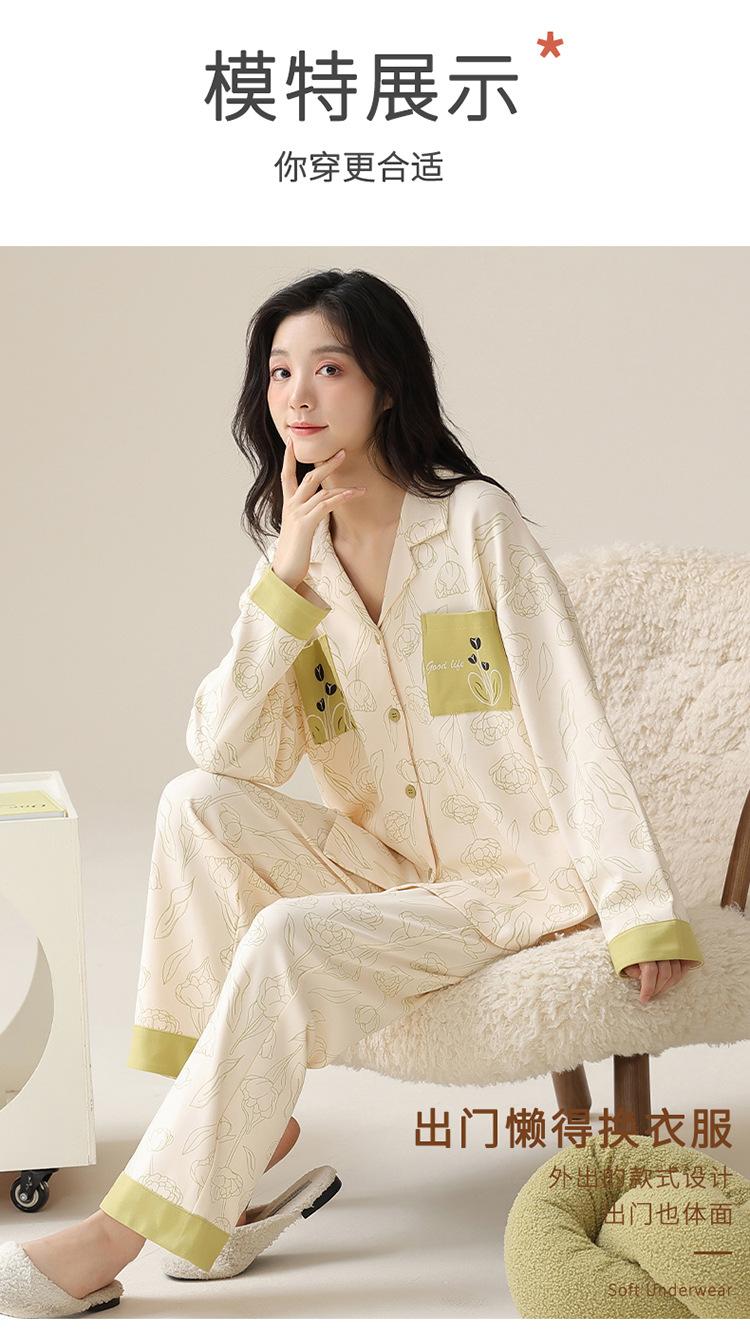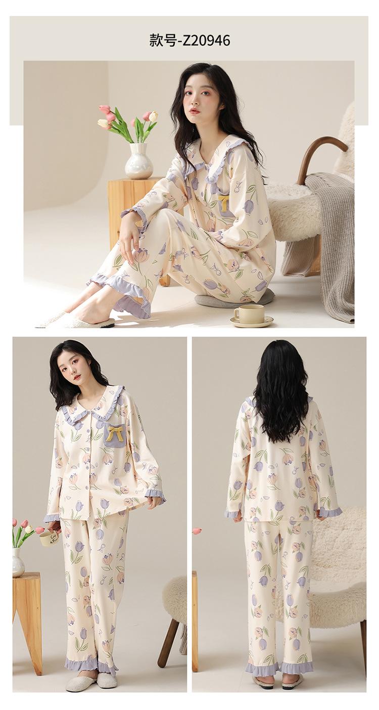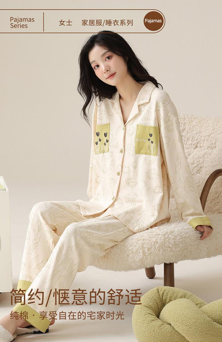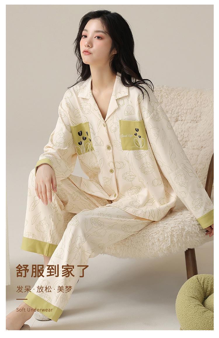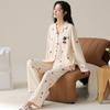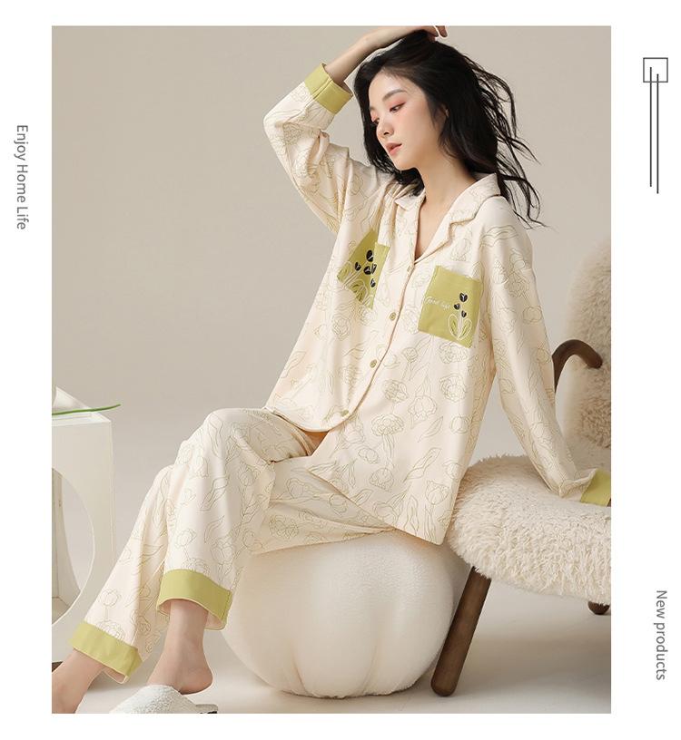 40 pijamas de algodón de doble cara para mujer, traje de otoño de manga larga con almohadilla en el pecho, 100% algodón, ropa de casa para mujer, otoño e invierno