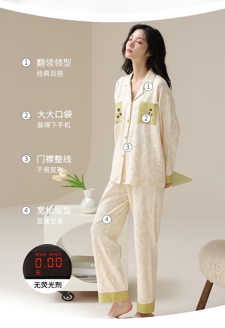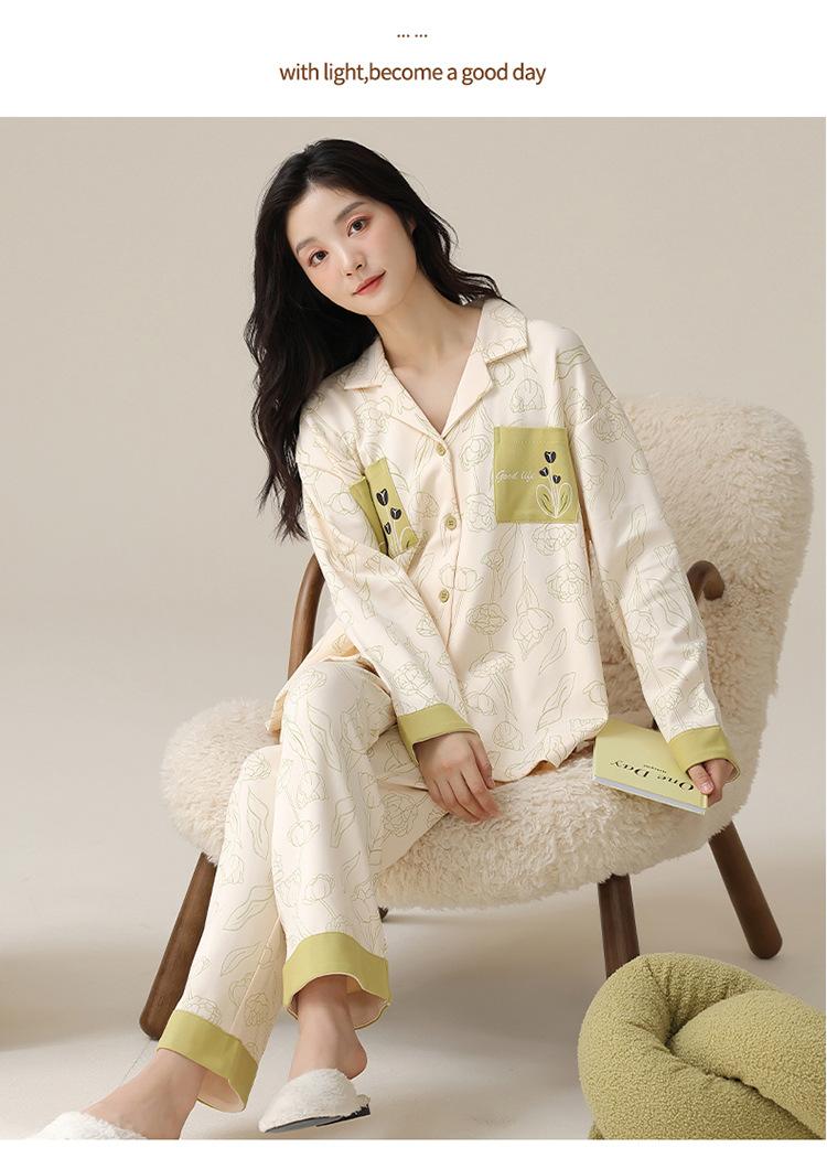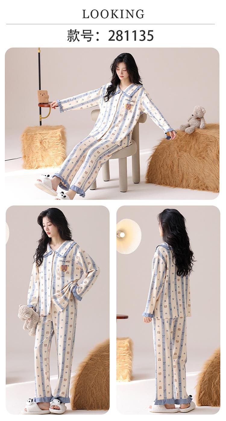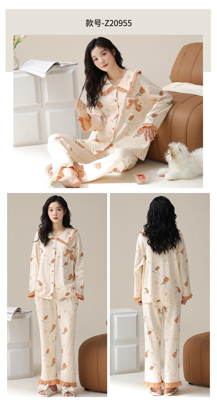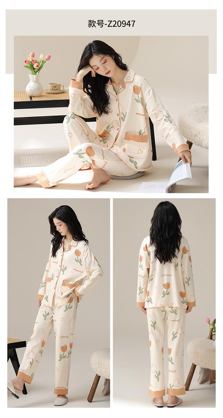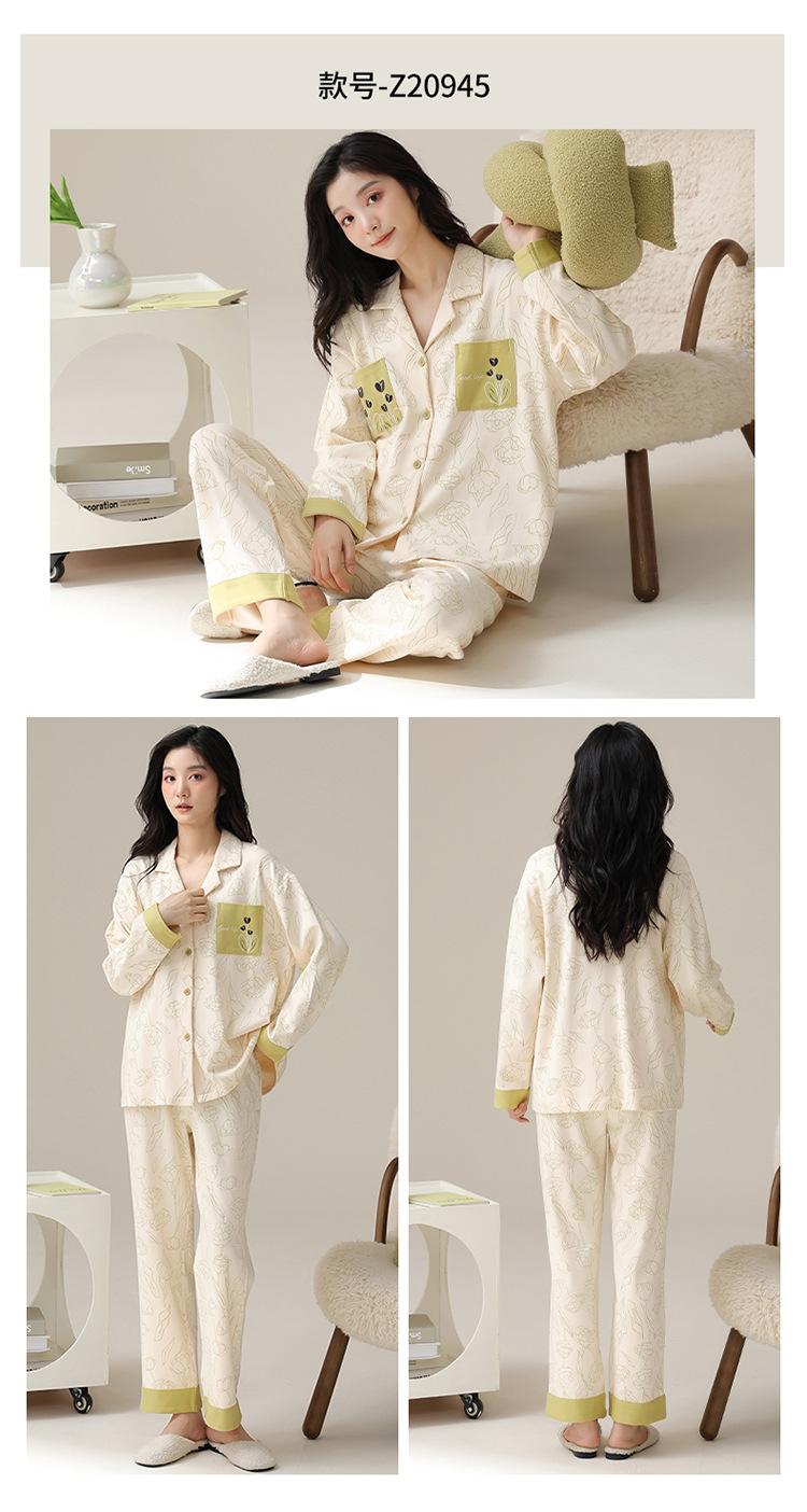 40 pijamas de algodón de doble cara para mujer, traje de otoño de manga larga con almohadilla en el pecho, 100% algodón, ropa de casa para mujer, otoño e invierno
