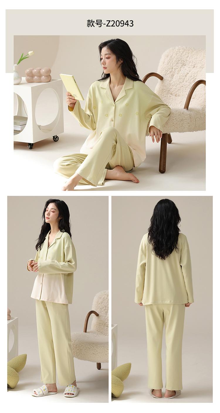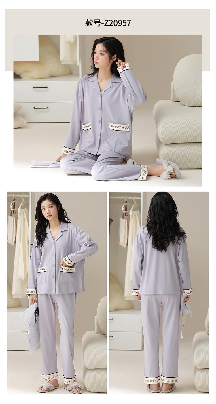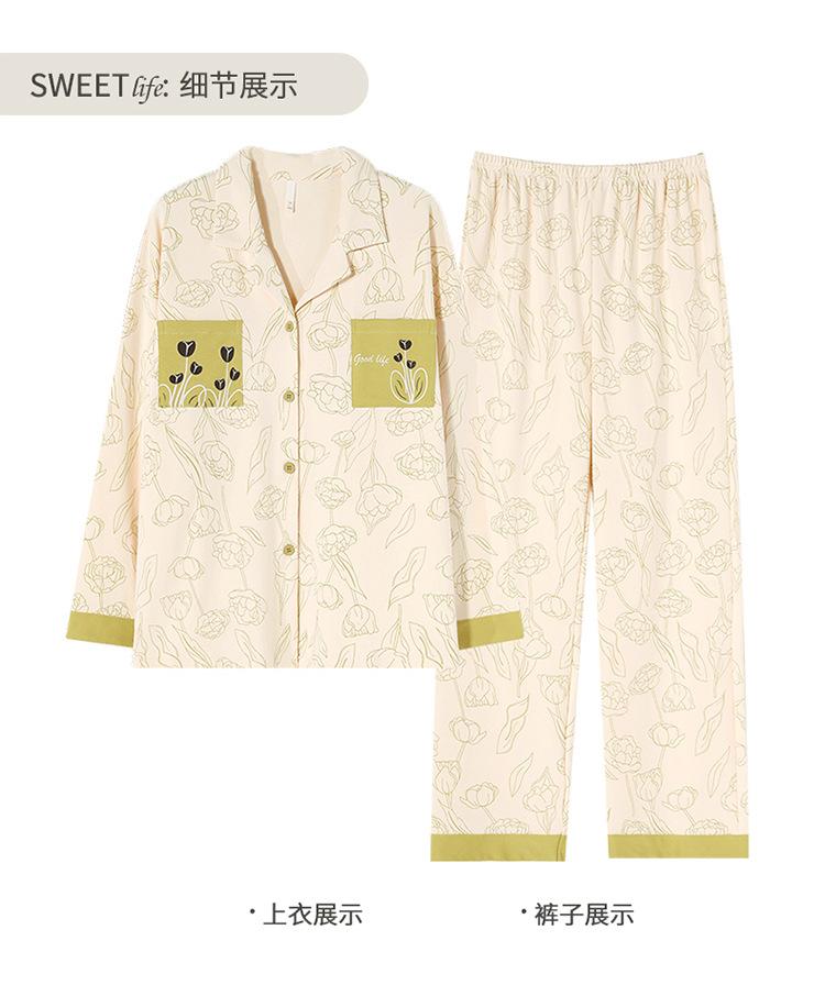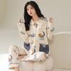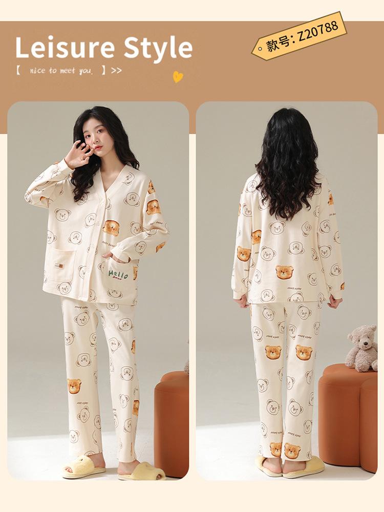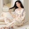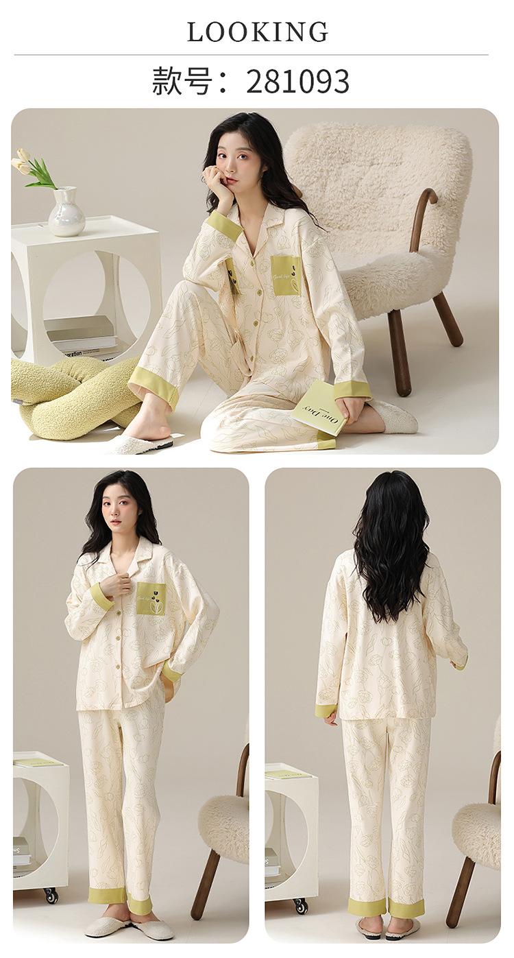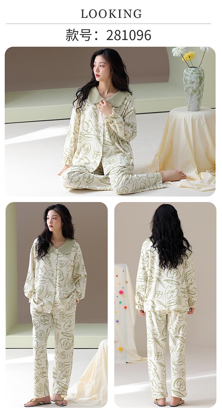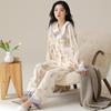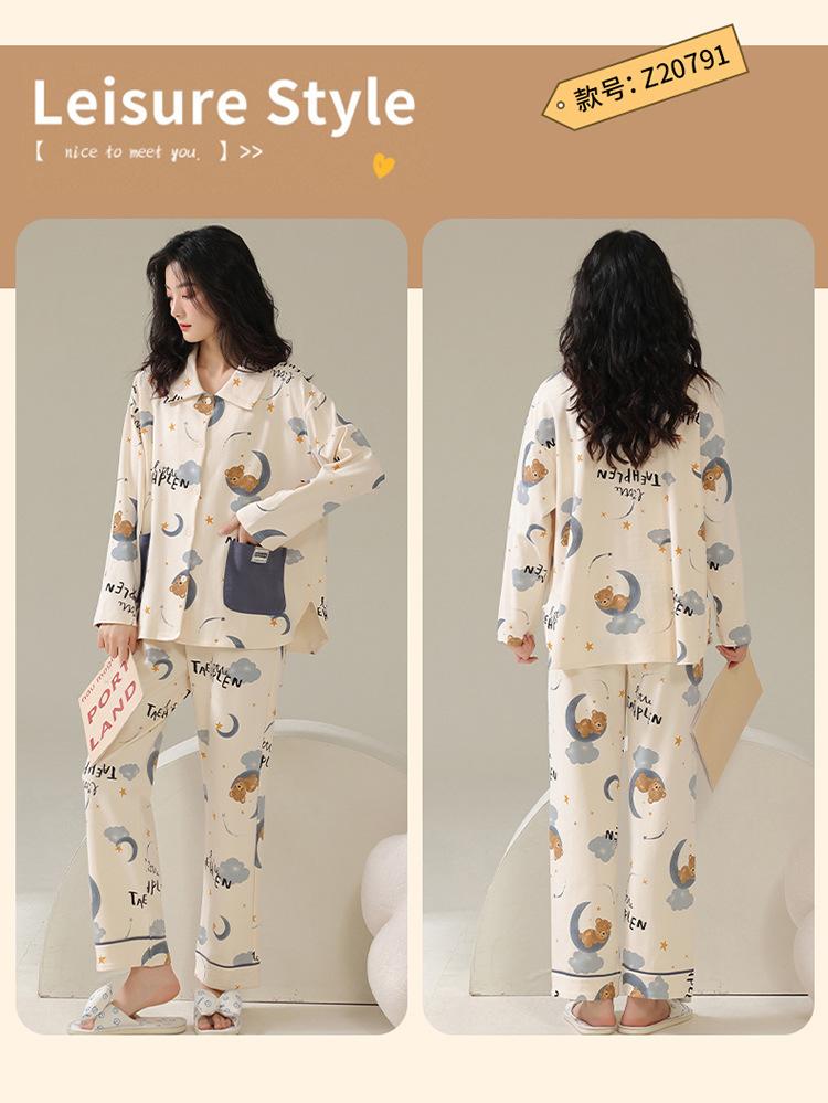 40 pijamas de algodón de doble cara para mujer, traje de otoño de manga larga con almohadilla en el pecho, 100% algodón, ropa de casa para mujer, otoño e invierno