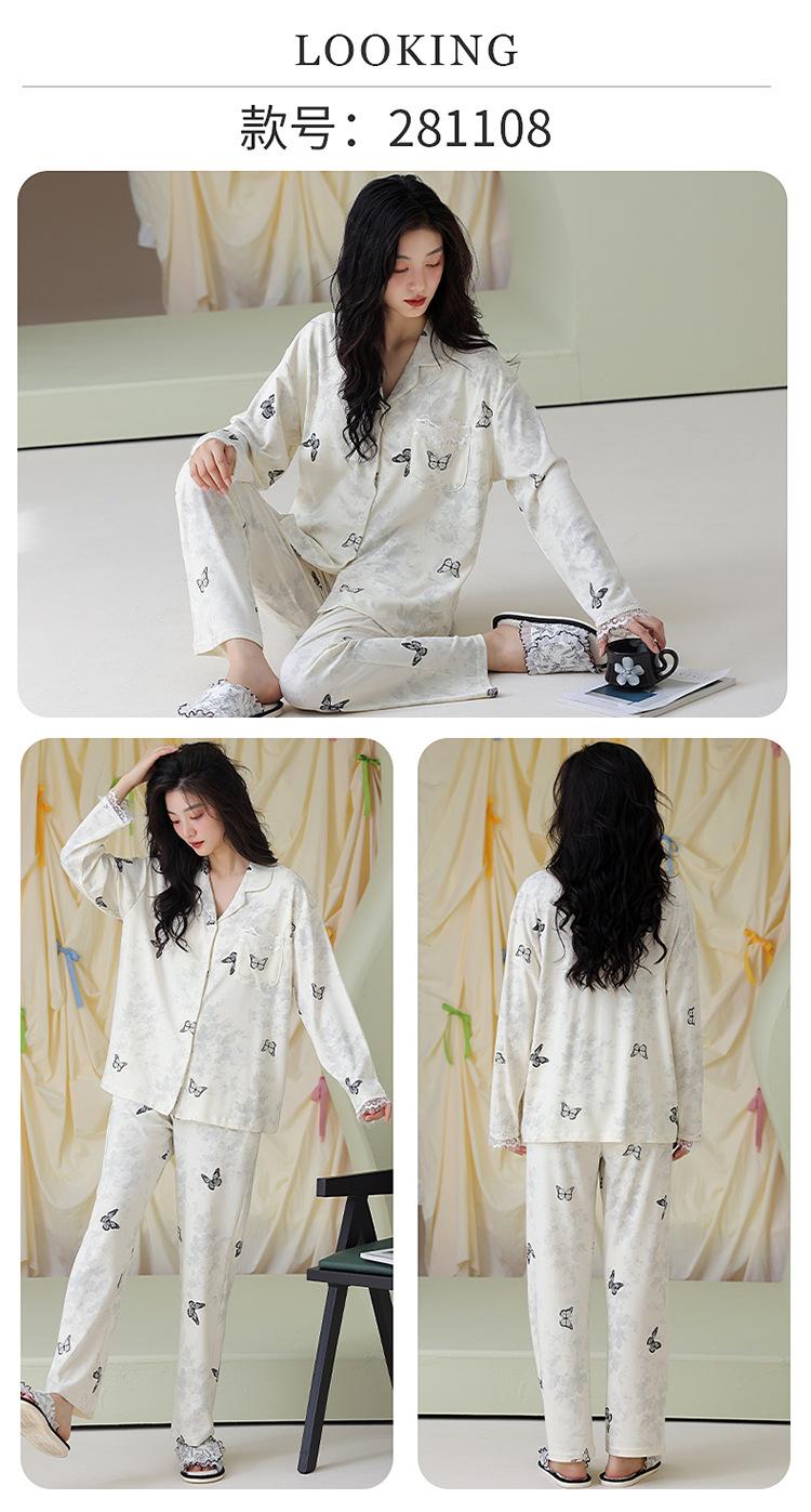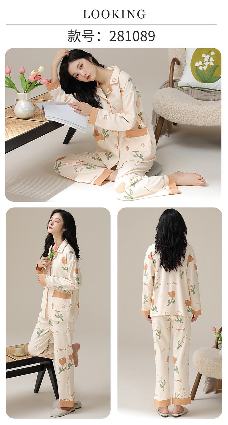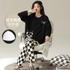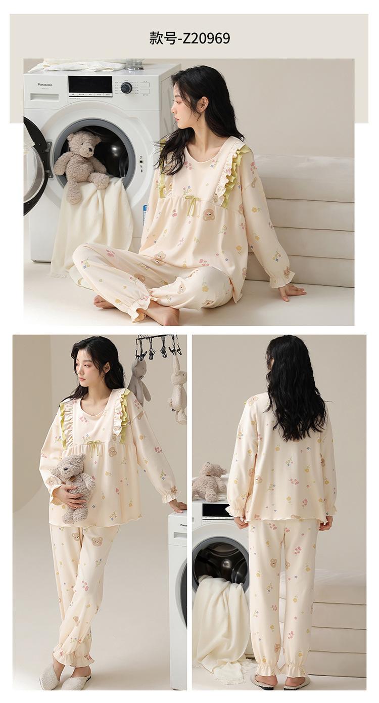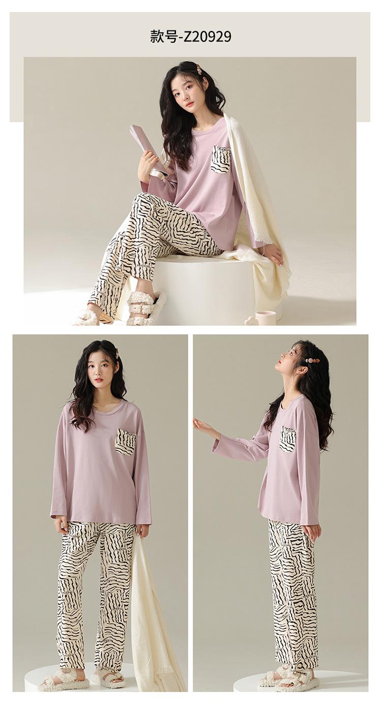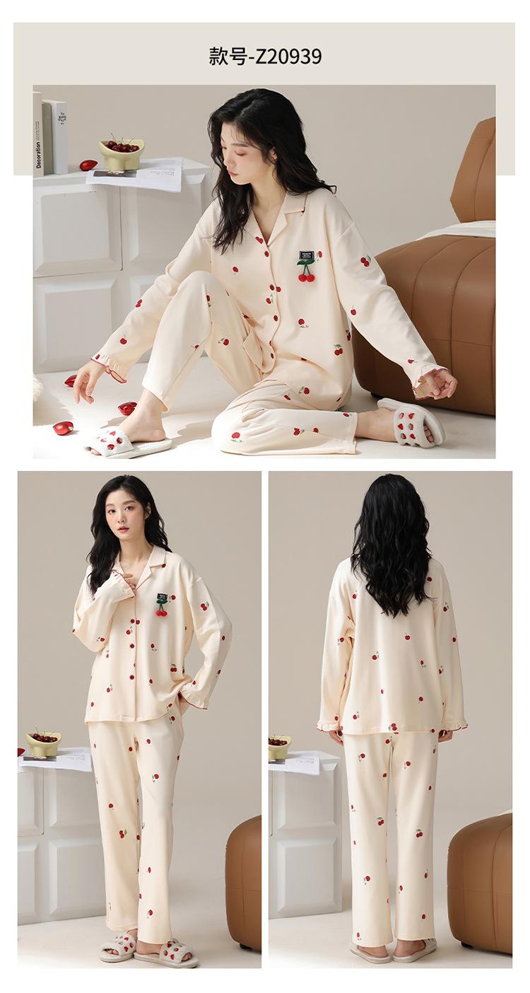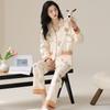 40 pijamas de algodón de doble cara para mujer, traje de otoño de manga larga con almohadilla en el pecho, 100% algodón, ropa de casa para mujer, otoño e invierno